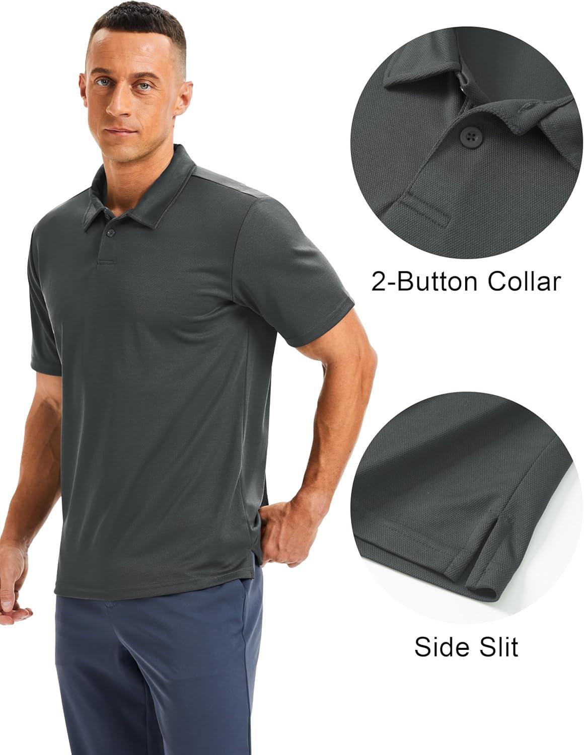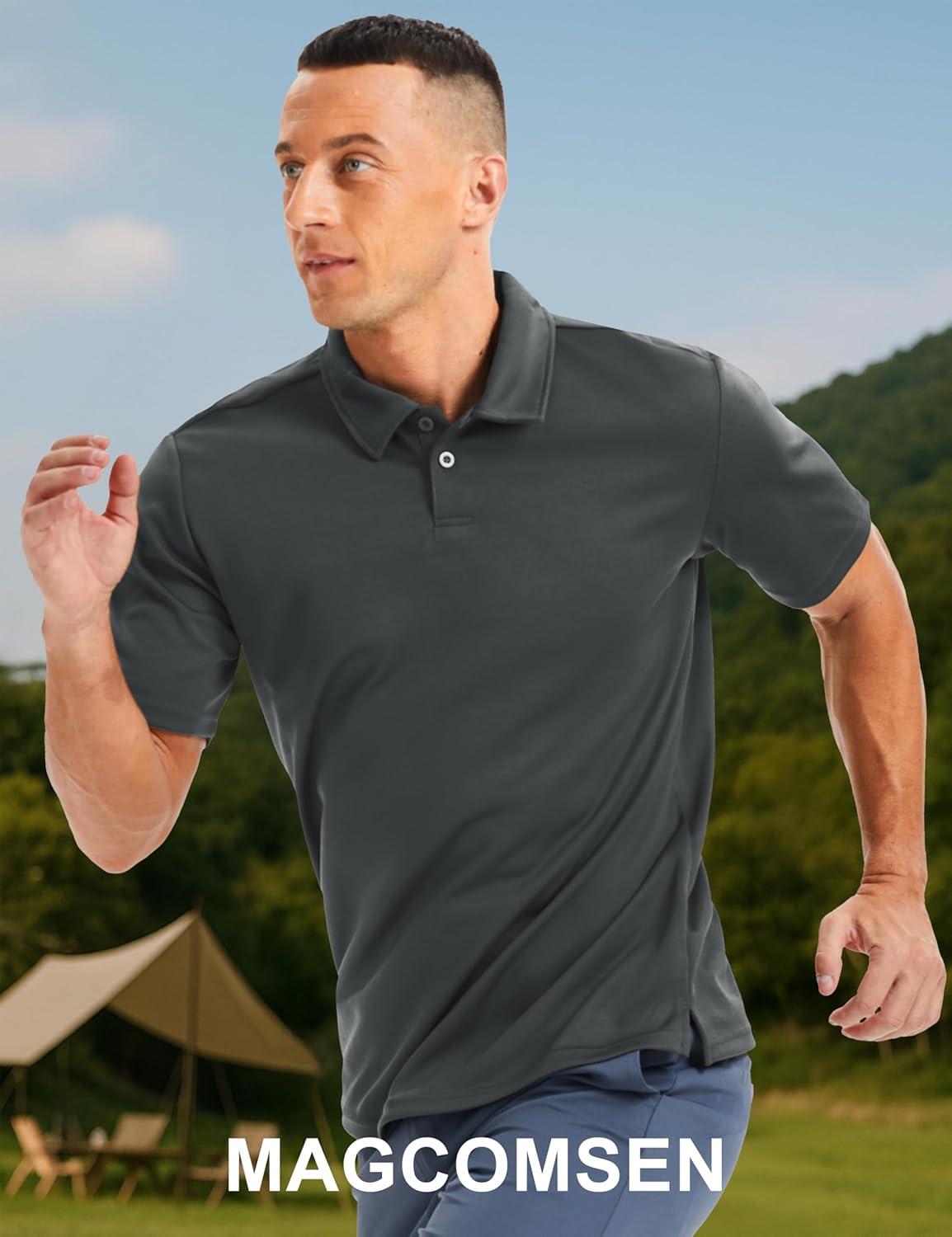 MAGCOMSEN Men’s Polo Shirts Short Sleeve Collared Performance Dry Fit Breathable Golf Athletic Casual(Dark Gray)