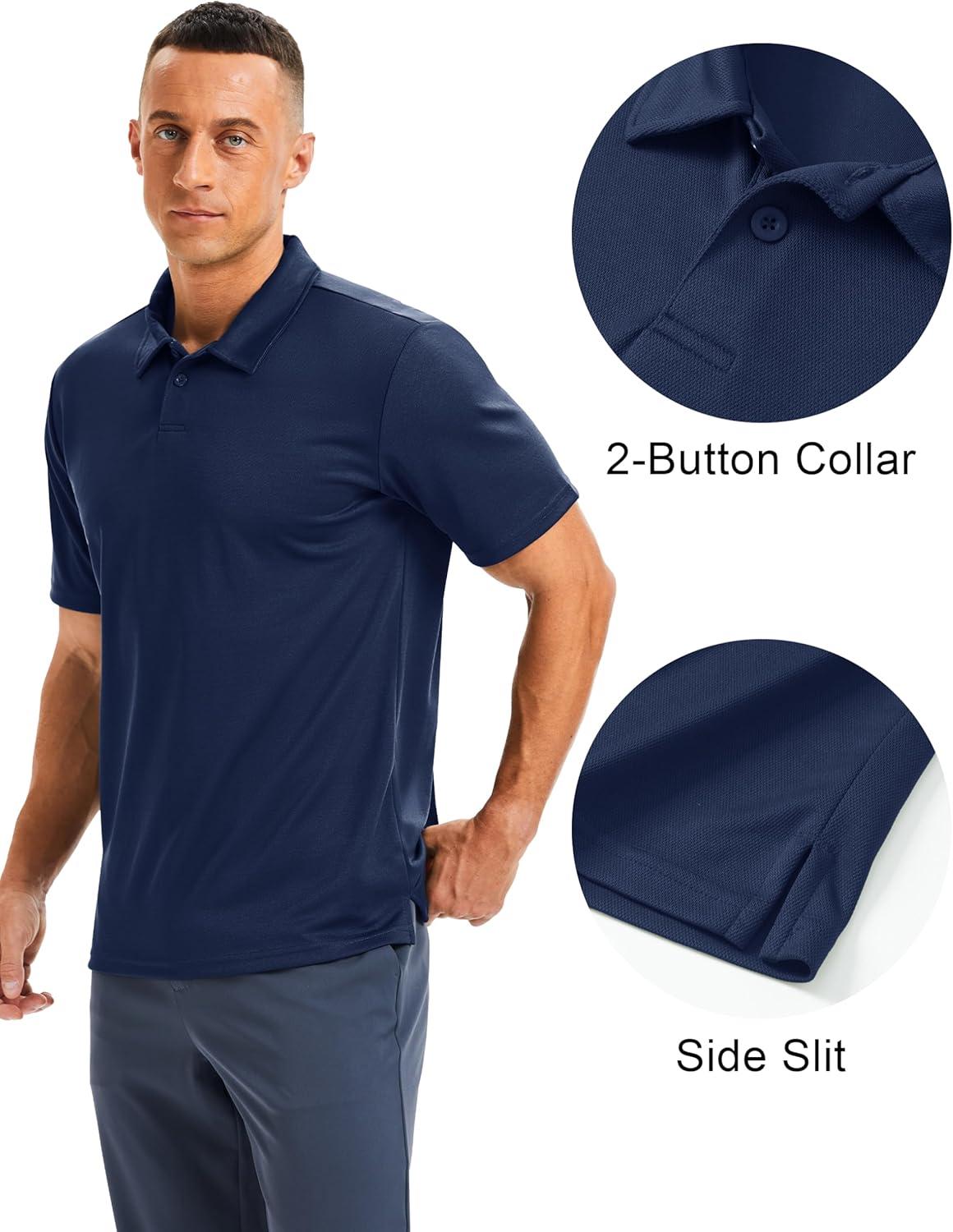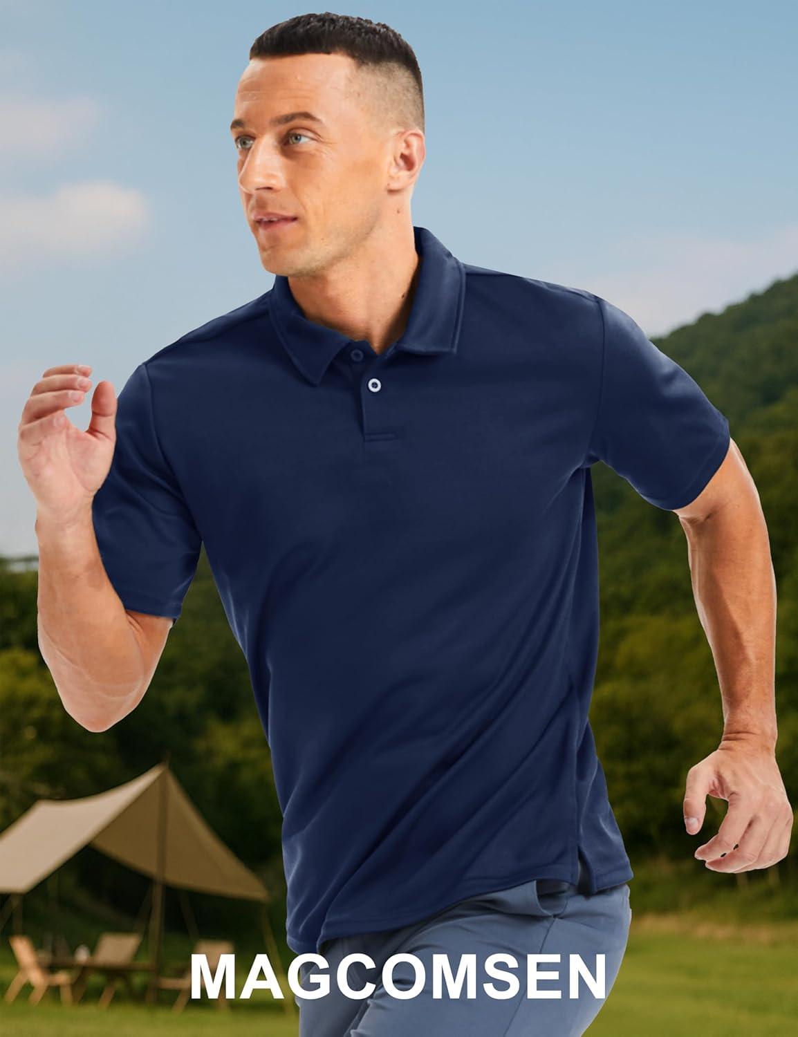 MAGCOMSEN Men’s Polo Shirts Short Sleeve Collared Performance Dry Fit Breathable Golf Athletic Casual(Navy Blue)