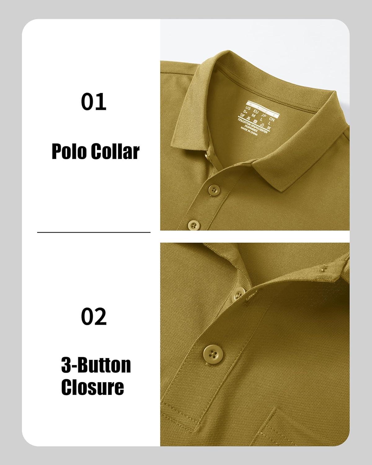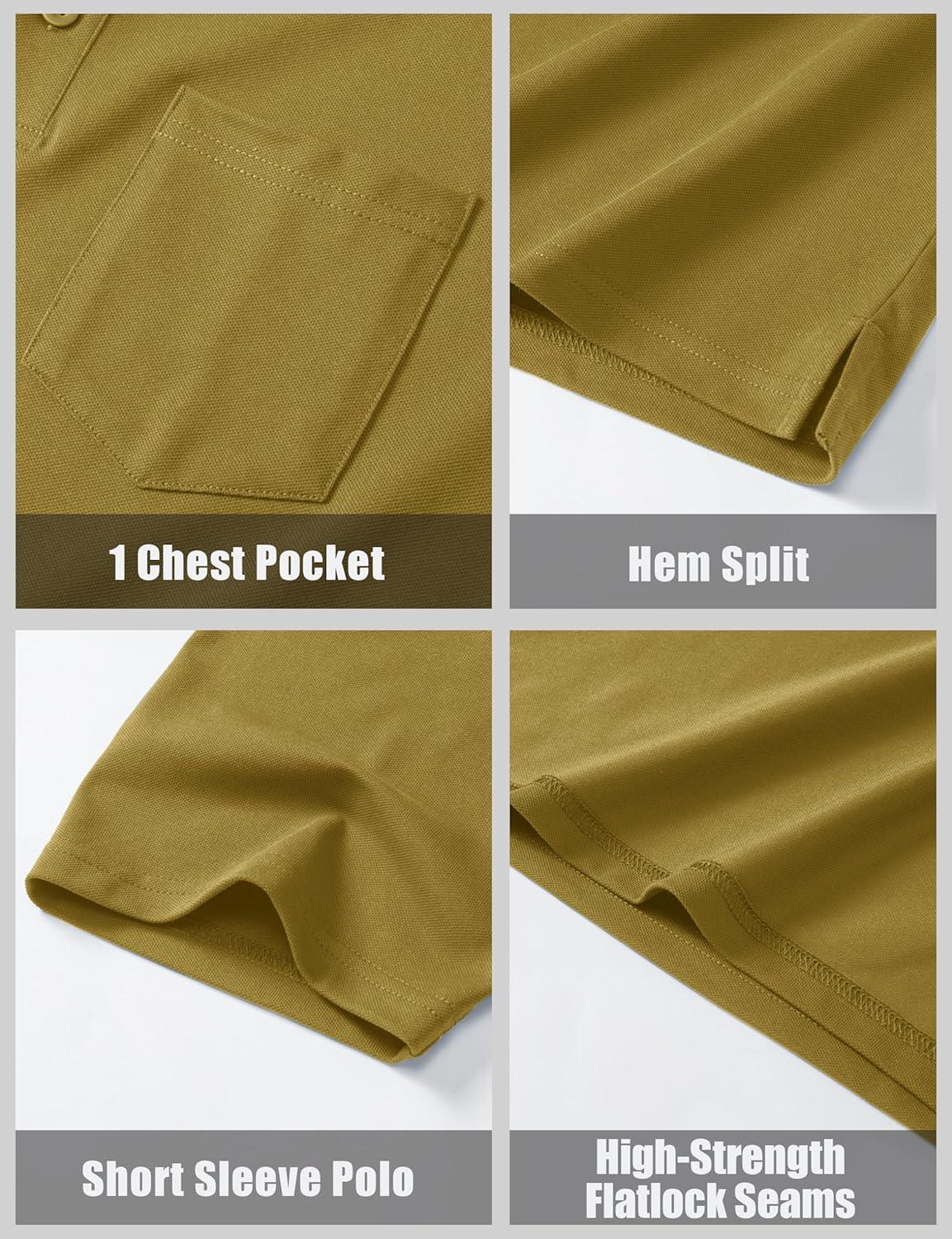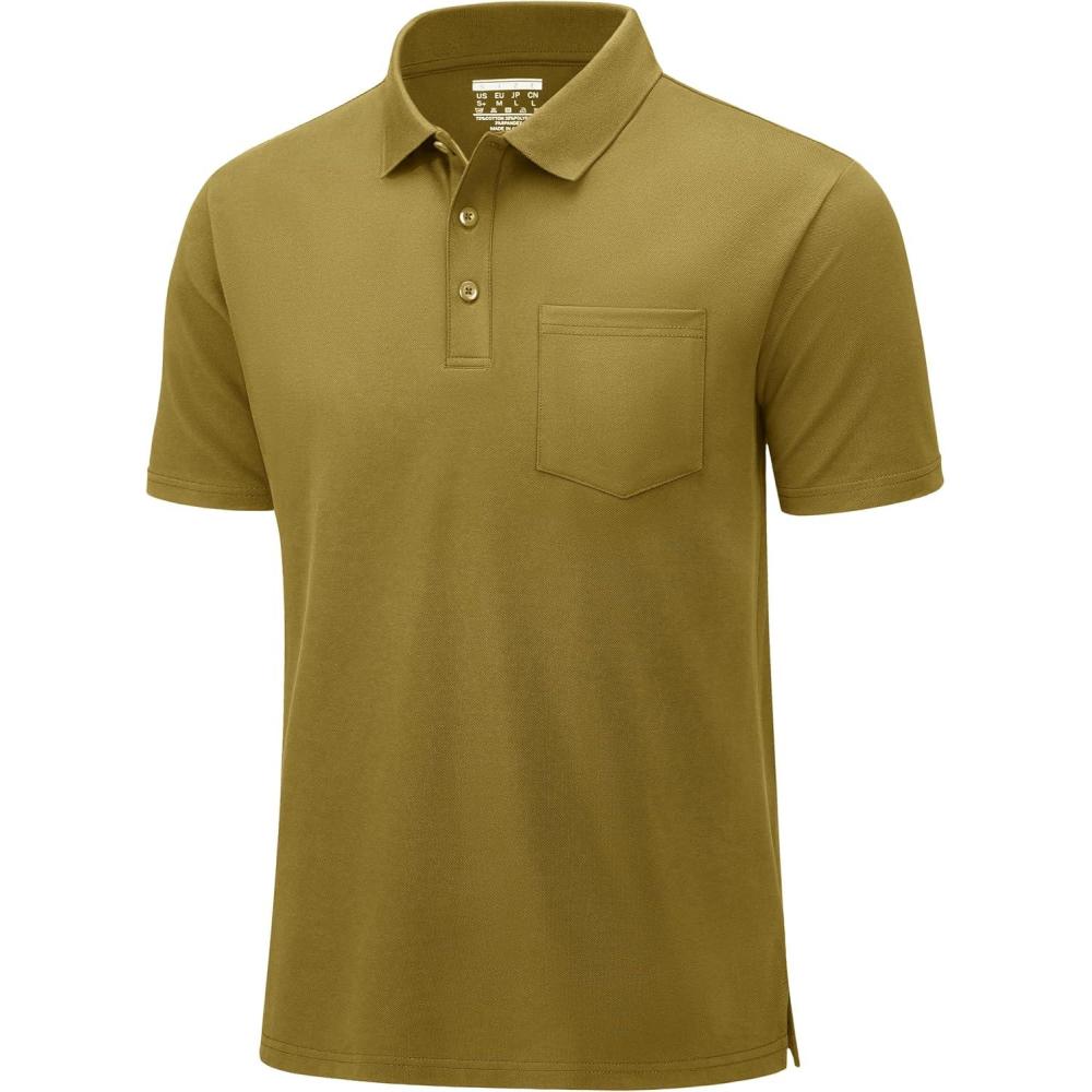 MAGCOMSEN Mens Polo Shirts Short Sleeve Cotton Pique Golf Shirts with Pocket Casual Performance Moisture Wicking Polos(Brown)