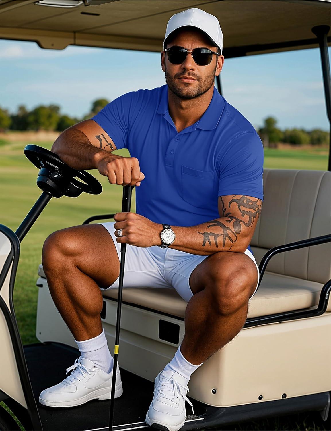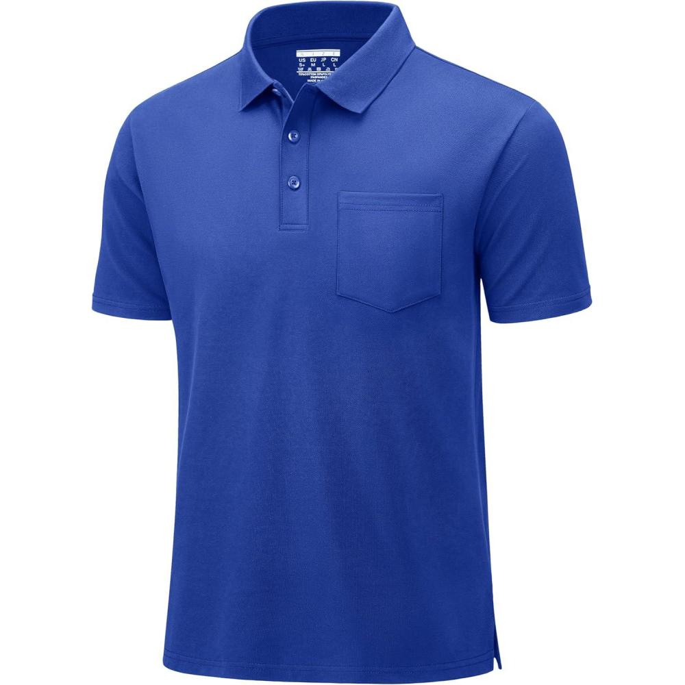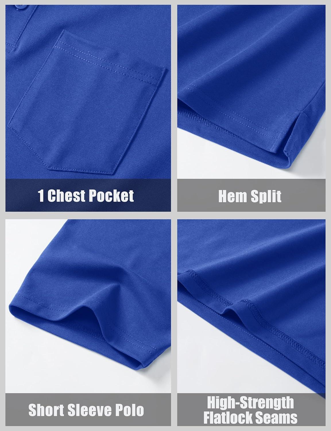 MAGCOMSEN Mens Polo Shirts Short Sleeve Cotton Pique Golf Shirts with Pocket Casual Performance Moisture Wicking Polos(Color Blue)