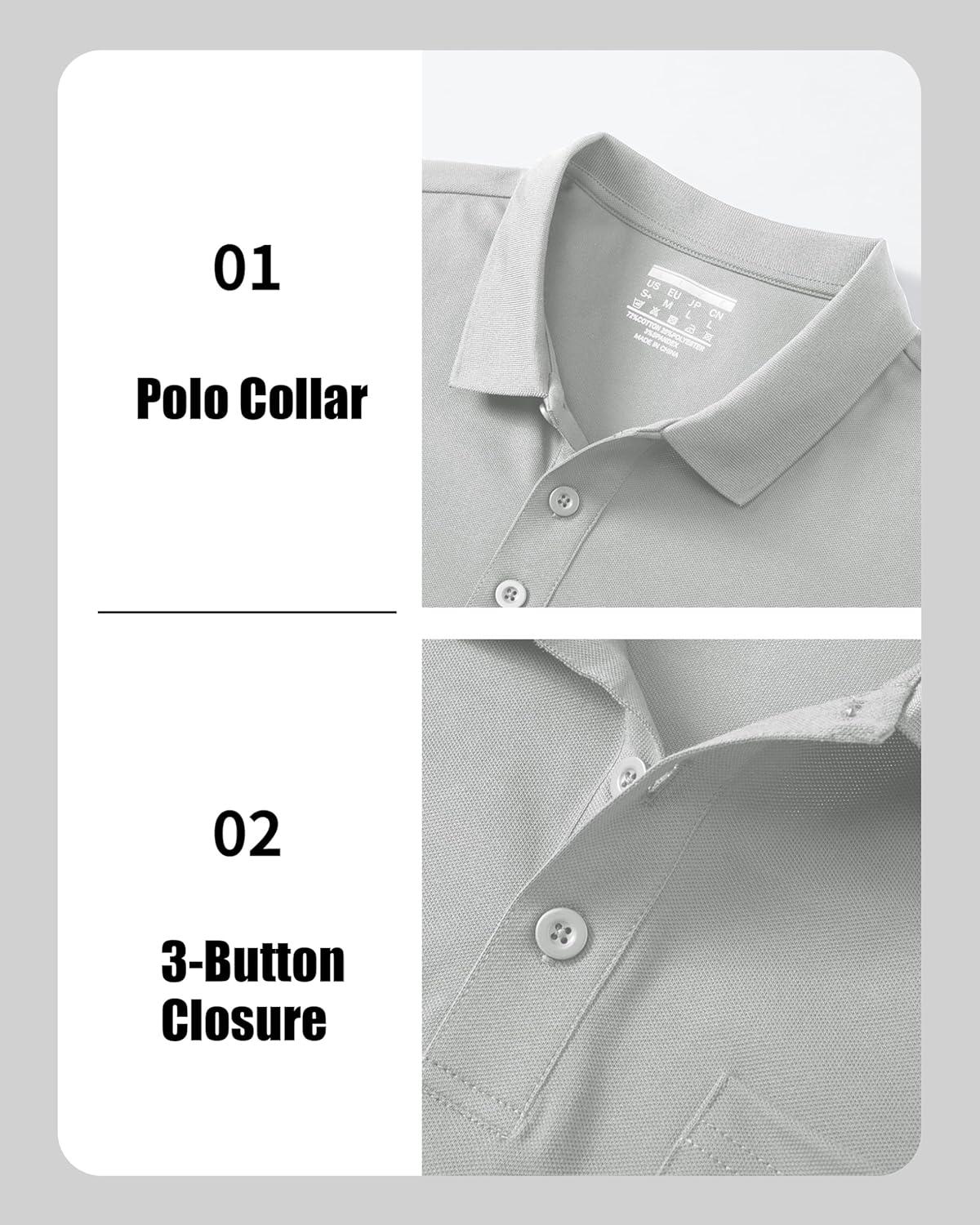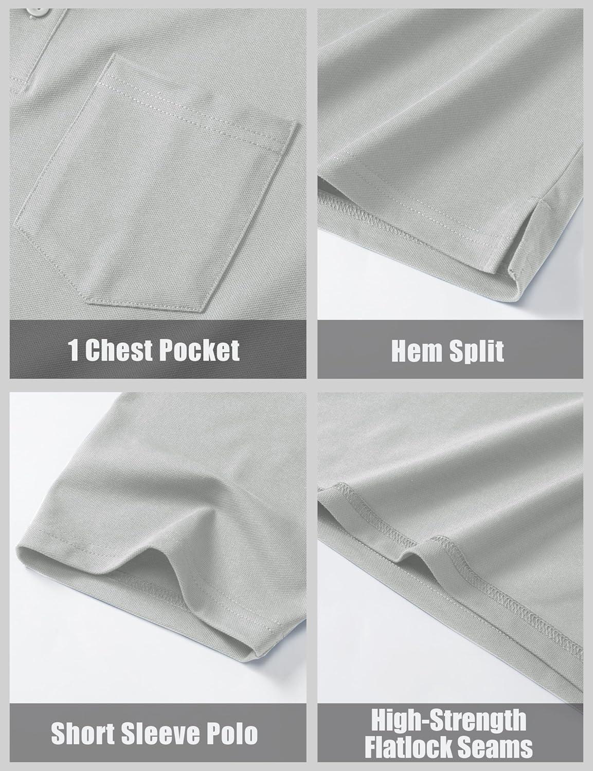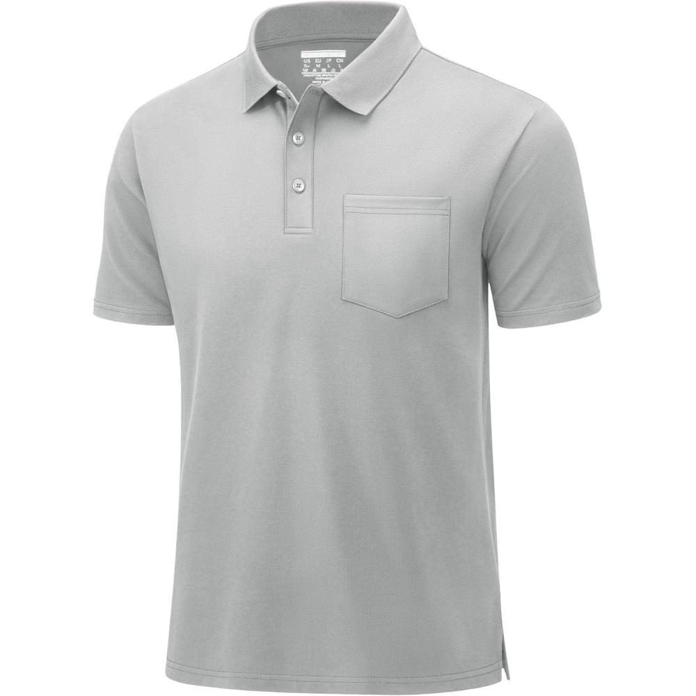 MAGCOMSEN Mens Polo Shirts Short Sleeve Cotton Pique Golf Shirts with Pocket Casual Performance Moisture Wicking Polos(Lite Gray)