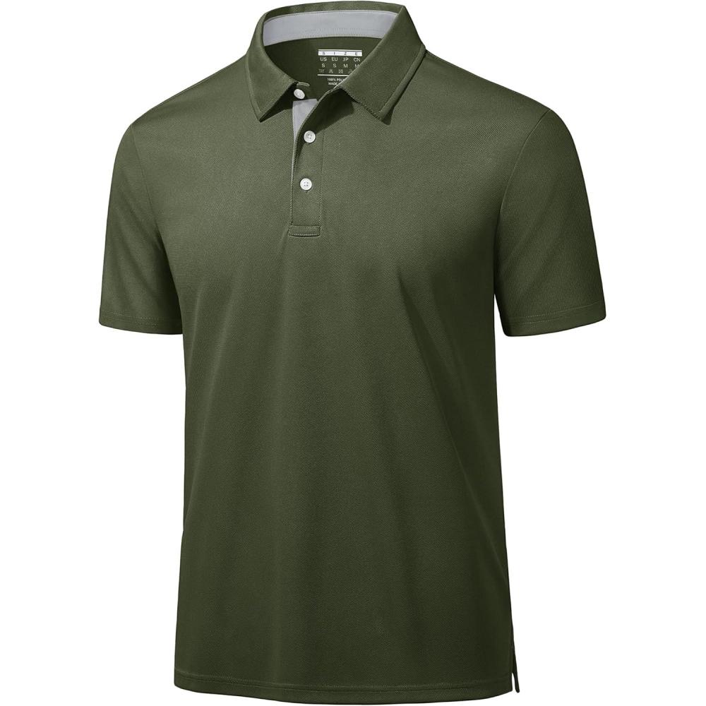 MAGCOMSEN Mens Polo Shirts Short Sleeve Lightweight Moisture Wicking Golf Polos 3 Buttons Performance Collared Shirt Men(Army Green)