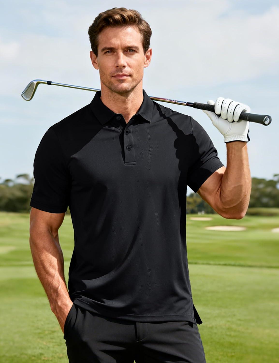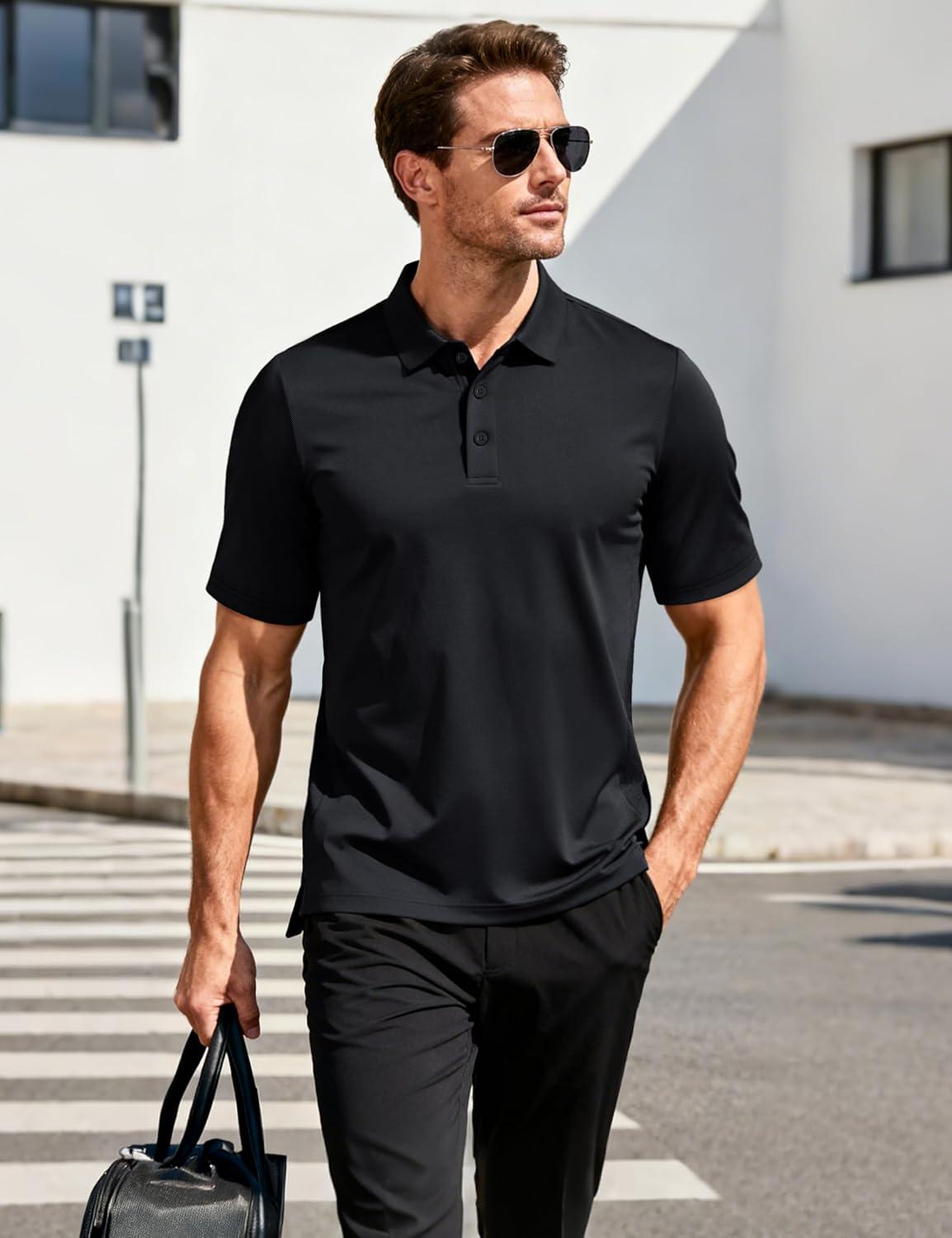 MAGCOMSEN Mens Polo Shirts Short Sleeve Moisture Wicking Performance Collared Shirt Athletic Casual Golf Polos(Black)
