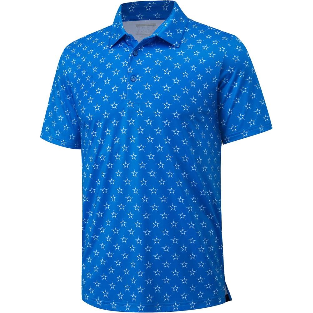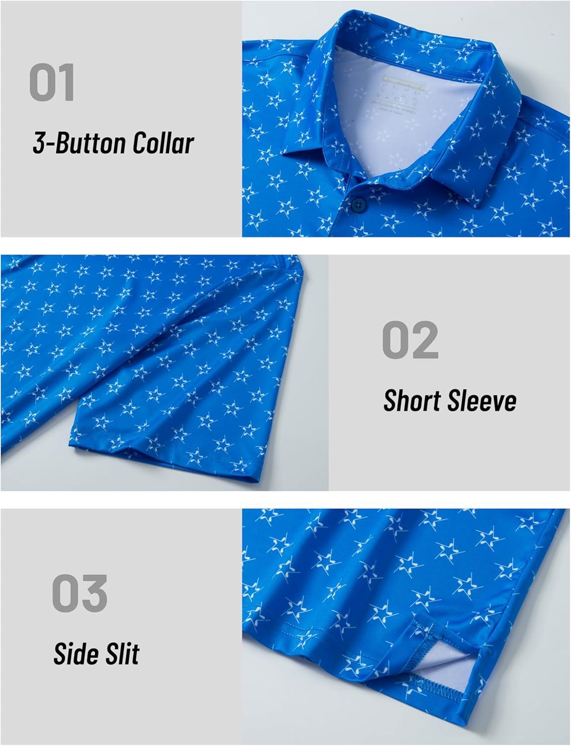MAGCOMSEN Mens Polo Shirts Short Sleeve Print Patterns Collared Shirt Performance Moisture Wicking Golf Polos(Blue Star)
