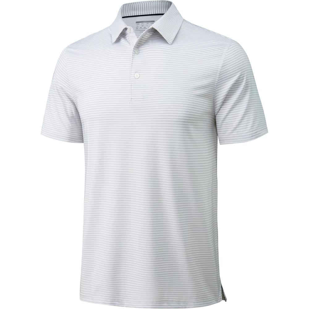 MAGCOMSEN Men’s Polo Shirts Short Sleeve Striped Golf Polos Dry Fit Casual Collared Shirt Medium Grey L