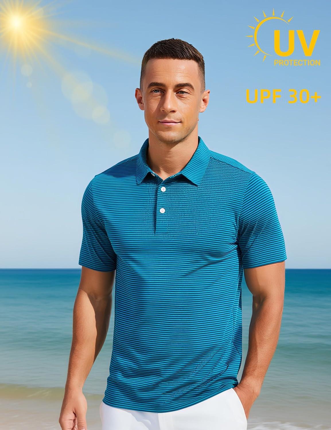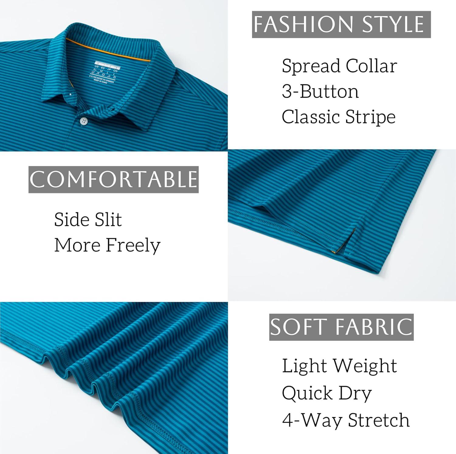 MAGCOMSEN Men’s Polo Shirts Short Sleeve Striped Golf Summer Polos Dry Fit Performance Casual Collared Shirt Blue Green S