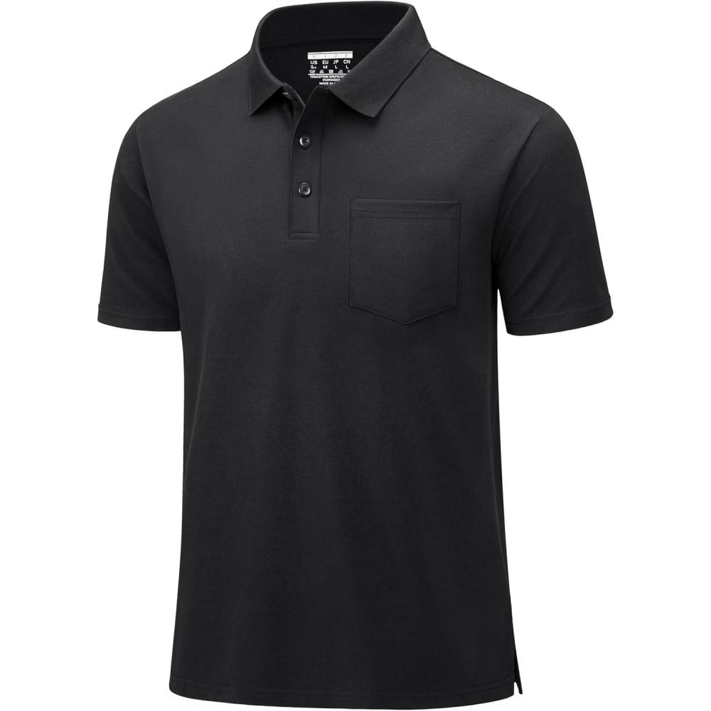 MAGCOMSEN Mens Polo Shirts with Pocket Cotton Pique Short Sleeve Collared Shirt Moisture Wicking Golf Shirts 3-Button Shirts(Black-1)