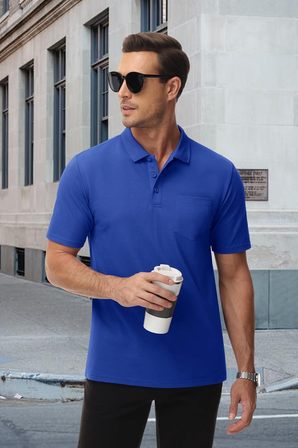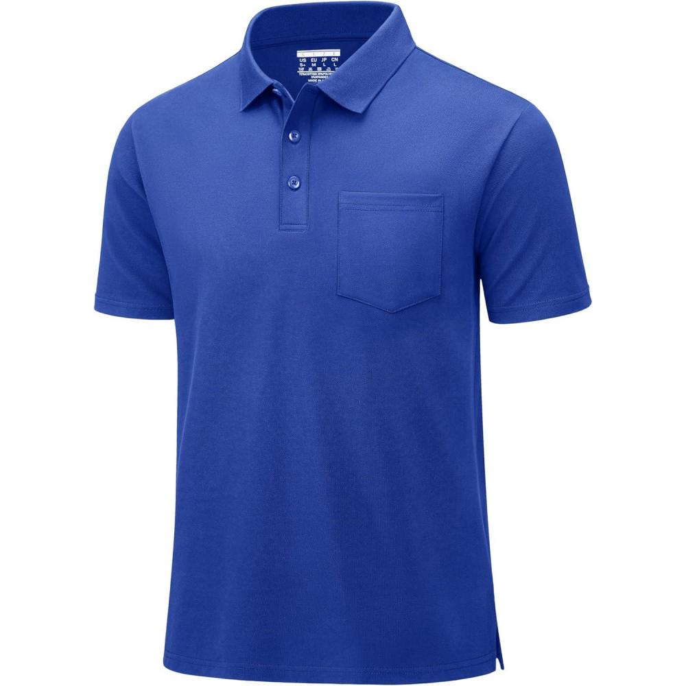 MAGCOMSEN Mens Polo Shirts with Pocket Cotton Pique Short Sleeve Collared Shirt Moisture Wicking Golf Shirts 3-Button Shirts(Color Blue)