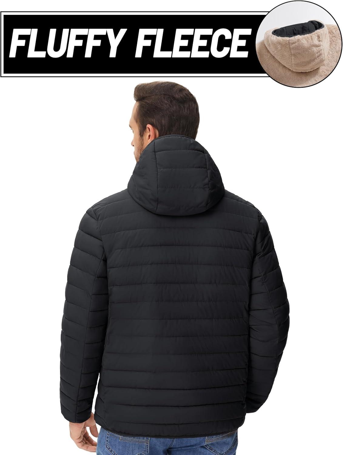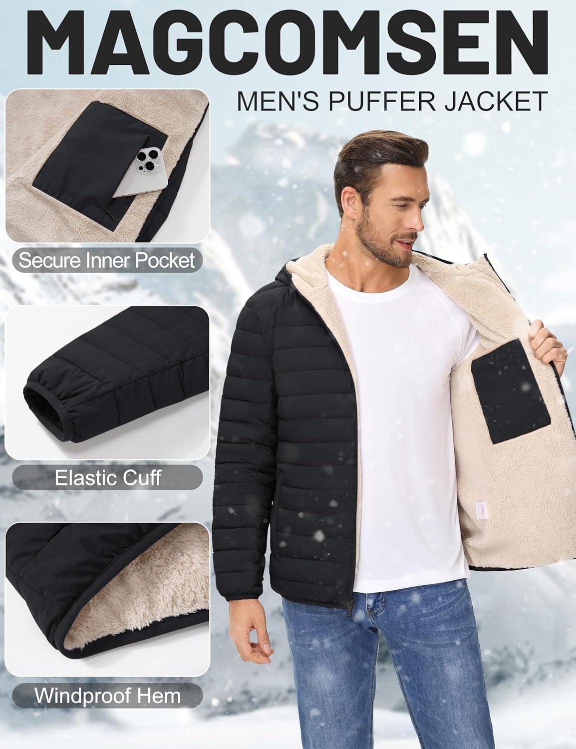 MAGCOMSEN Men’s Puffer Jacket with Hood Fleece lined Warm Puffer Coats Water Resistant Down Jacket Zip Up Winter Jackets(Black)