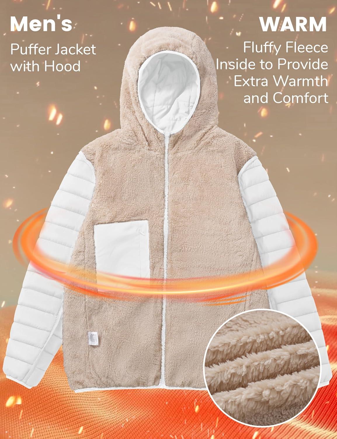 MAGCOMSEN Men’s Puffer Jacket with Hood Fleece lined Warm Puffer Coats Water Resistant Down Jacket Zip Up Winter Jackets(White)