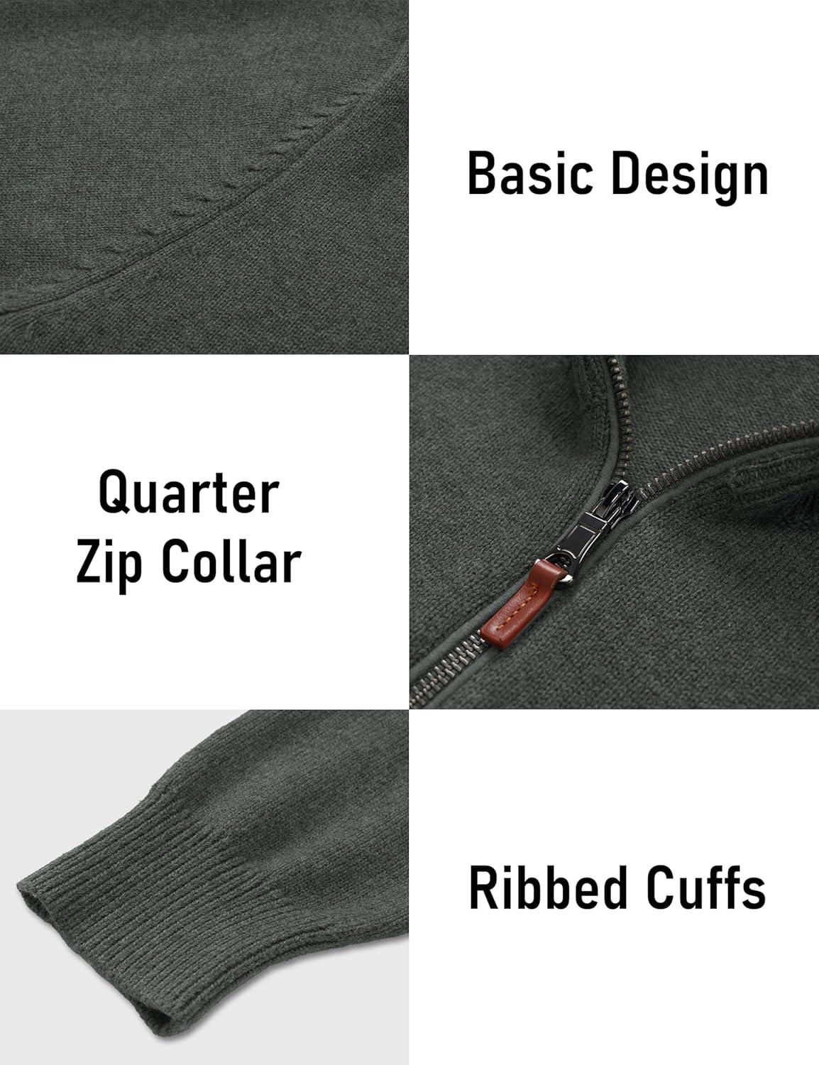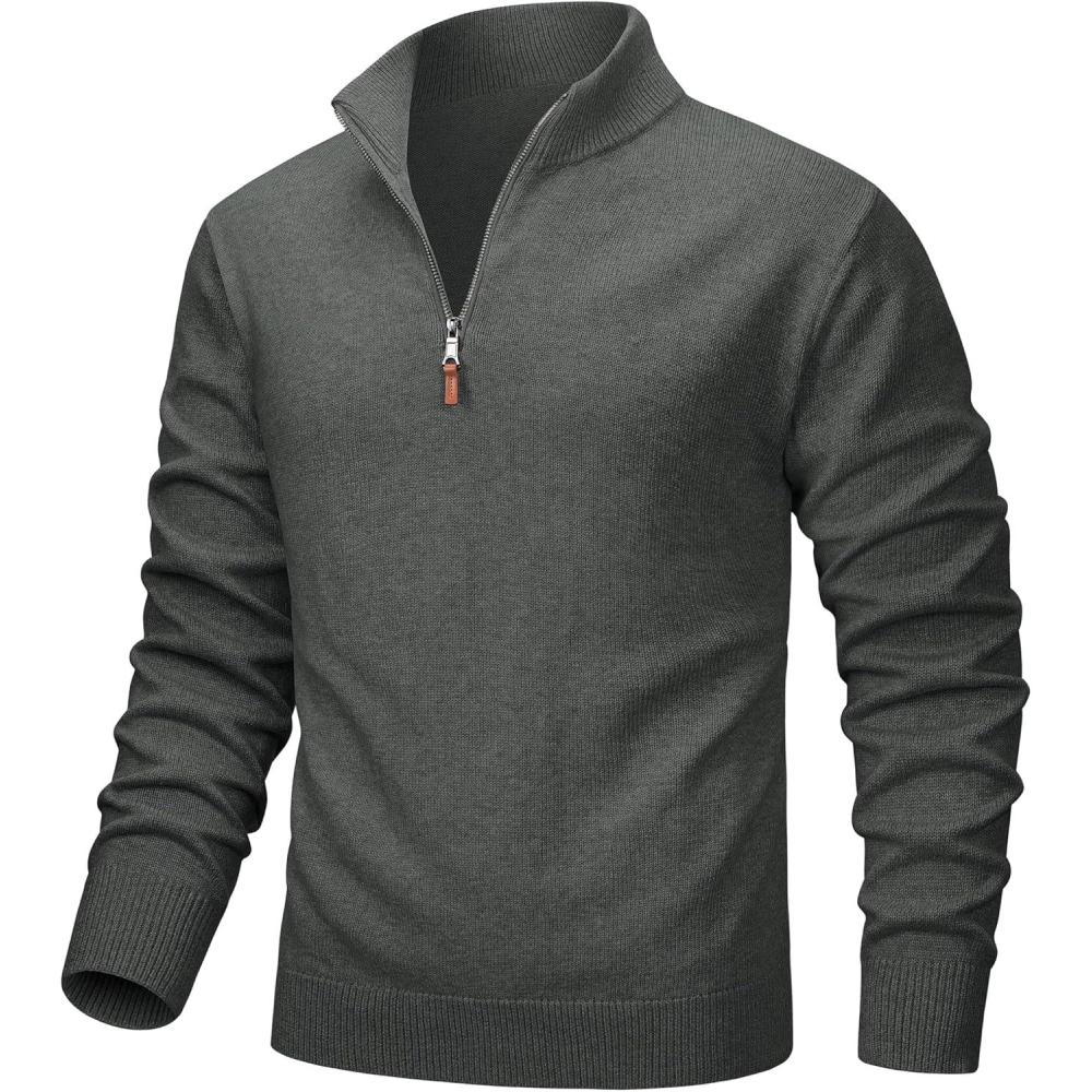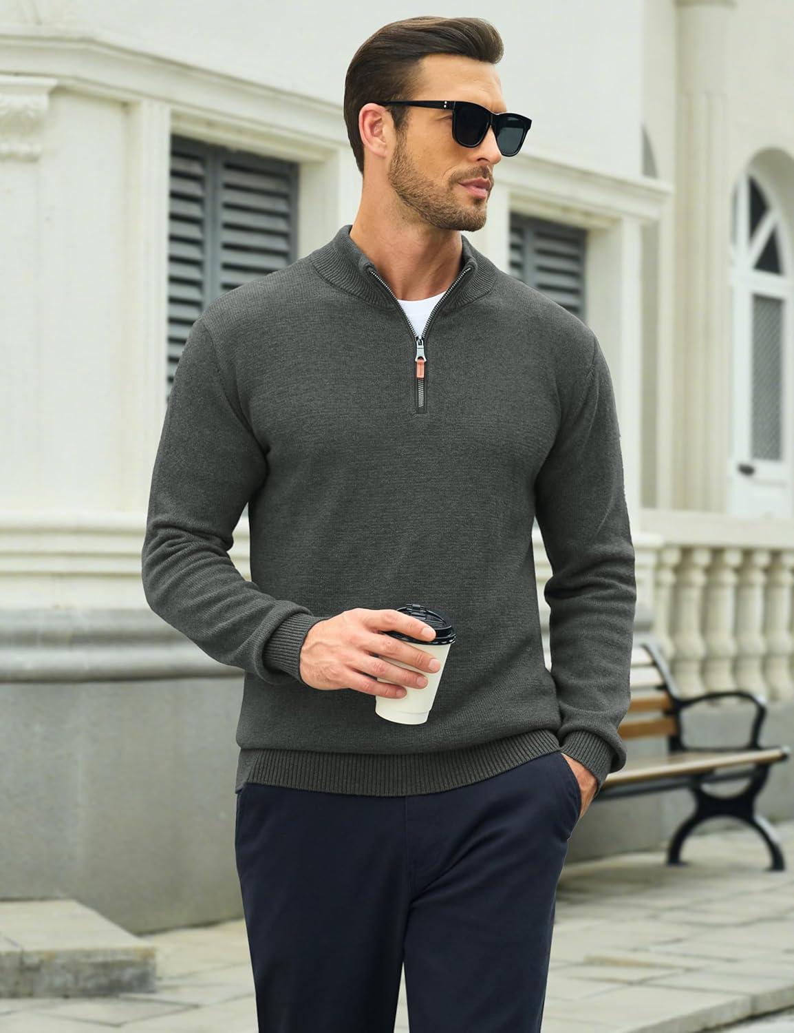 MAGCOMSEN Men’s Quarter Zip Pullover Lightweight Mock Neck Polo Sweater Long Sleeve Warm Fall Winter Pullover Sweaters(Dark Grey)