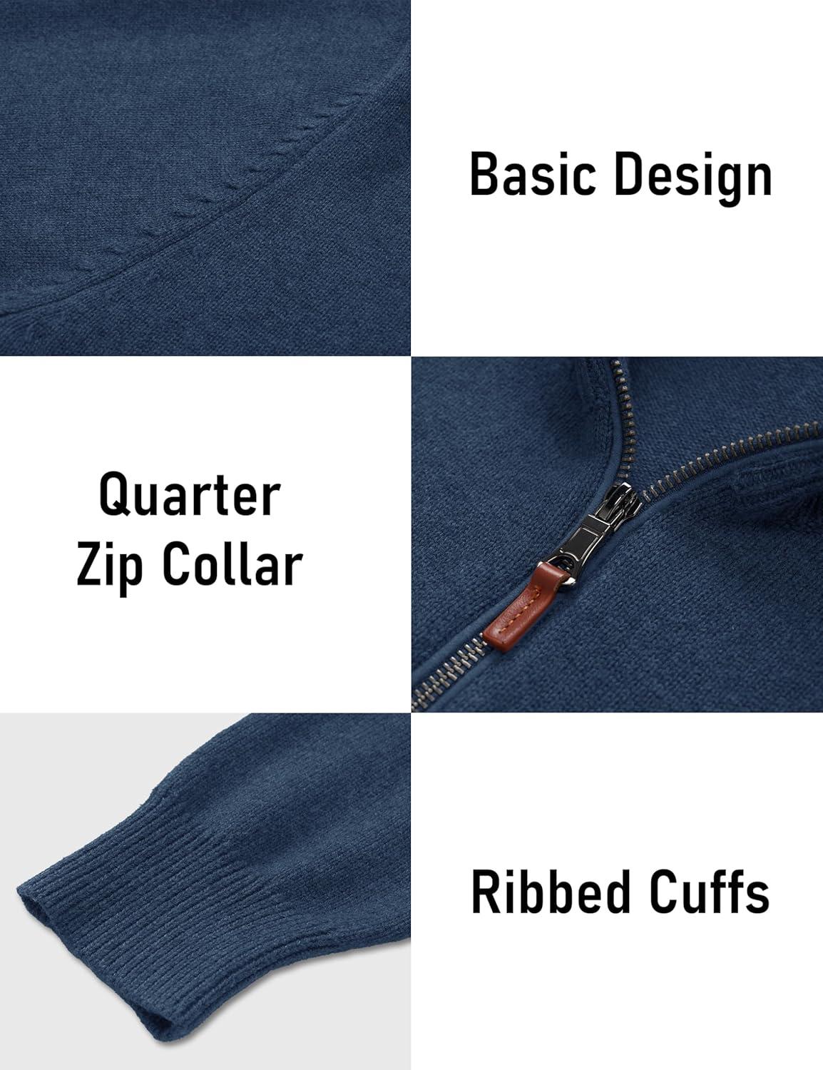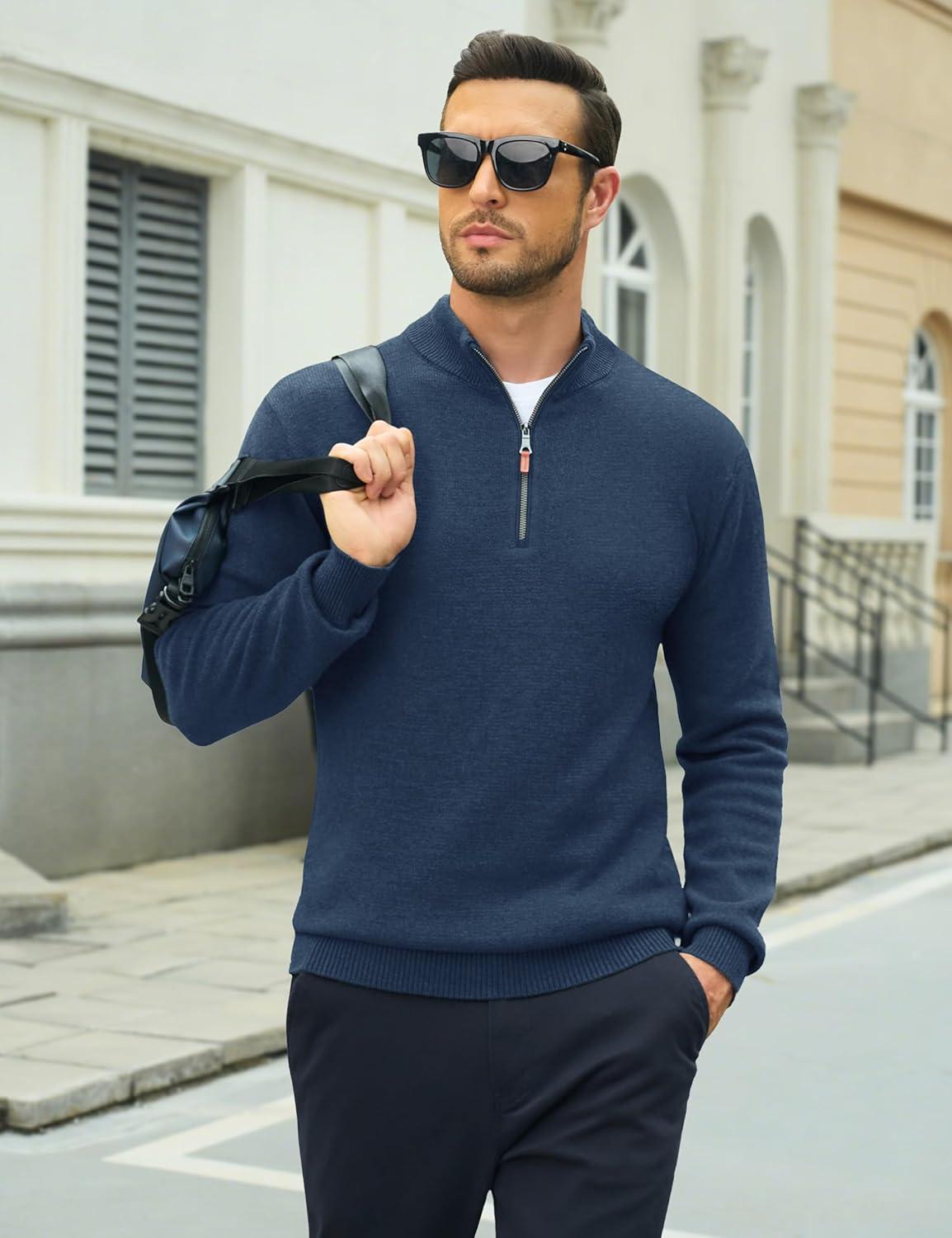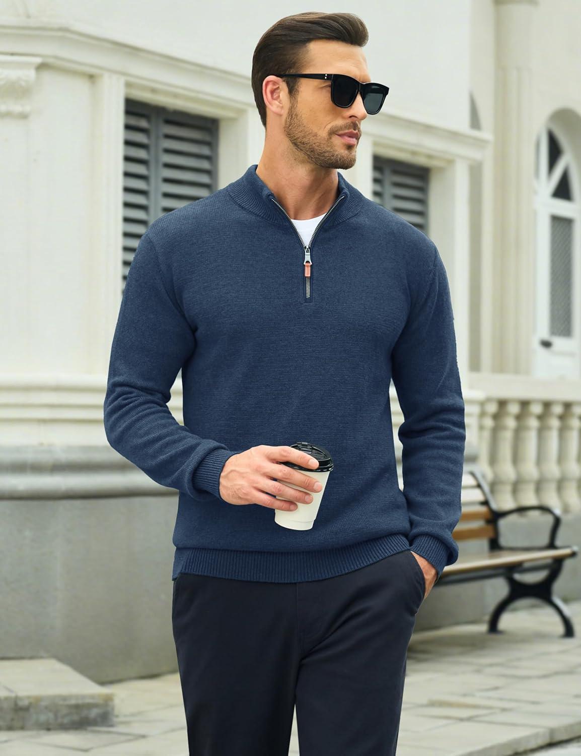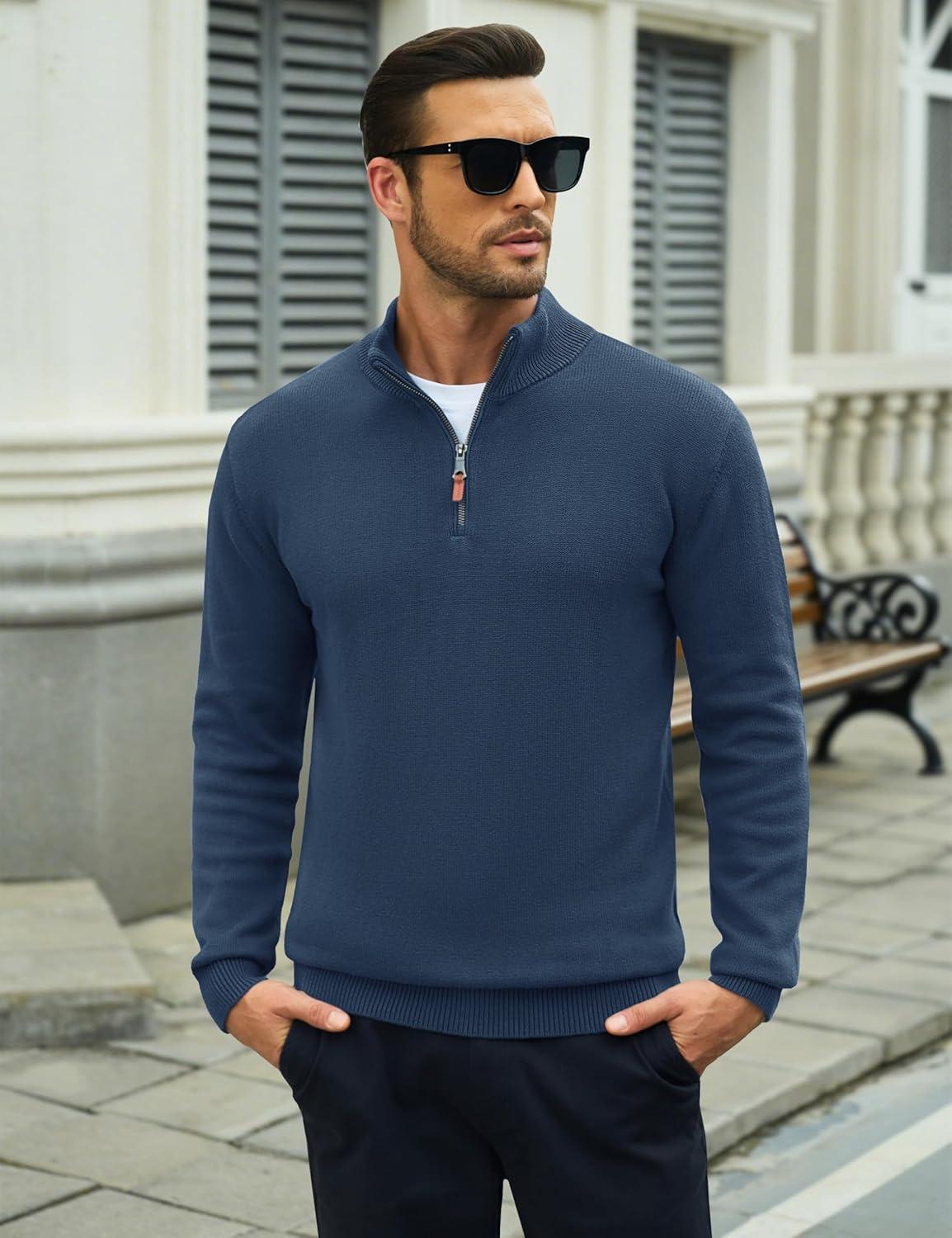 MAGCOMSEN Men’s Quarter Zip Pullover Lightweight Mock Neck Polo Sweater Long Sleeve Warm Fall Winter Pullover Sweaters(Denim Blue)