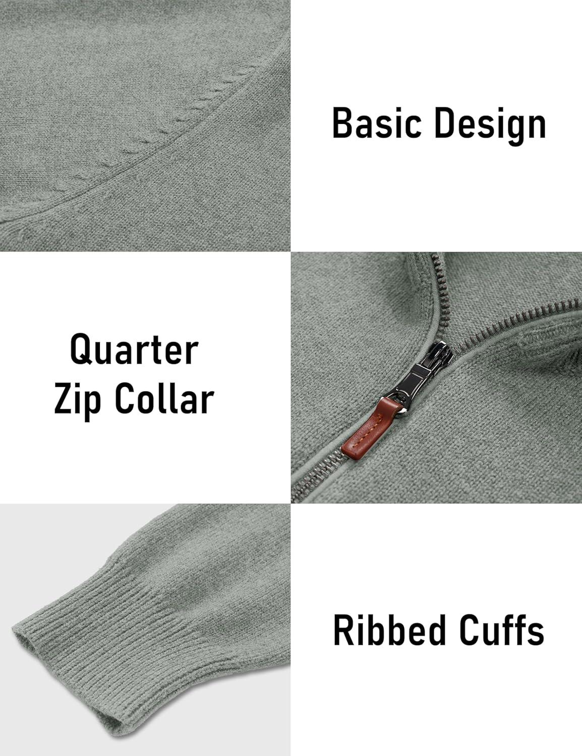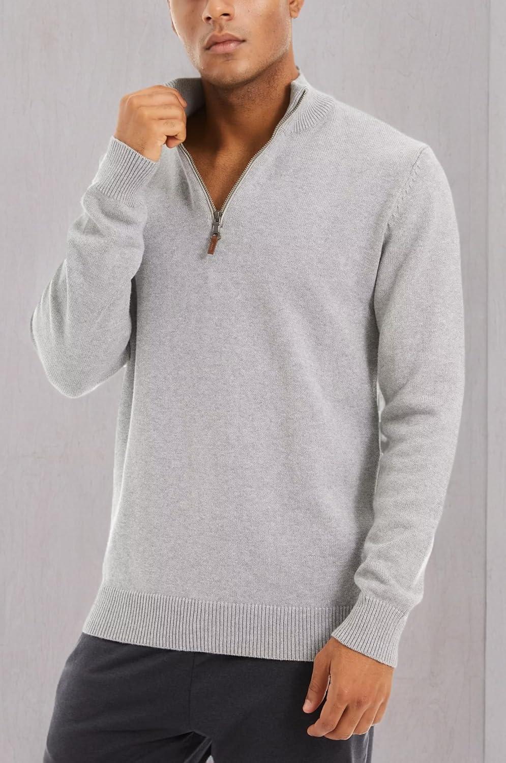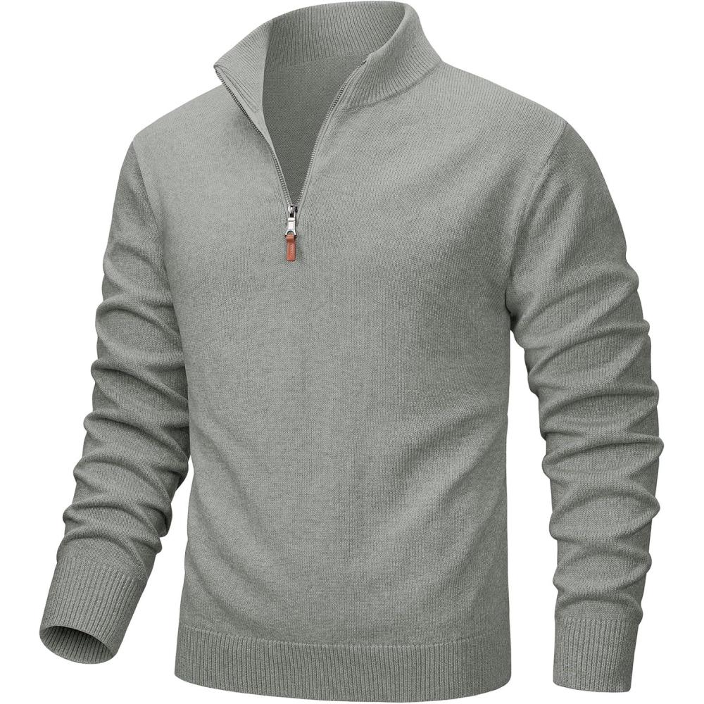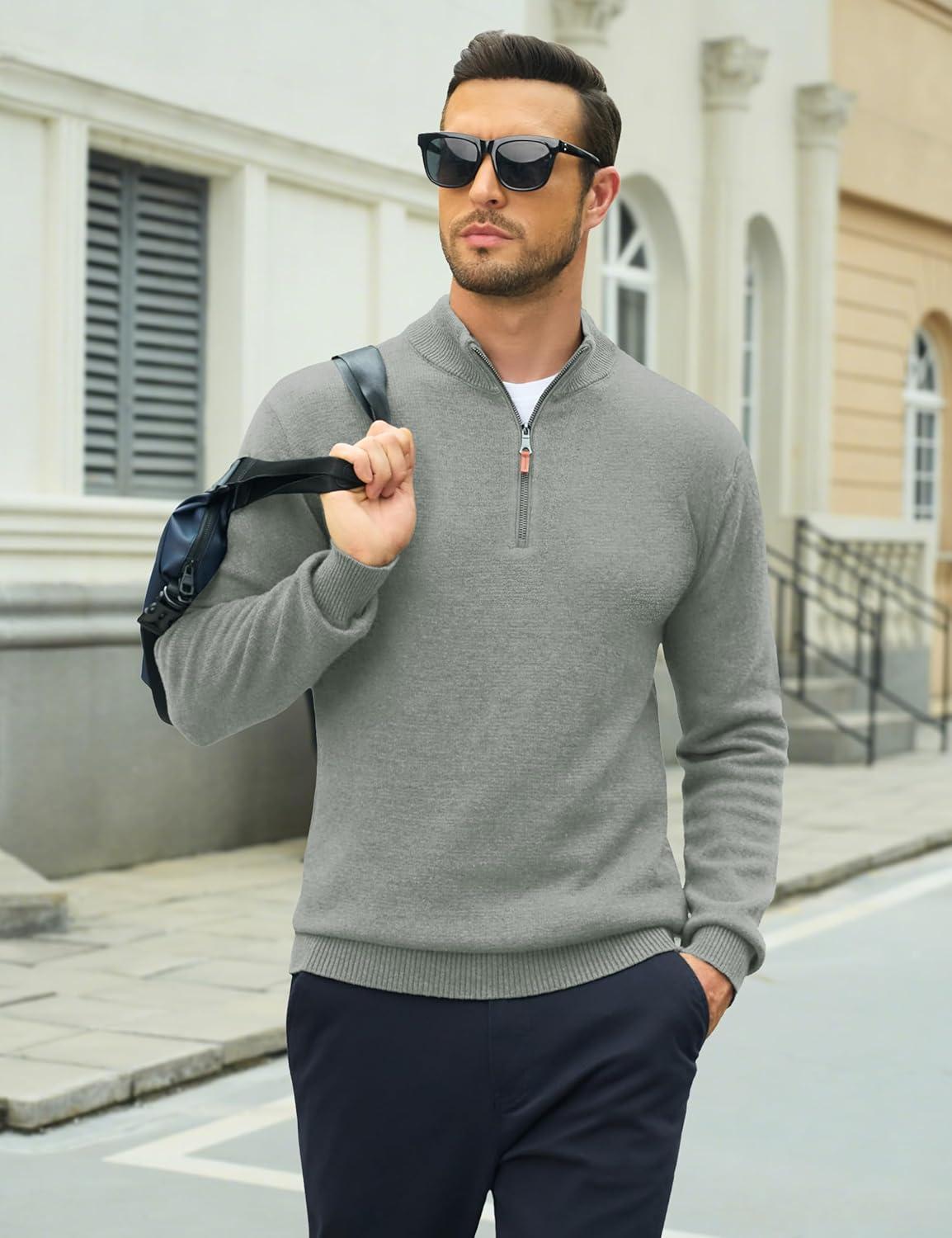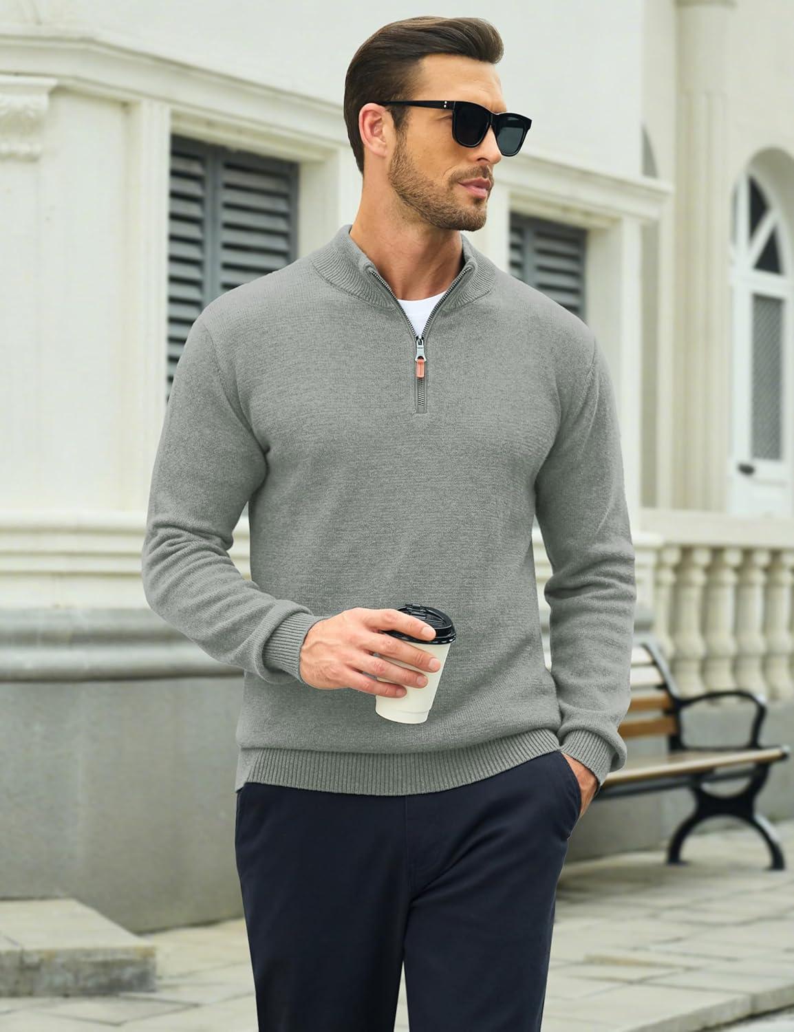MAGCOMSEN Men’s Quarter Zip Pullover Lightweight Mock Neck Polo Sweater Long Sleeve Warm Fall Winter Pullover Sweaters(Light Grey)
