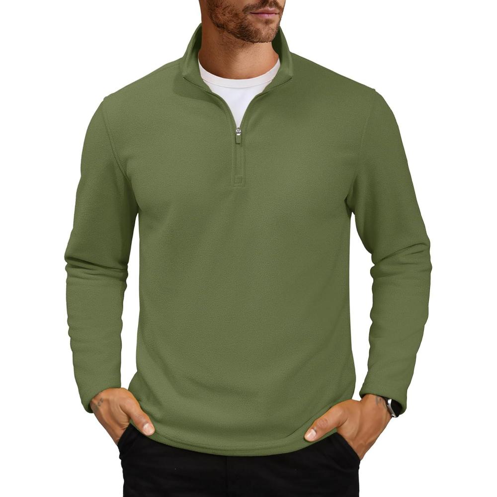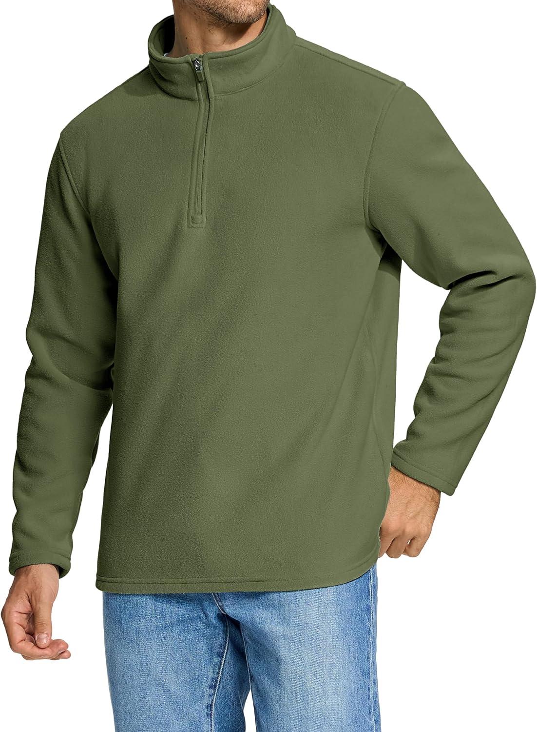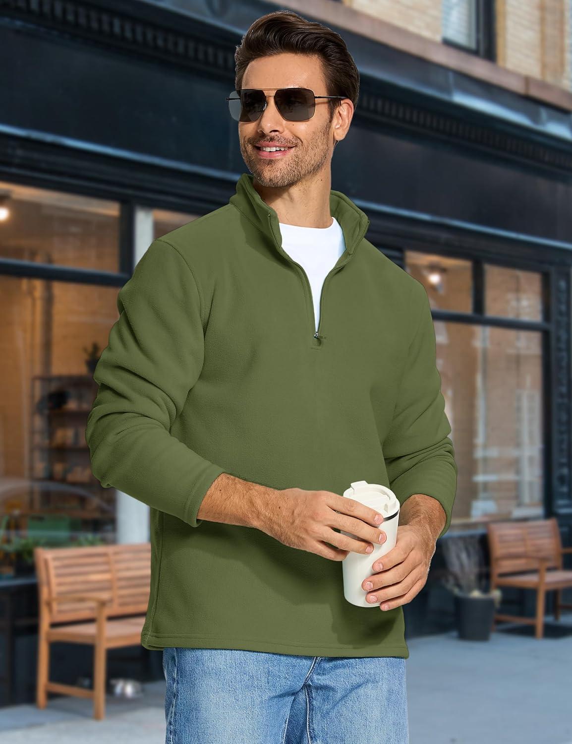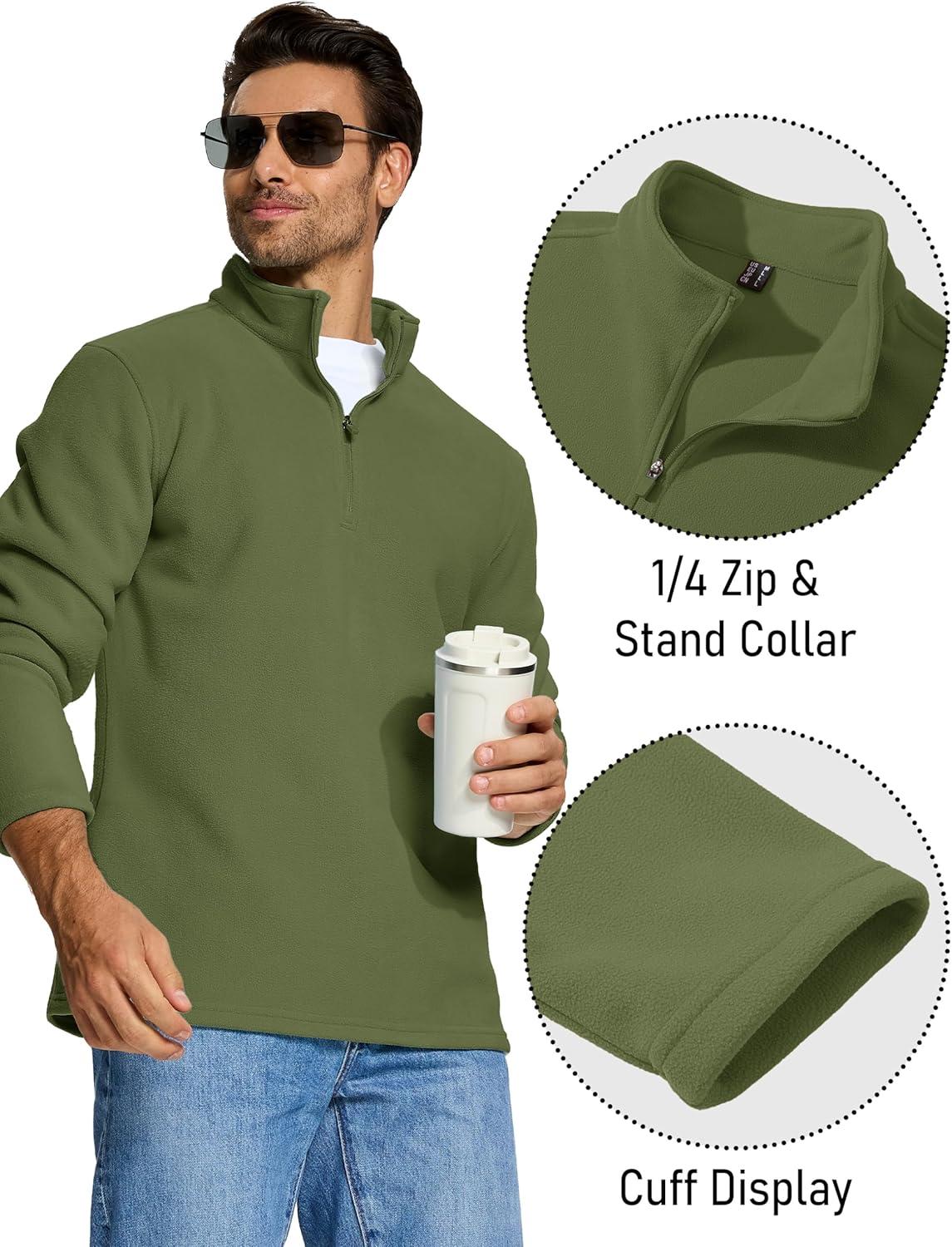 MAGCOMSEN Men’s Quarter Zip Pullover Polar Fleece Sweatshirt Casual Long Sleeve Shirts for Men Winter Fall Thermal(Army Green)