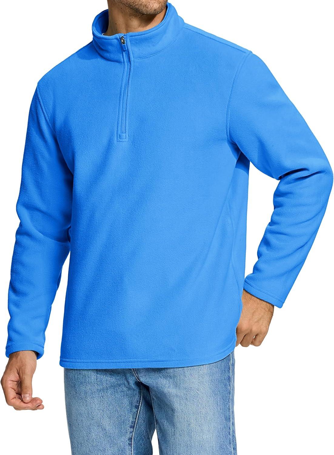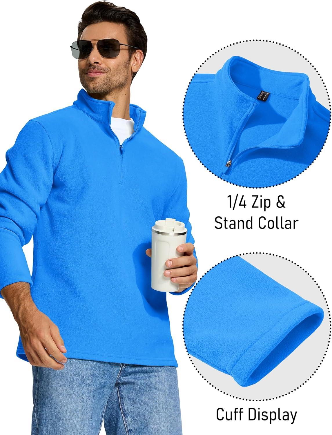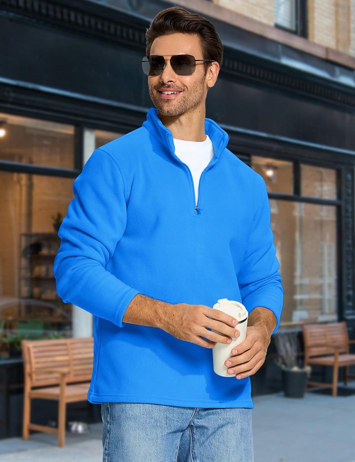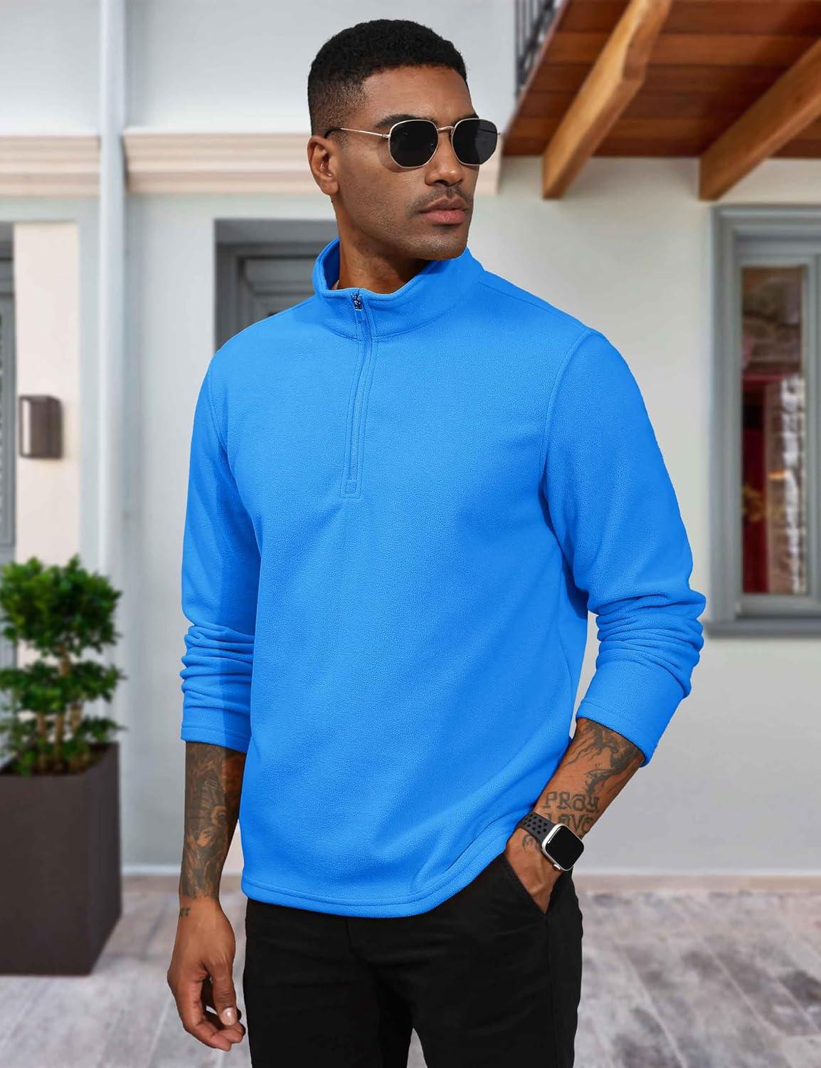 MAGCOMSEN Men’s Quarter Zip Pullover Polar Fleece Sweatshirt Casual Long Sleeve Shirts for Men Winter Fall Thermal(Azure Blue)