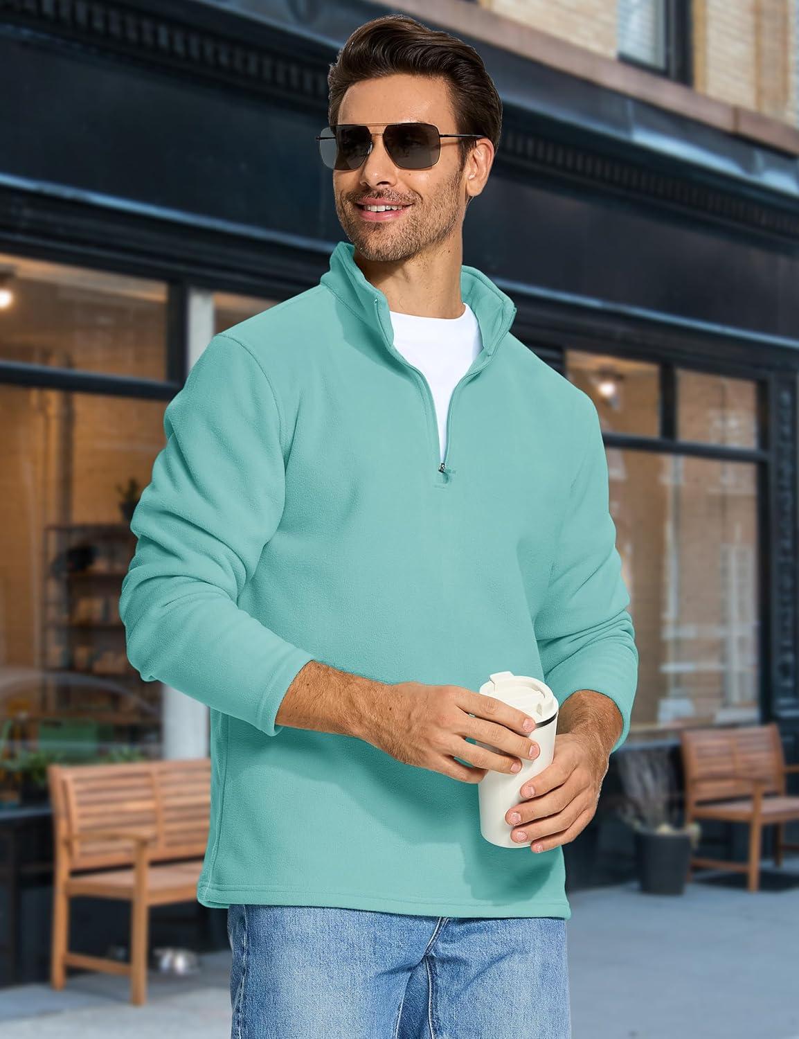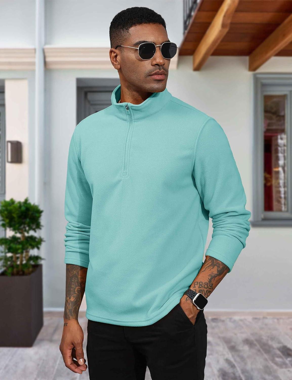 MAGCOMSEN Men’s Quarter Zip Pullover Polar Fleece Sweatshirt Casual Long Sleeve Shirts for Men Winter Fall Thermal(Grey Green)