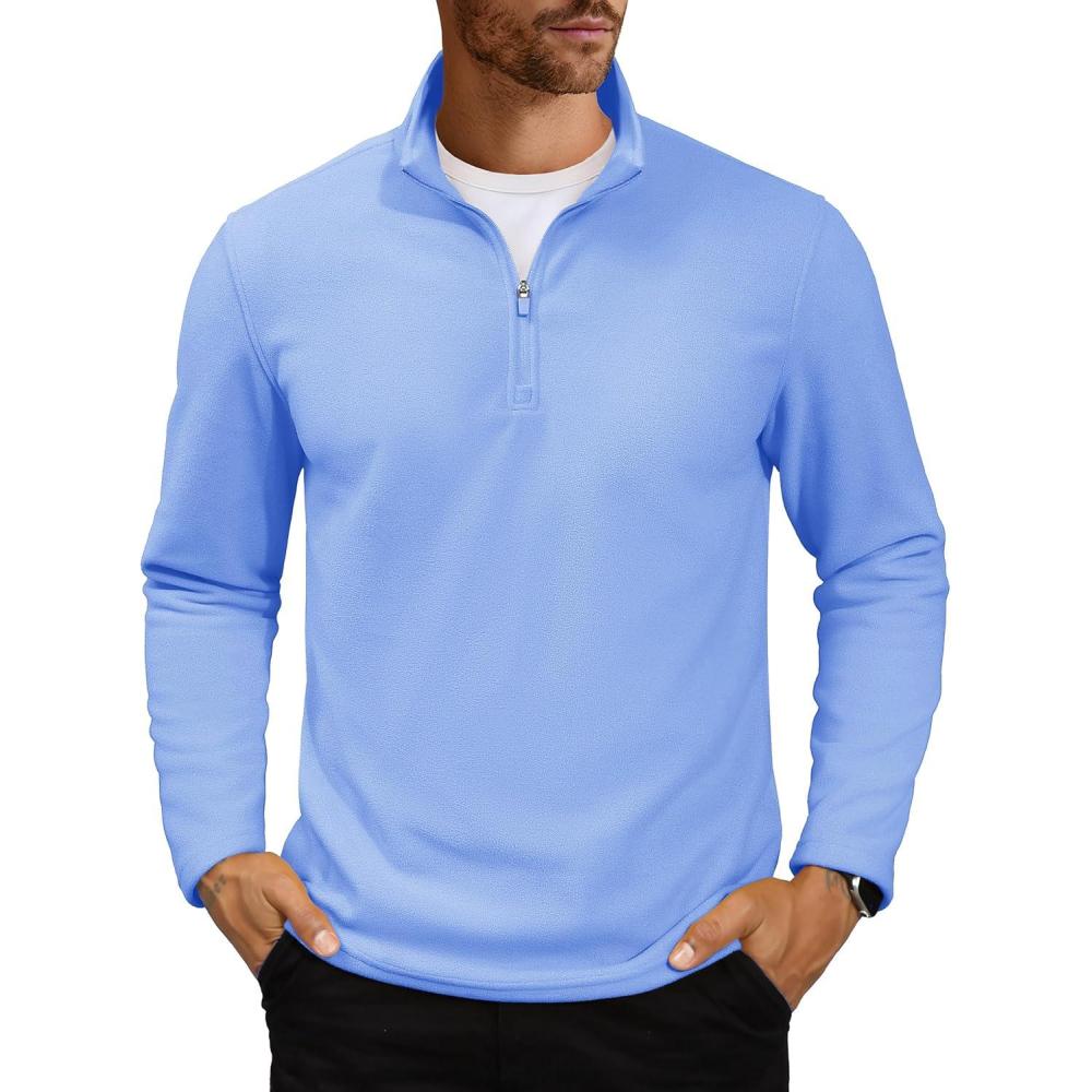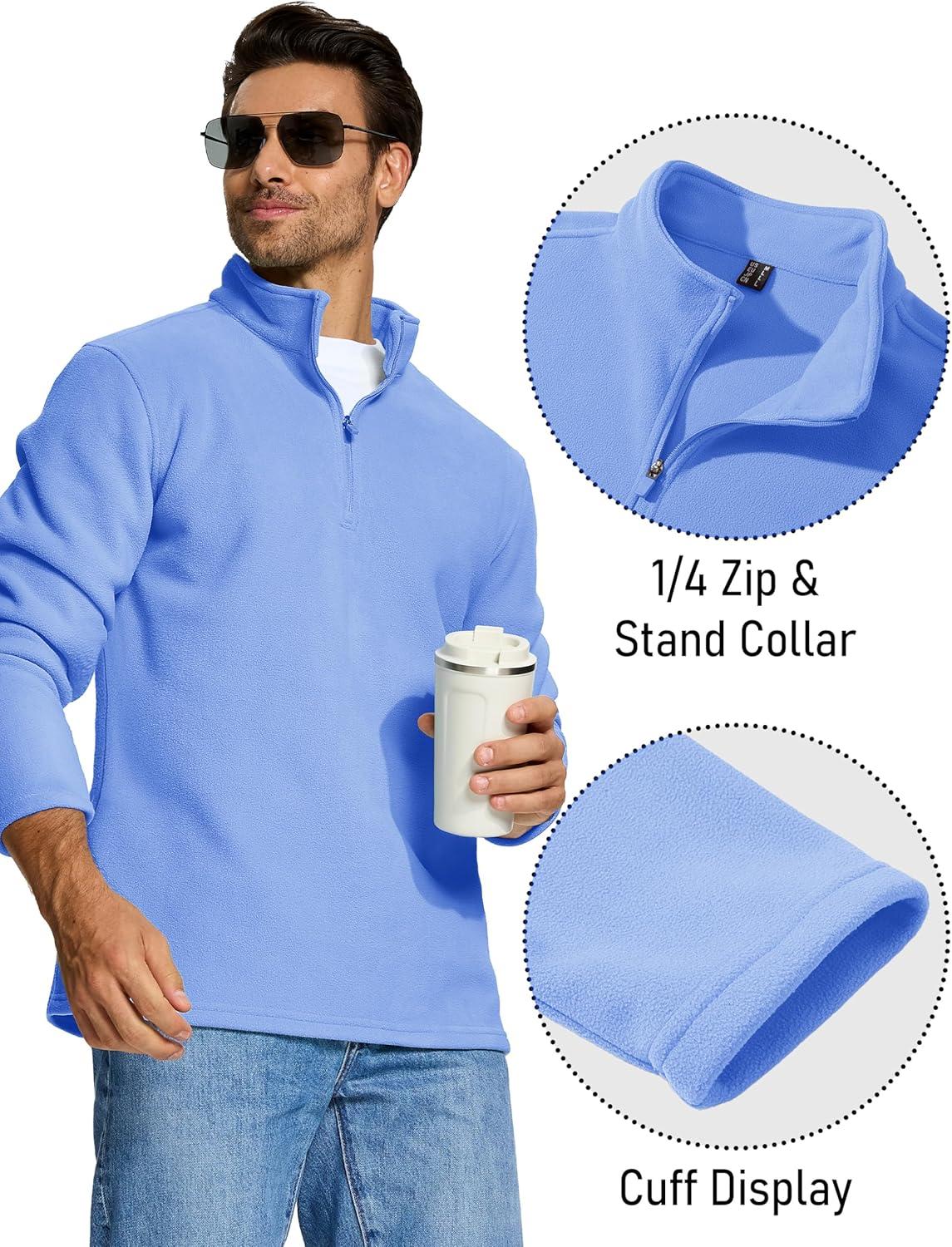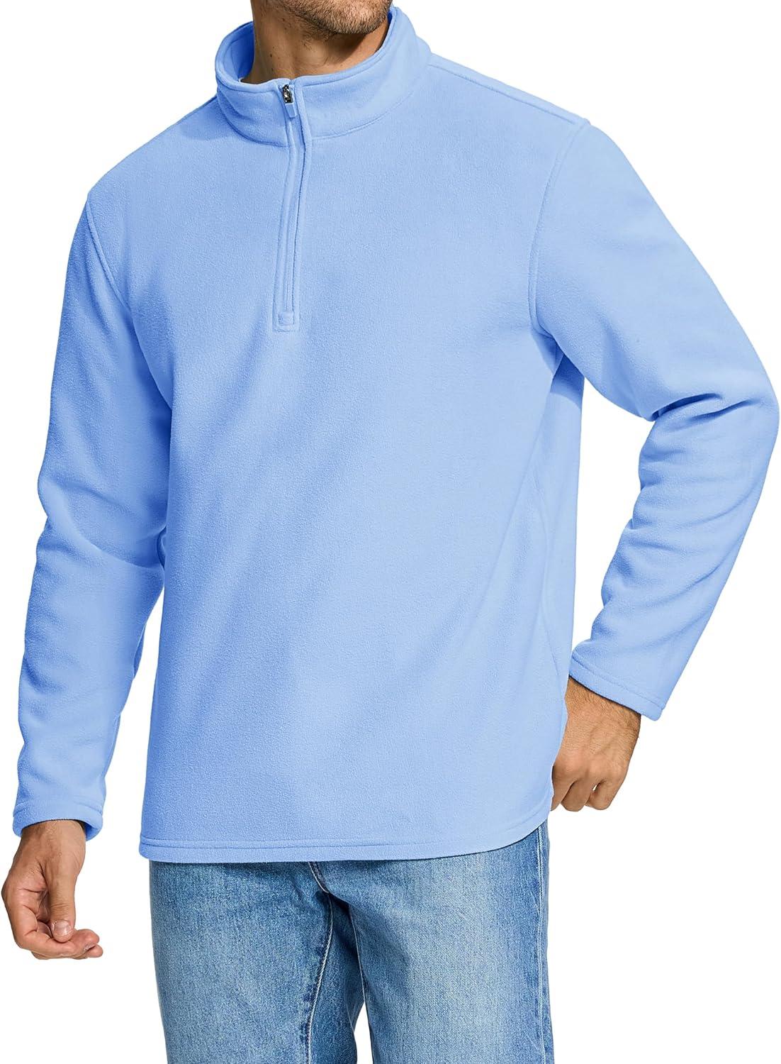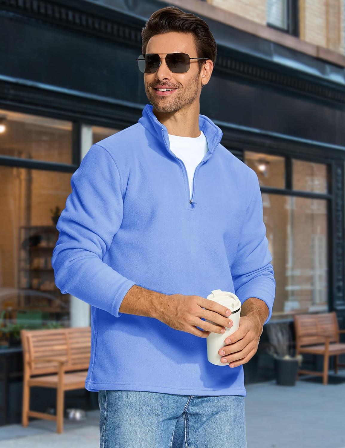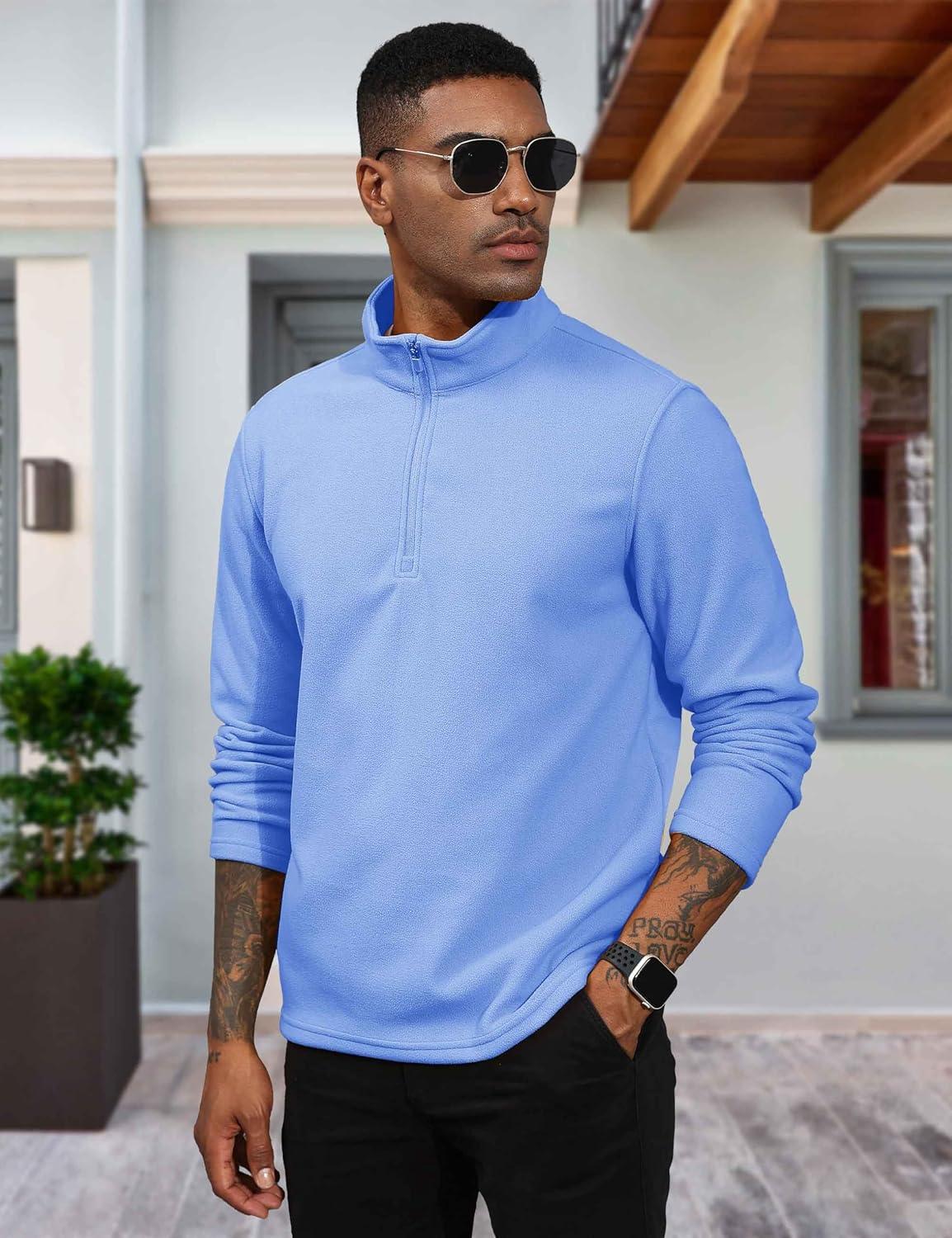 MAGCOMSEN Men’s Quarter Zip Pullover Polar Fleece Sweatshirt Casual Long Sleeve Shirts for Men Winter Fall Thermal(Light Blue)