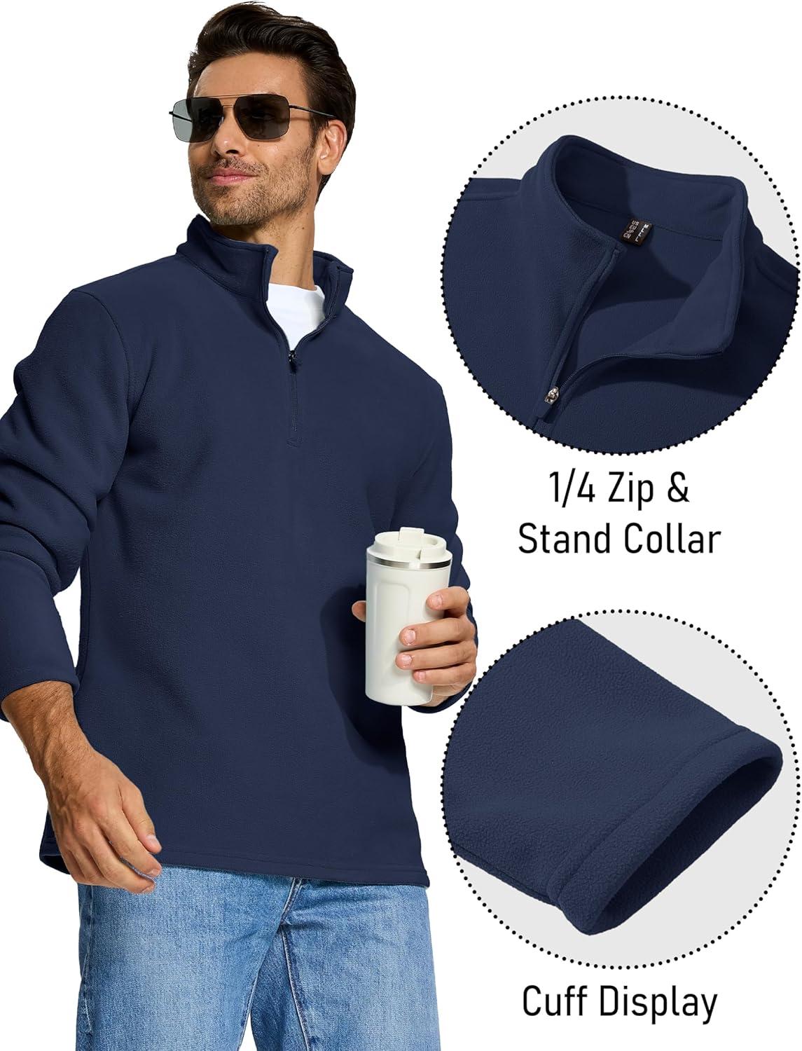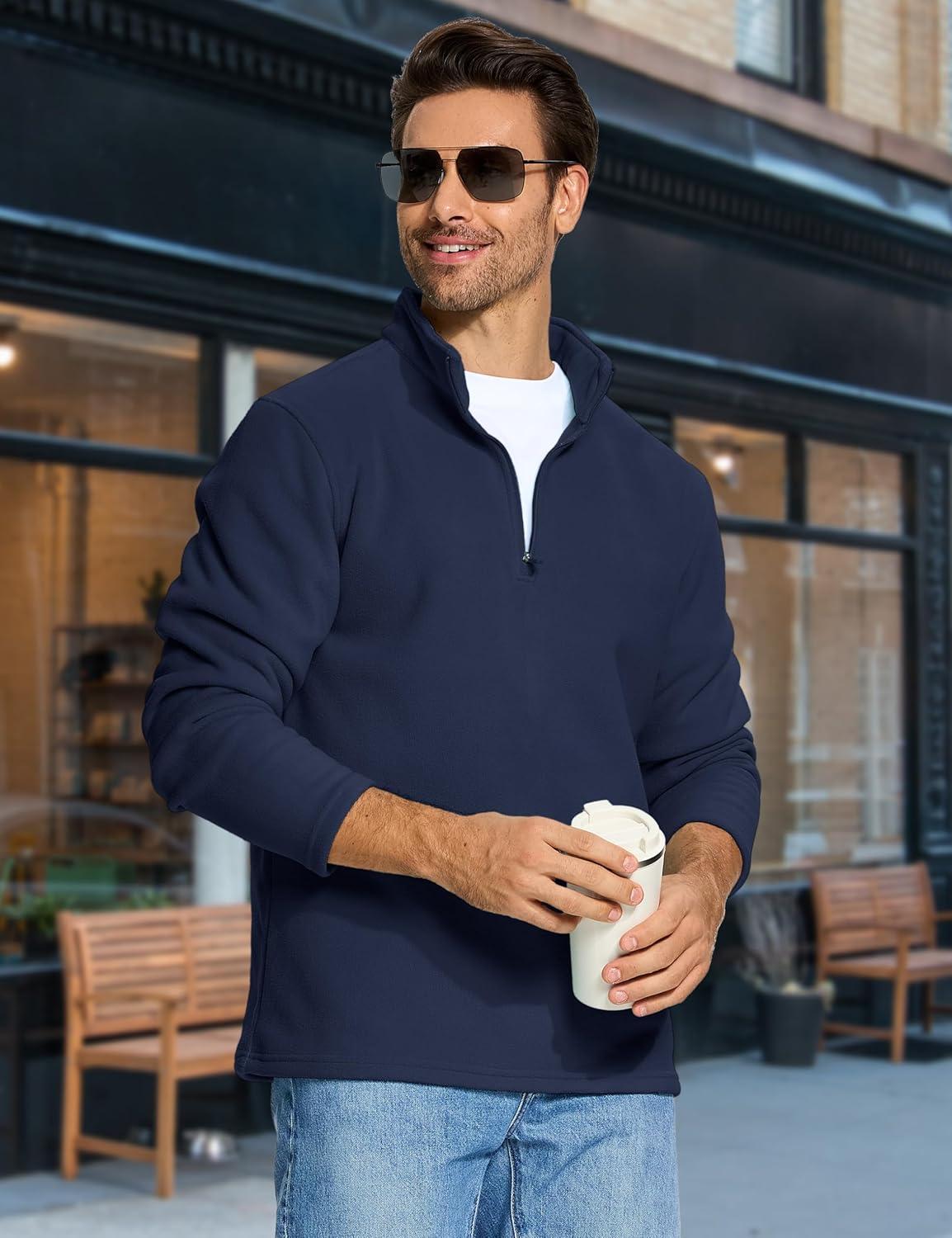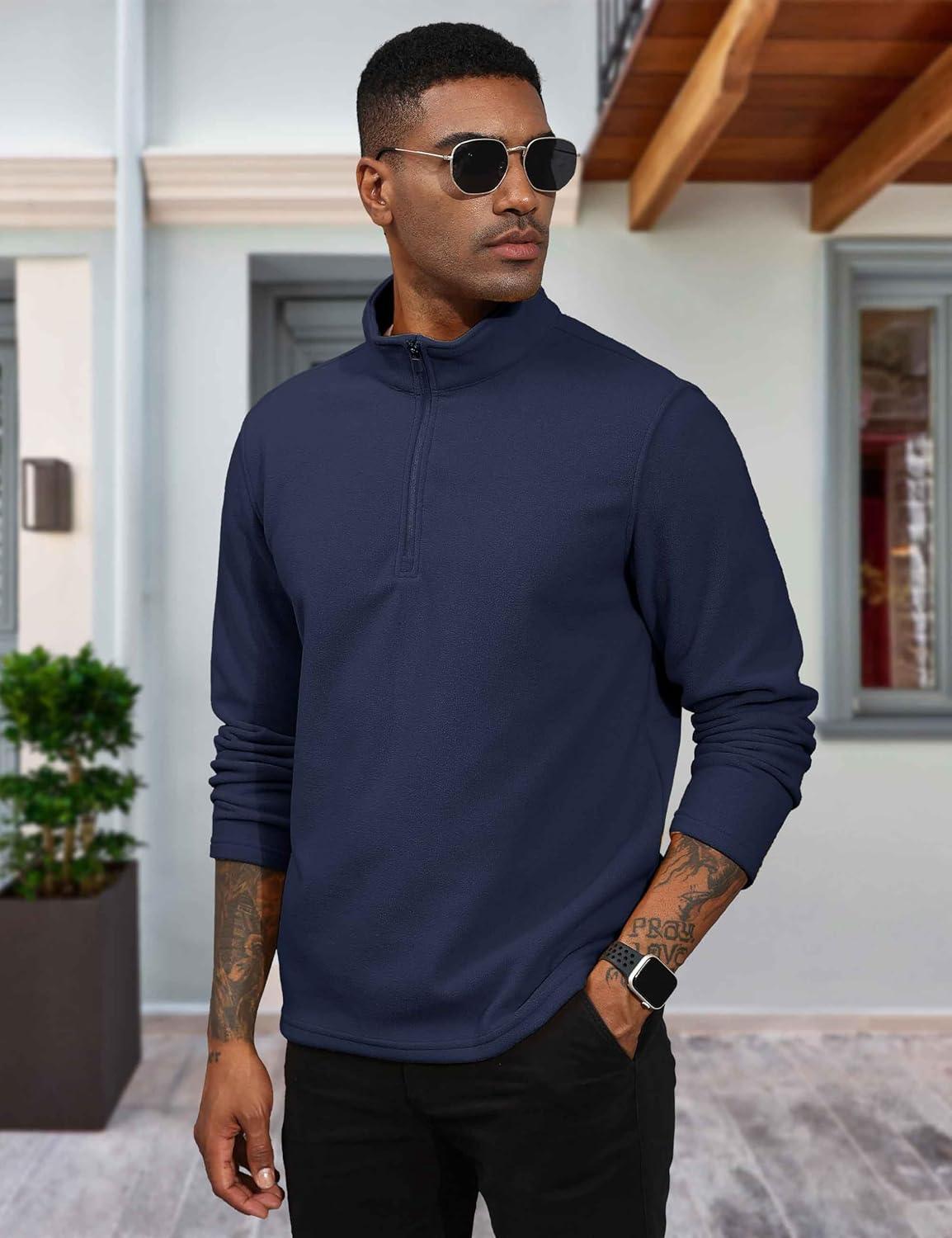 MAGCOMSEN Men’s Quarter Zip Pullover Polar Fleece Sweatshirt Casual Long Sleeve Shirts for Men Winter Fall Thermal(Navy)