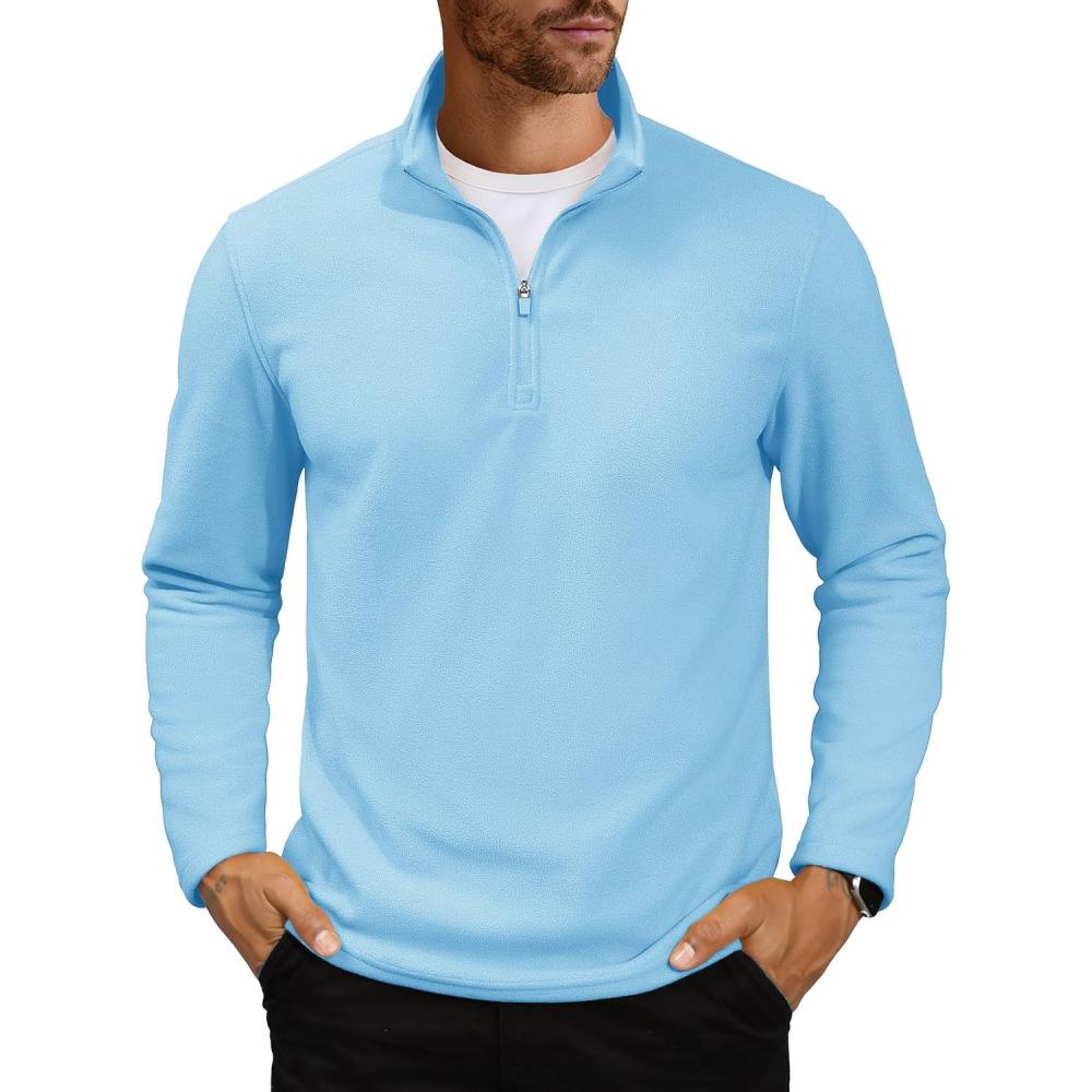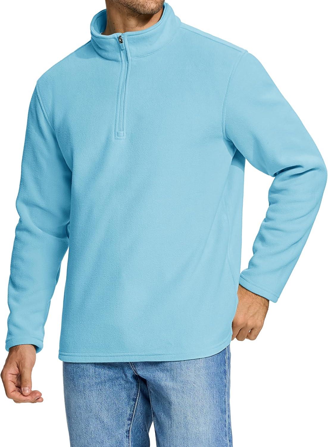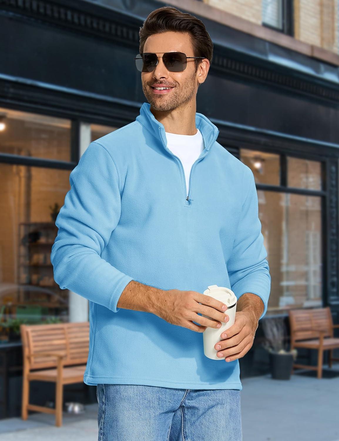 MAGCOMSEN Men’s Quarter Zip Pullover Polar Fleece Sweatshirt Casual Long Sleeve Shirts for Men Winter Fall Thermal(Water Blue)