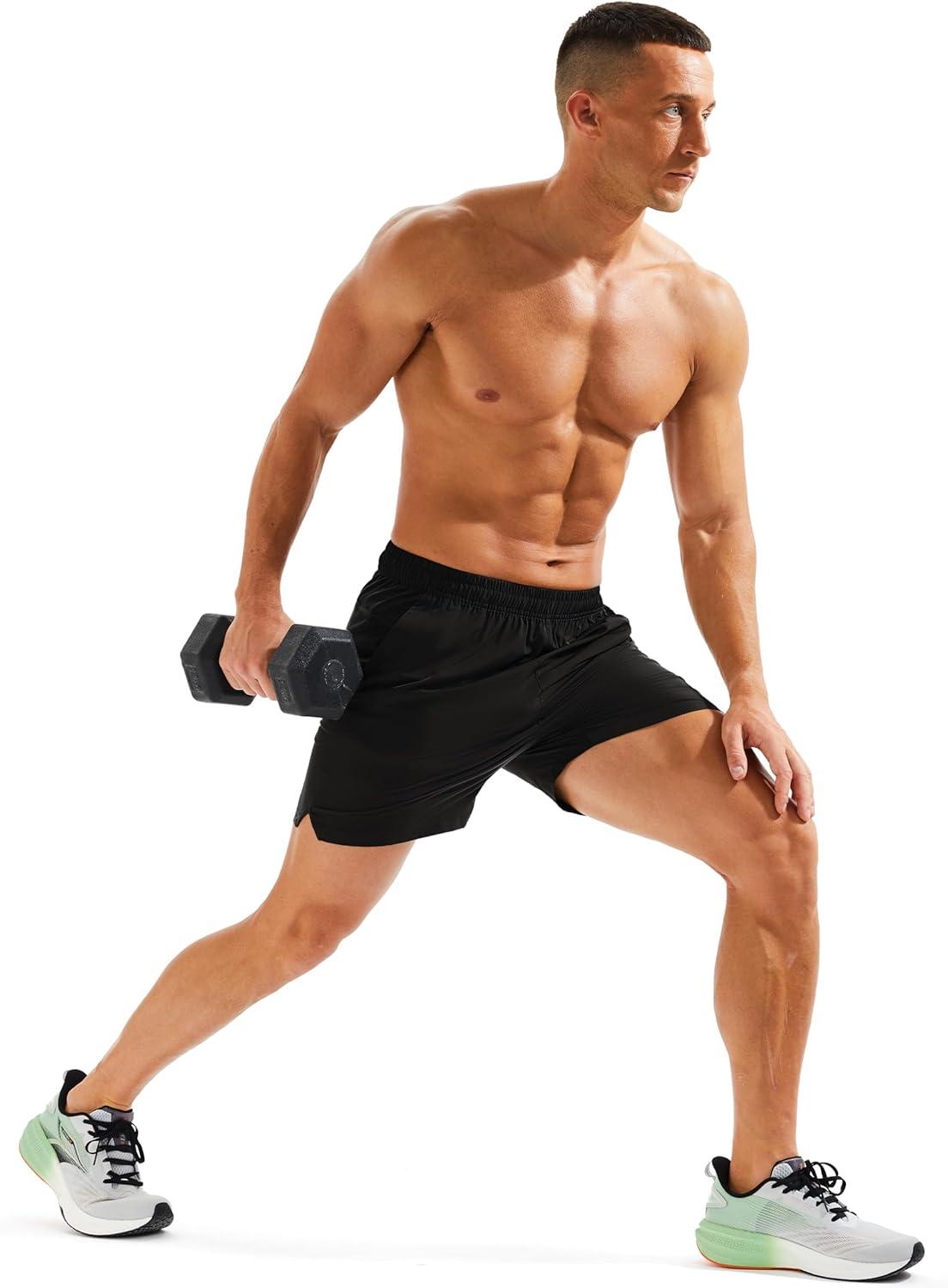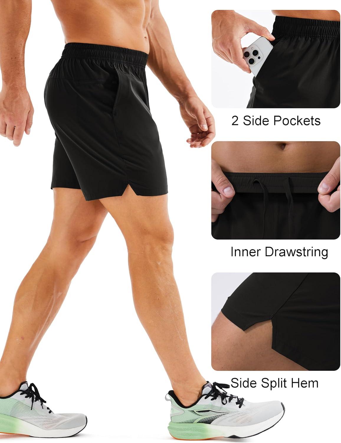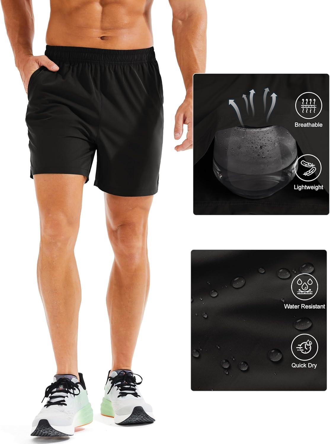 MAGCOMSEN Men’s Running Shorts 5″ Quick Dry Lightweight Hiking Shorts with Pockets for Workout Athletic Gym(01.black)