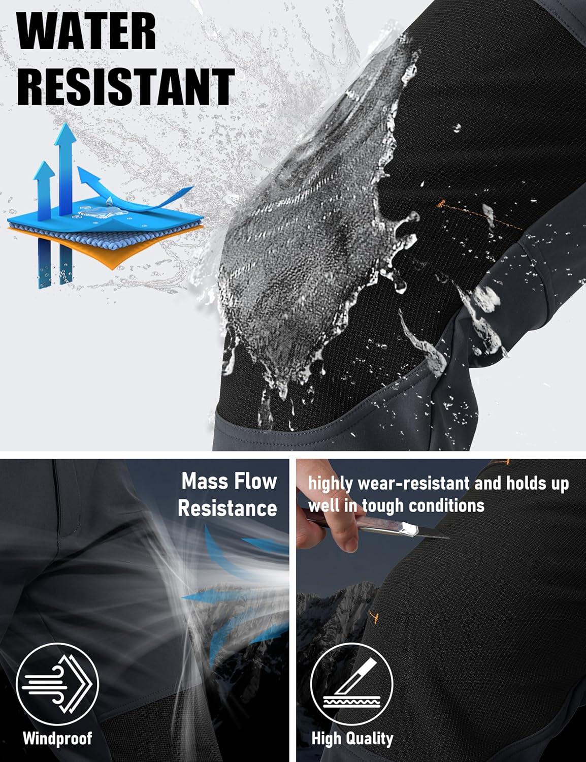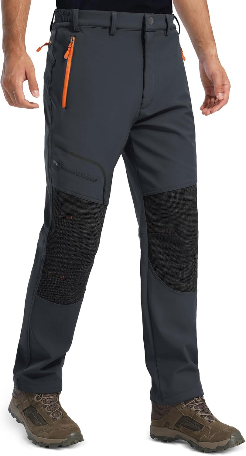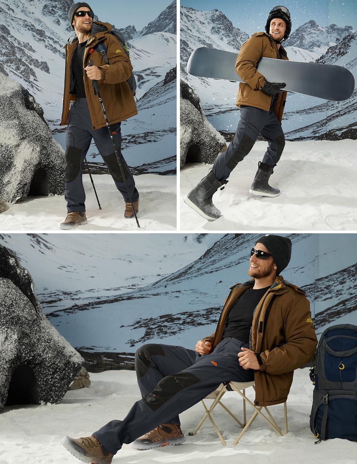 MAGCOMSEN Men’s Snow Ski Pants Fleece Lined Winter Water Resistant Insulated Work Hiking Snowboard Pants 4 Pockets(Dark Grey)
