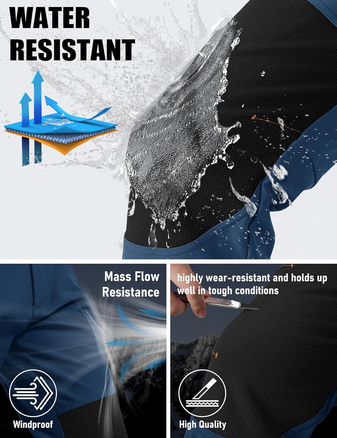 MAGCOMSEN Men’s Snow Ski Pants Fleece Lined Winter Water Resistant Insulated Work Hiking Snowboard Pants 4 Pockets(Denim Blue)