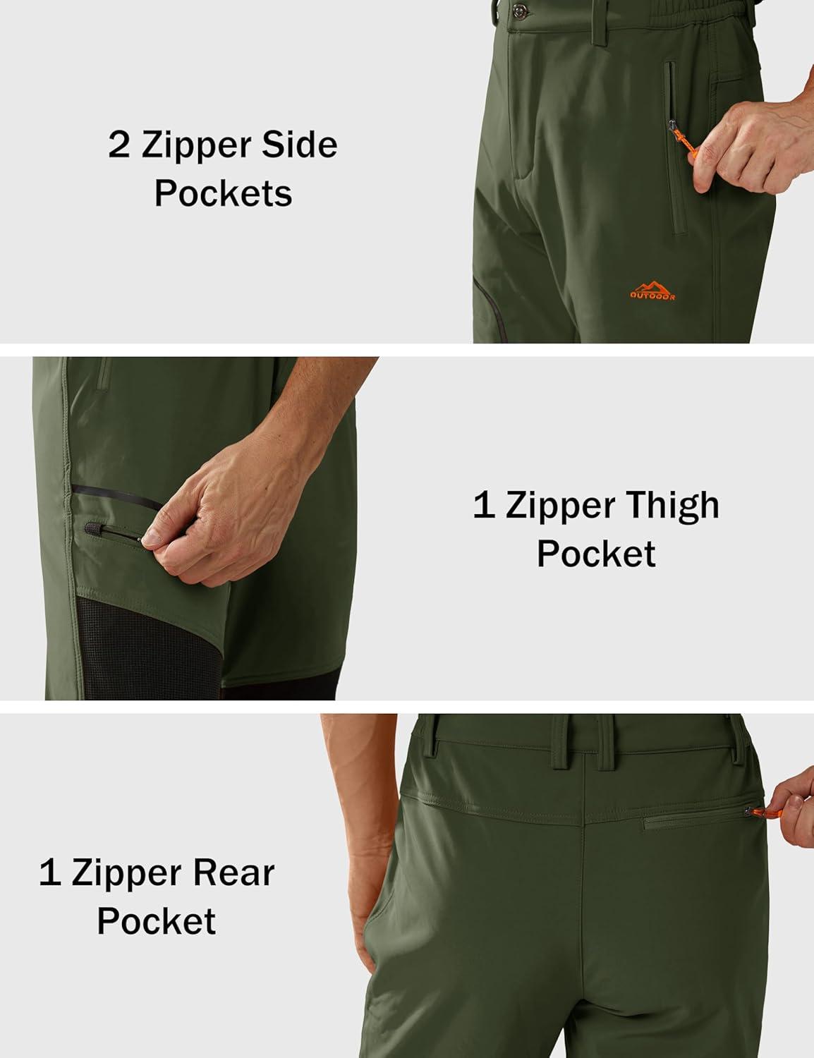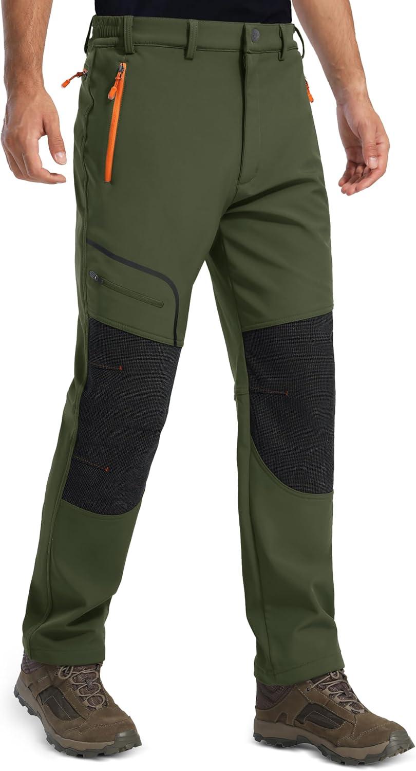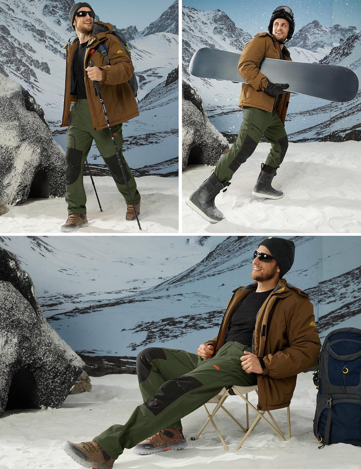 MAGCOMSEN Men’s Snow Ski Pants Fleece Lined Winter Water Resistant Insulated Work Hiking Snowboard Pants 4 Pockets(Green)
