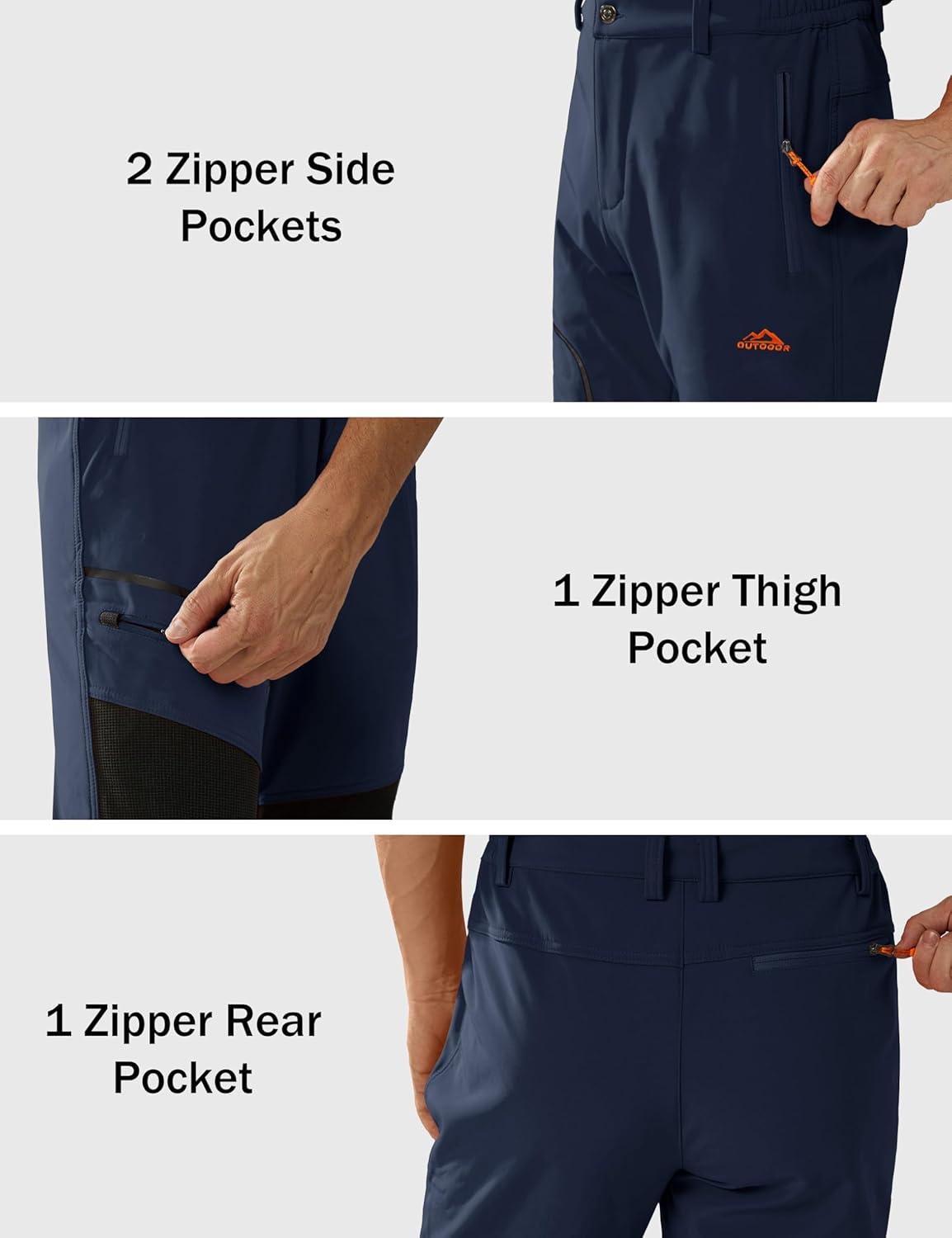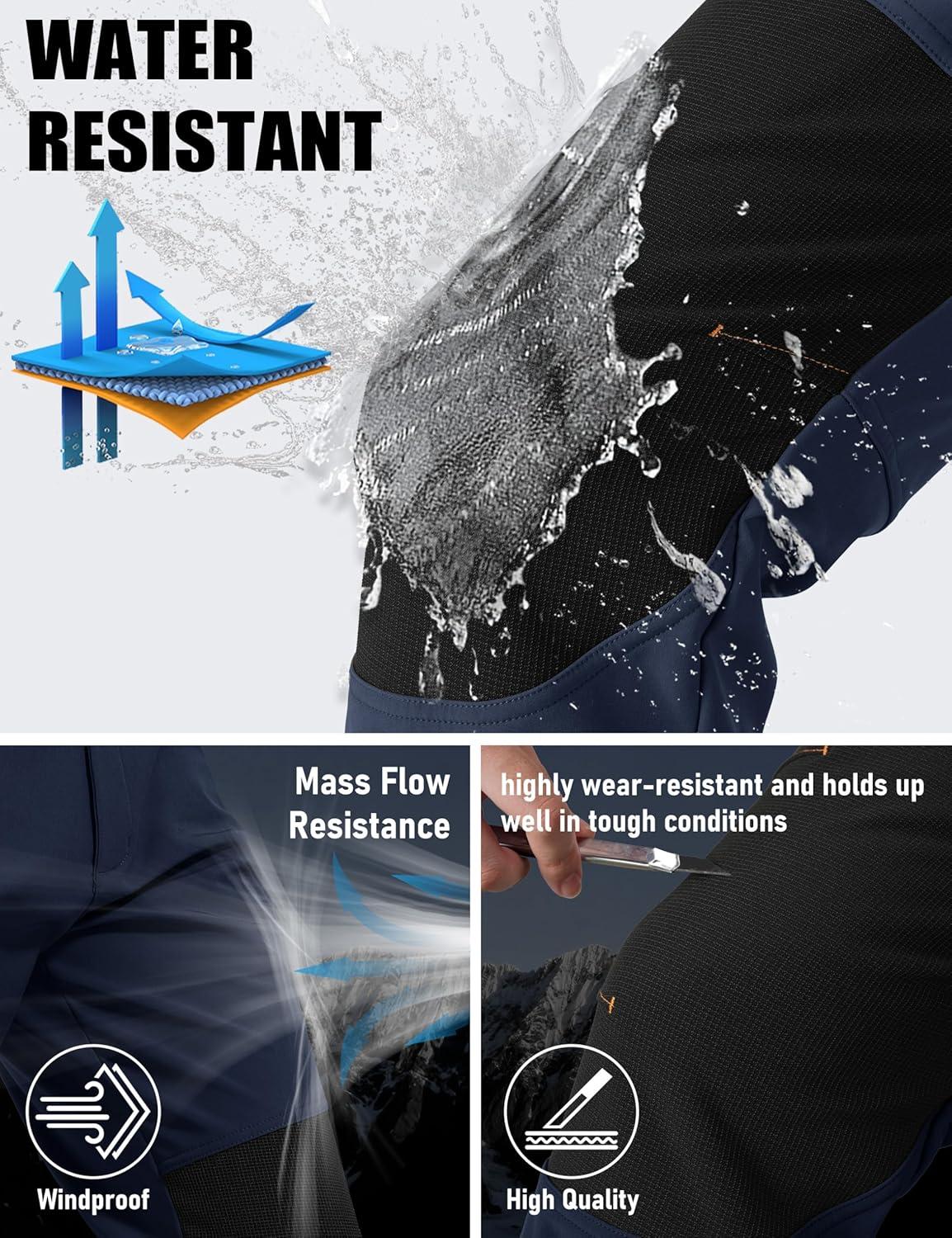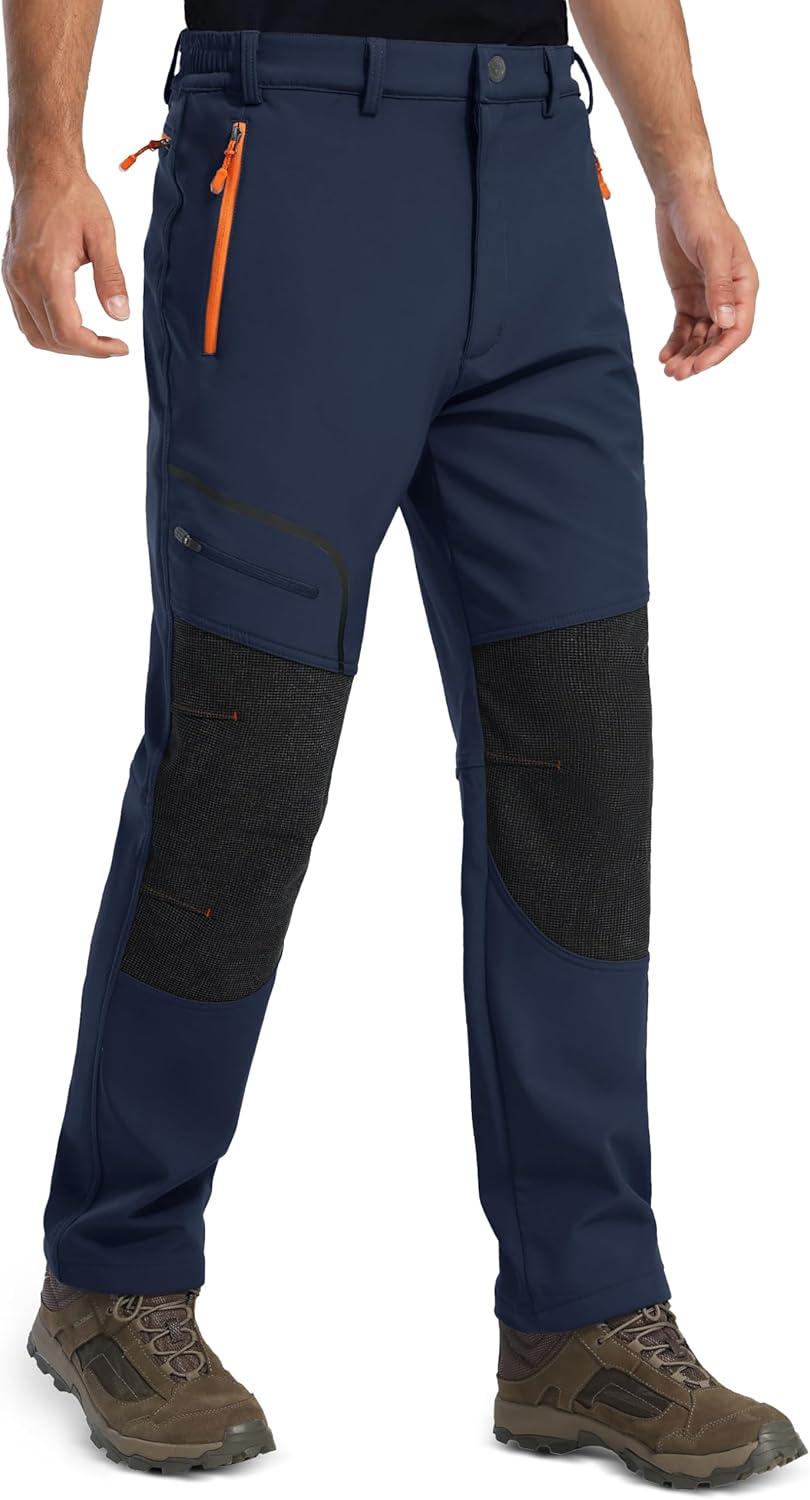 MAGCOMSEN Men’s Snow Ski Pants Fleece Lined Winter Water Resistant Insulated Work Hiking Snowboard Pants 4 Pockets(Navy)
