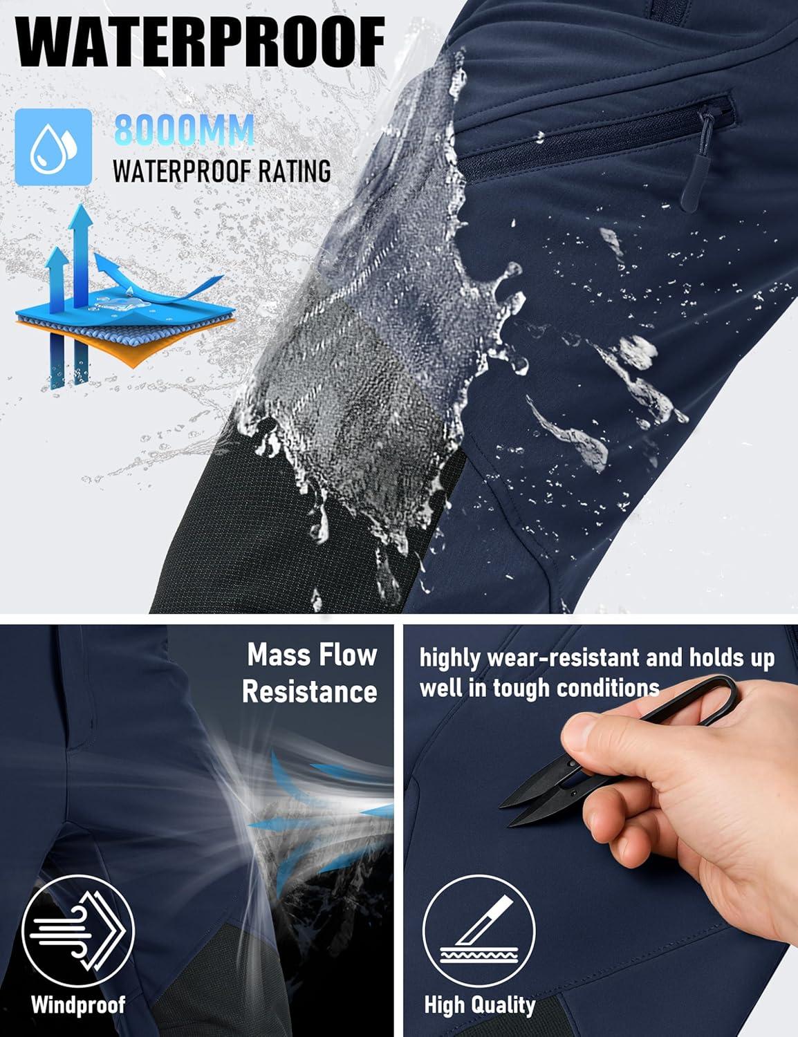 MAGCOMSEN Men’s Snow Ski Waterproof Pants Winter Fleece Lined Insulated Work Outdoor Hiking Snowboard Pants 4 Pockets(Navy Blue)