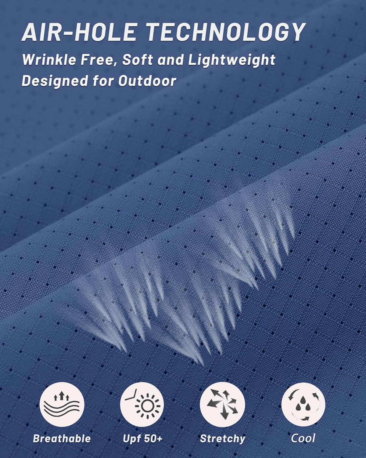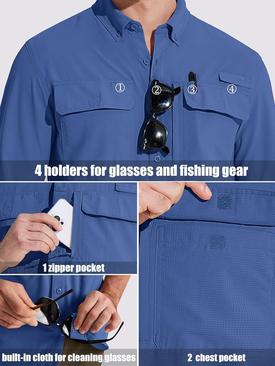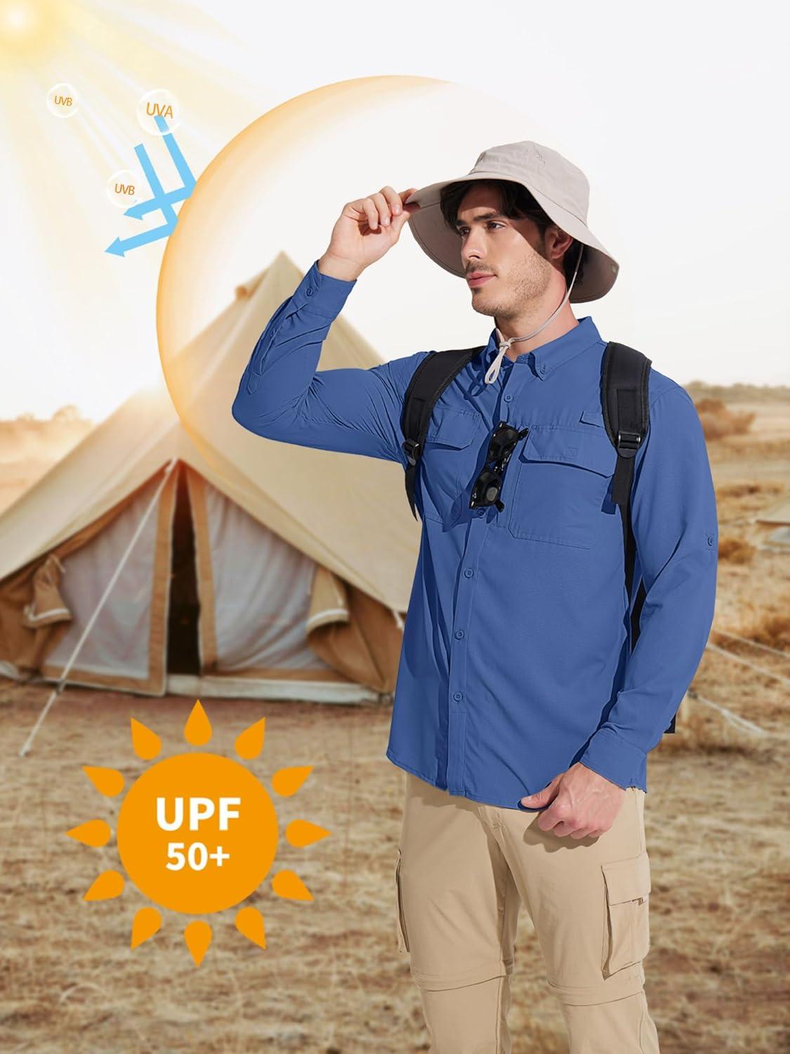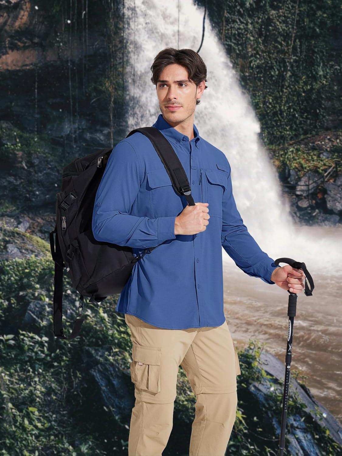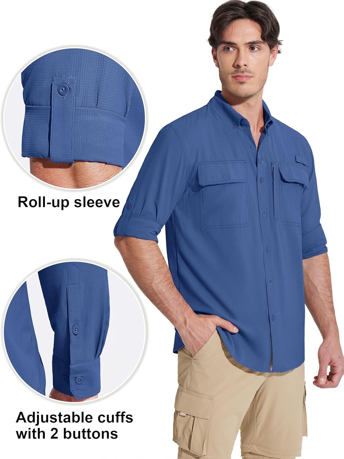 MAGCOMSEN Men’s Sun Protection Fishing Shirts Long Sleeve UPF 50+ Quick Dry Cooling Button Down Shirt for Hiking Safari(Blue Grey)
