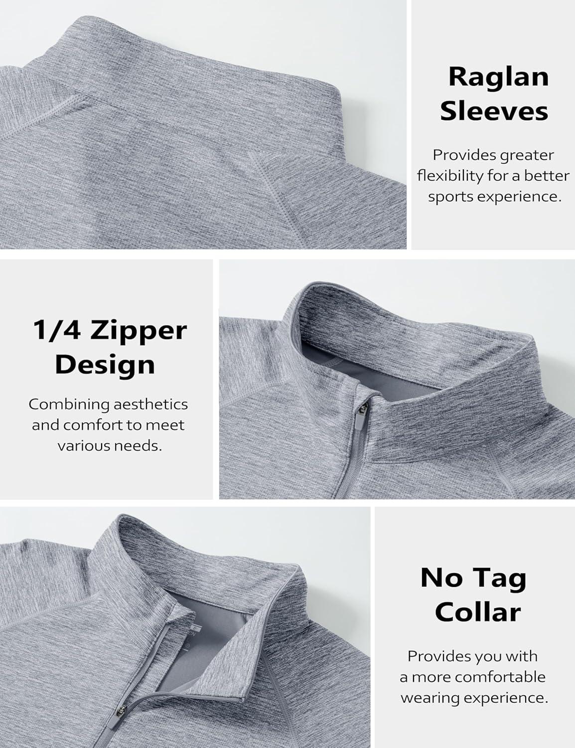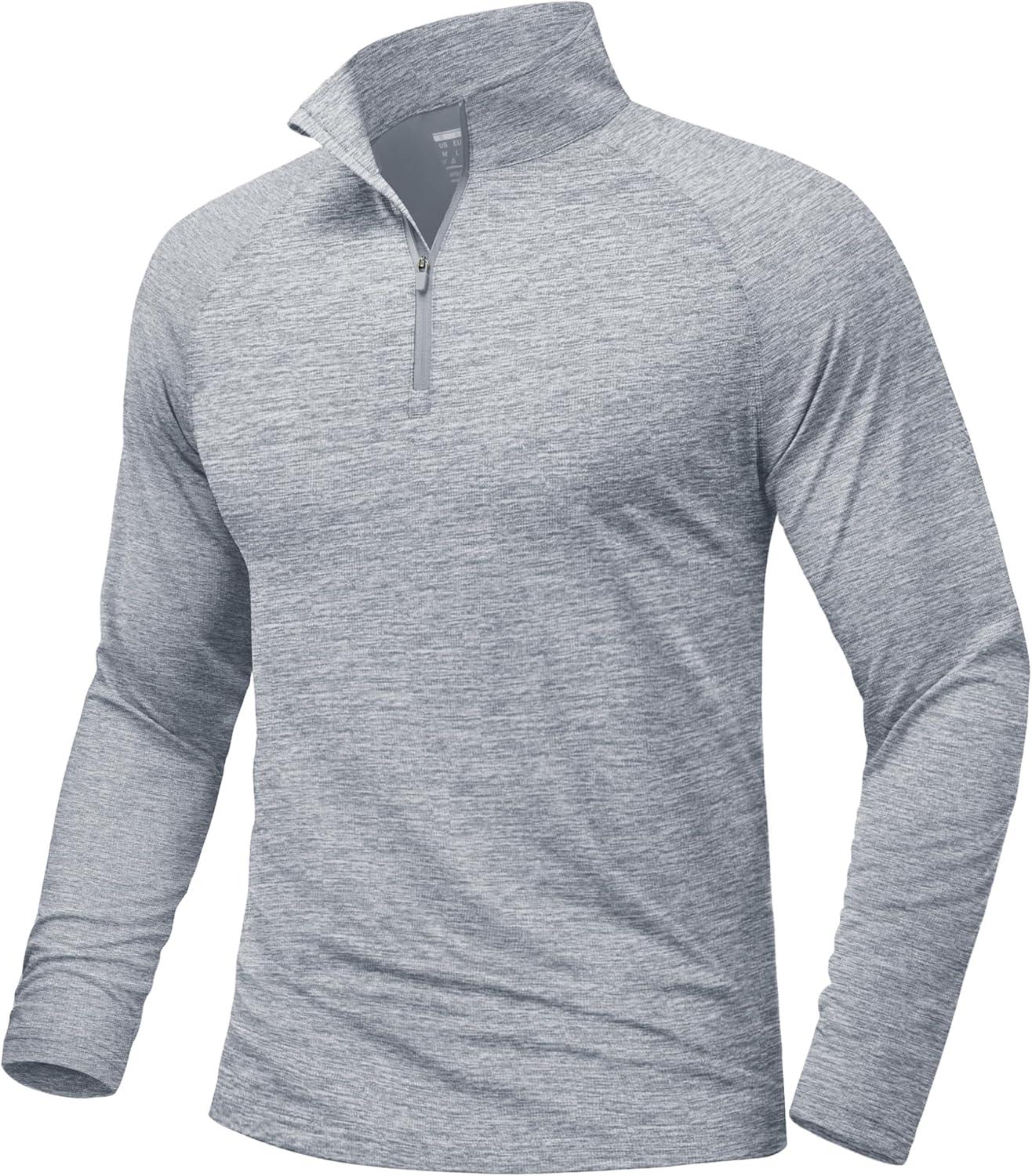 MAGCOMSEN Mens Sun Protection UPF 50+ Long Sleeve Shirt Quarter Zip Pullover Quick Dry Lightweight Fishing Running Rash Guard(Light Grey)
