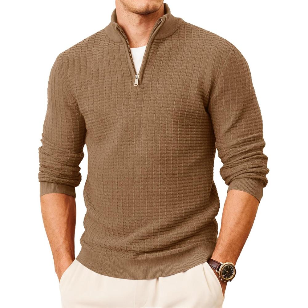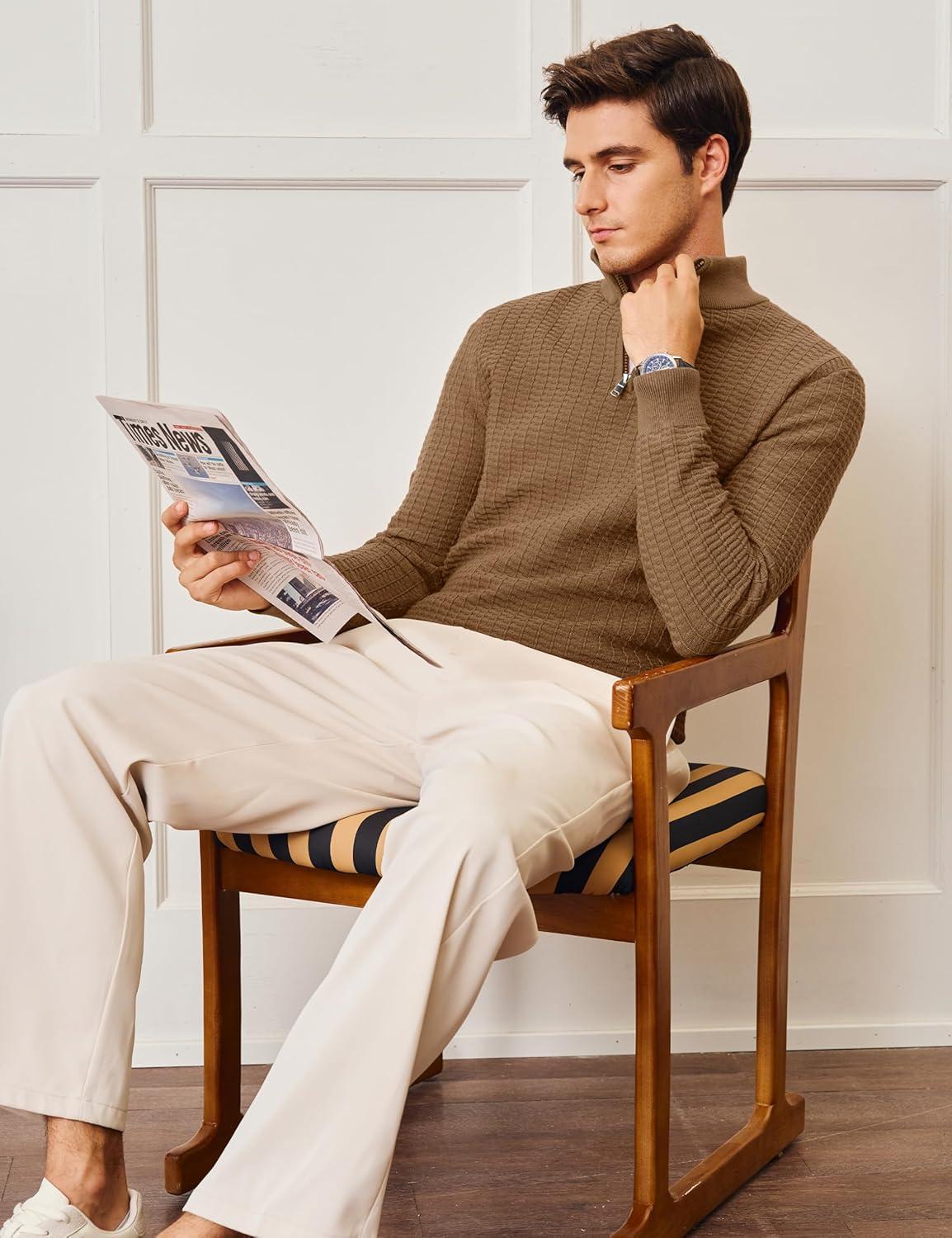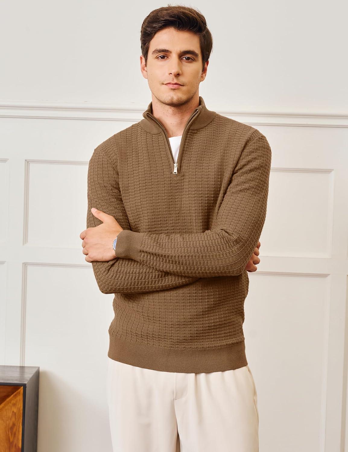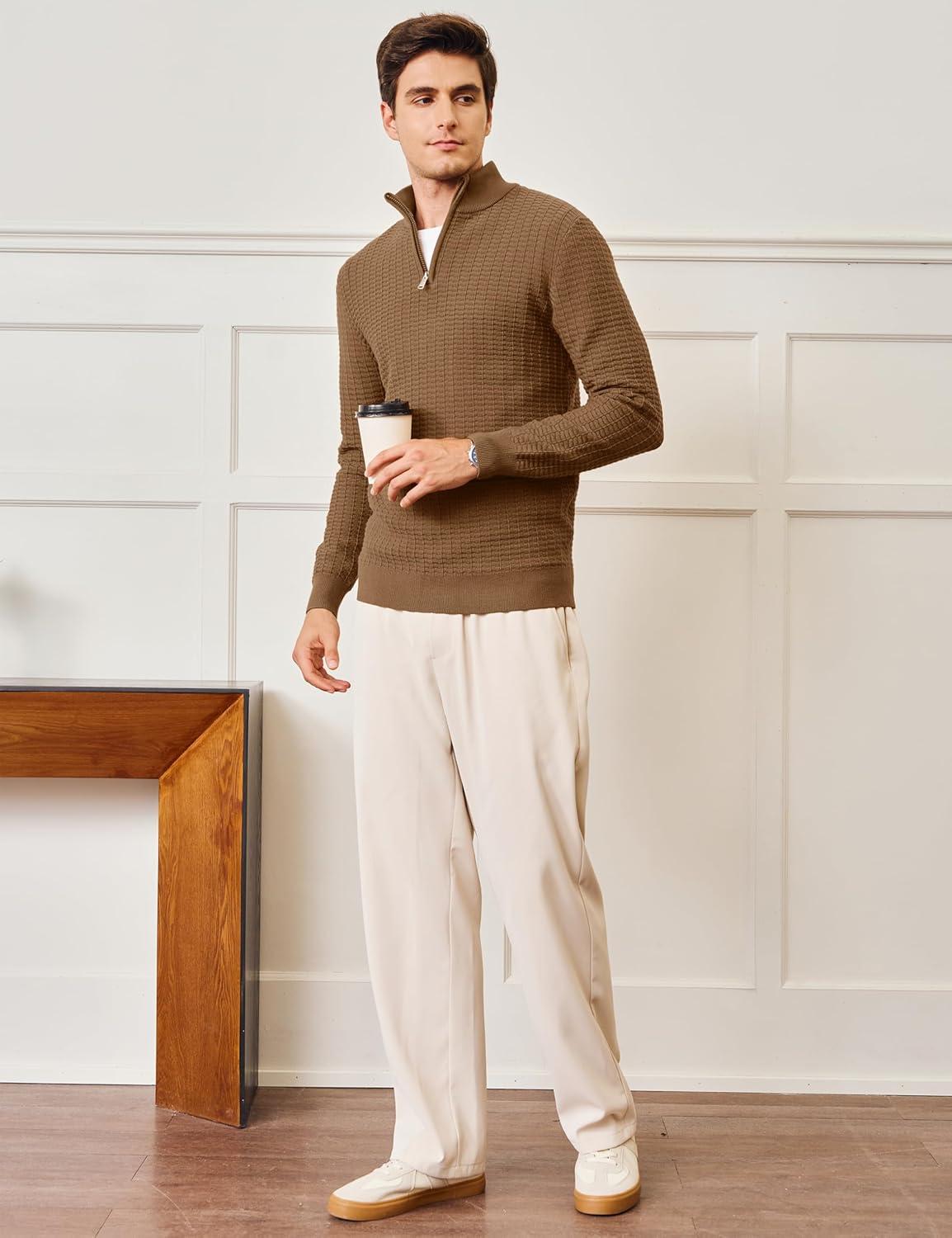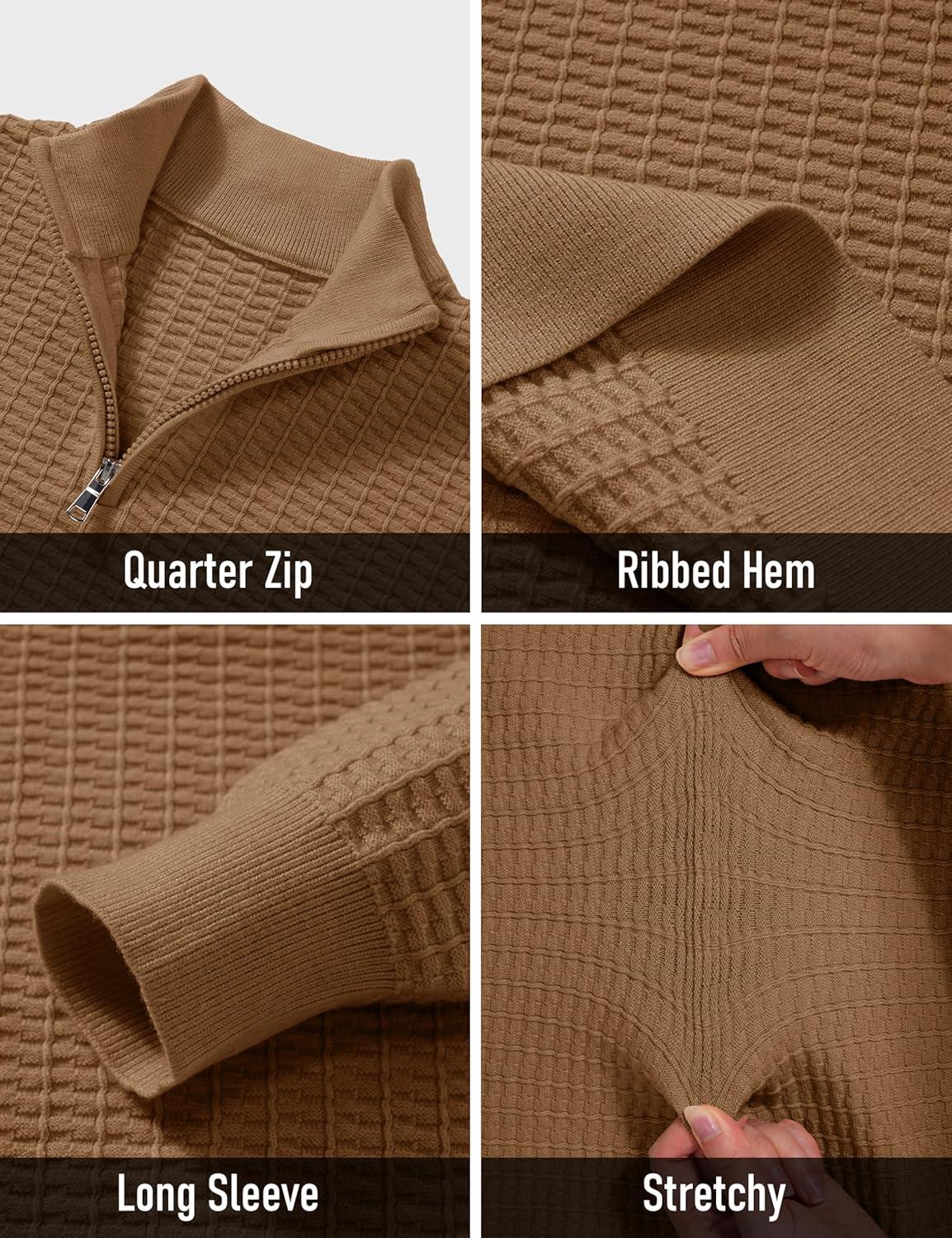 MAGCOMSEN Men’s Sweaters 1/4 Zip Knit Waffle Textured Pullover for Fall Winter Warm Soft Sweater(Coffee)