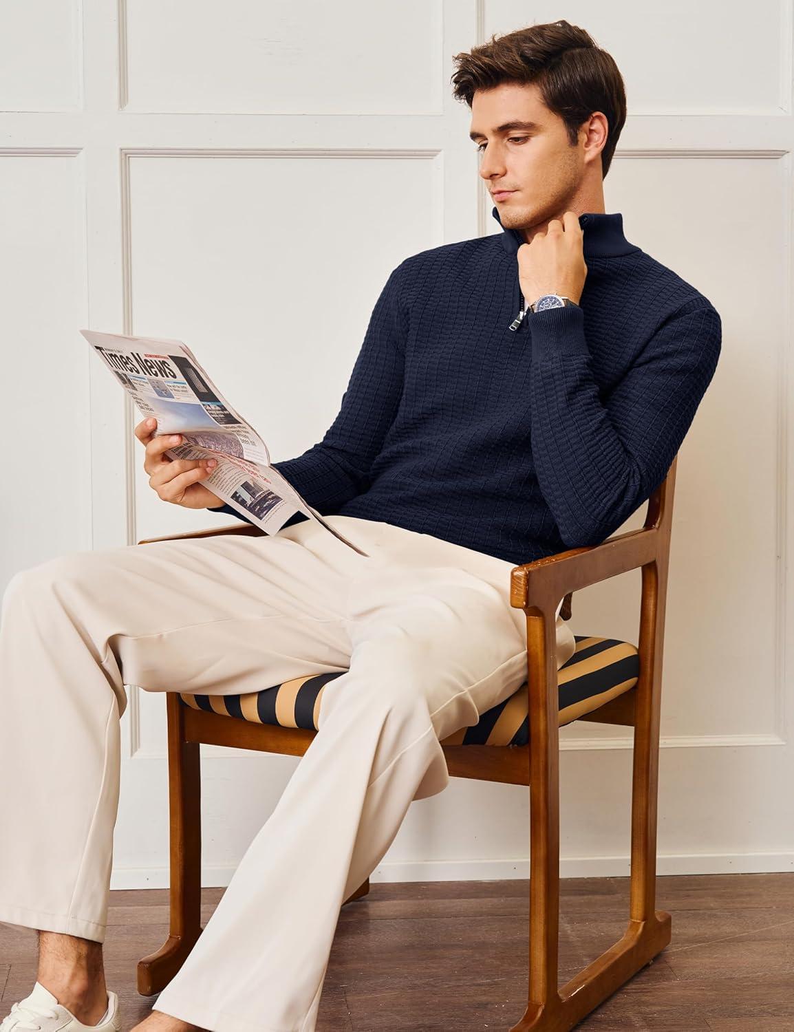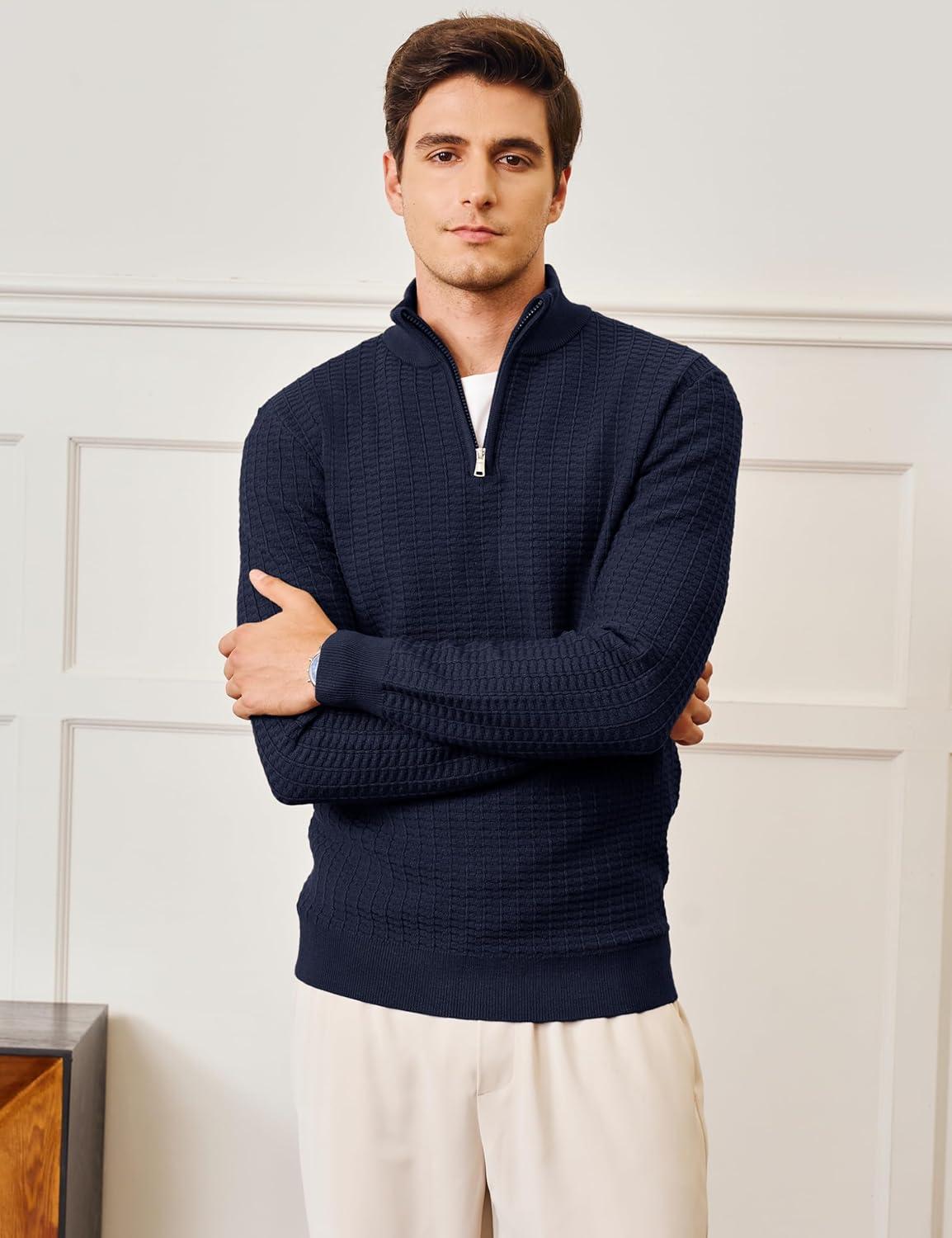 MAGCOMSEN Men’s Sweaters 1/4 Zip Knit Waffle Textured Pullover for Fall Winter Warm Soft Sweater(Navy)