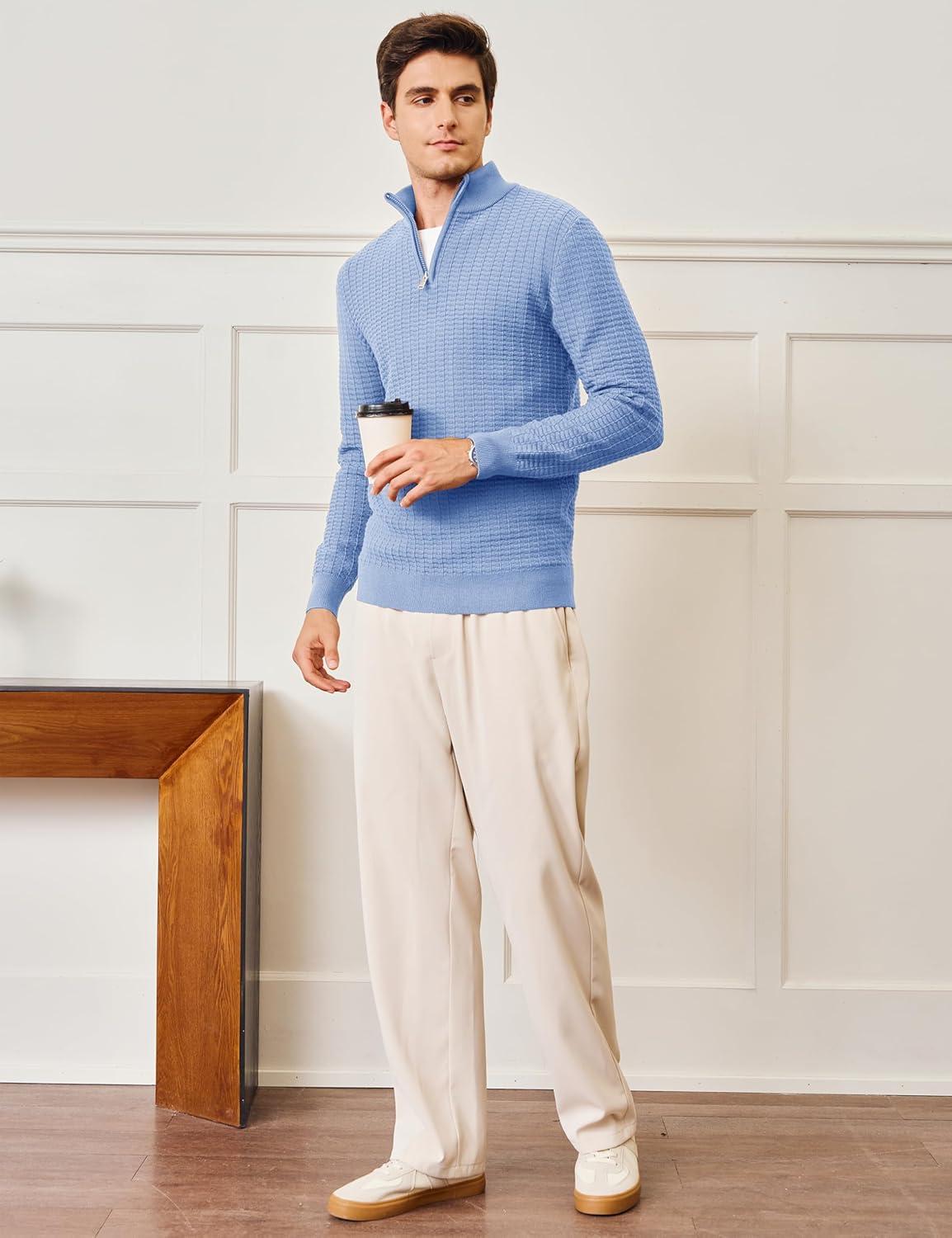 MAGCOMSEN Men’s Sweaters 1/4 Zip Knit Waffle Textured Pullover for Fall Winter Warm Soft Sweatshirts(Blue)