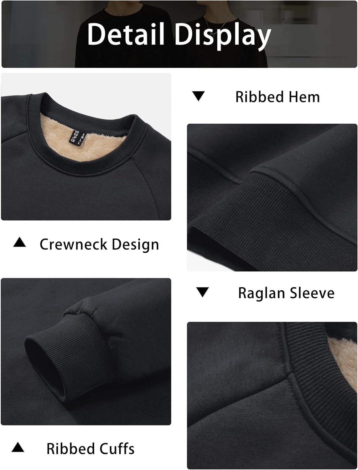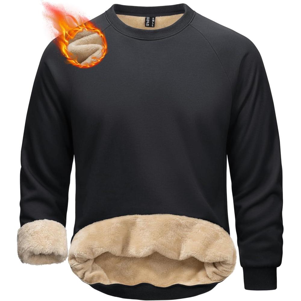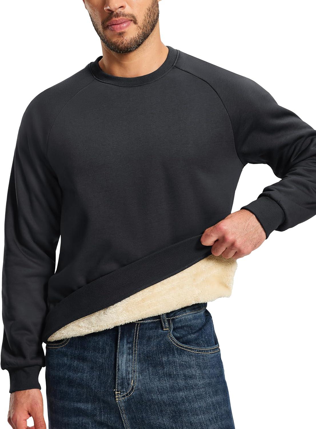 MAGCOMSEN Men’s Sweatshirts Sherpa Lined, Heavyweight Fleece Pullover, Warm Crewneck Winter Sweatshirt(Black)