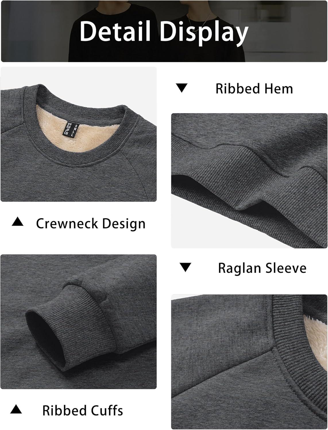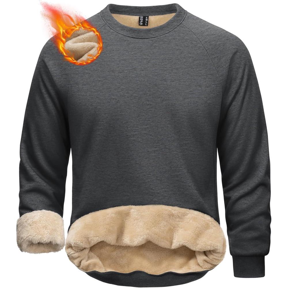 MAGCOMSEN Men’s Sweatshirts Sherpa Lined, Heavyweight Fleece Pullover, Warm Crewneck Winter Sweatshirt(Gray)