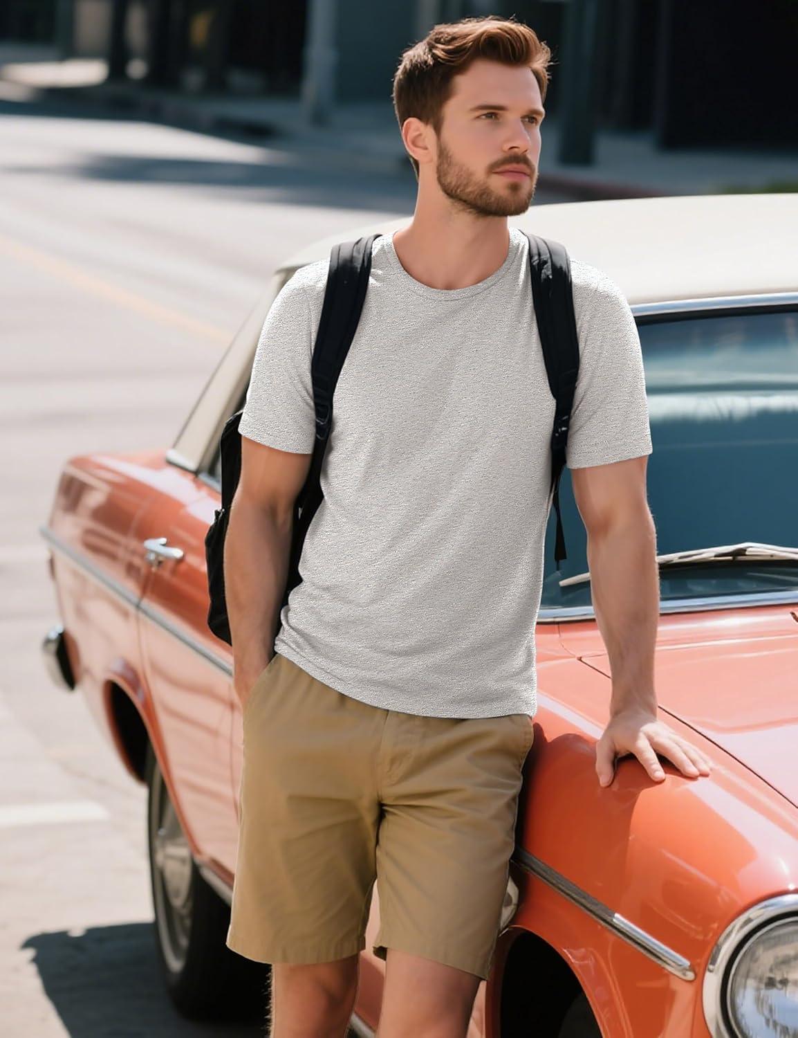 MAGCOMSEN Men’s T-Shirts Short Sleeve Cotton Crew Neck Soft Breathable T Shirts Casual Plain Classic Summer Tees(Beige)