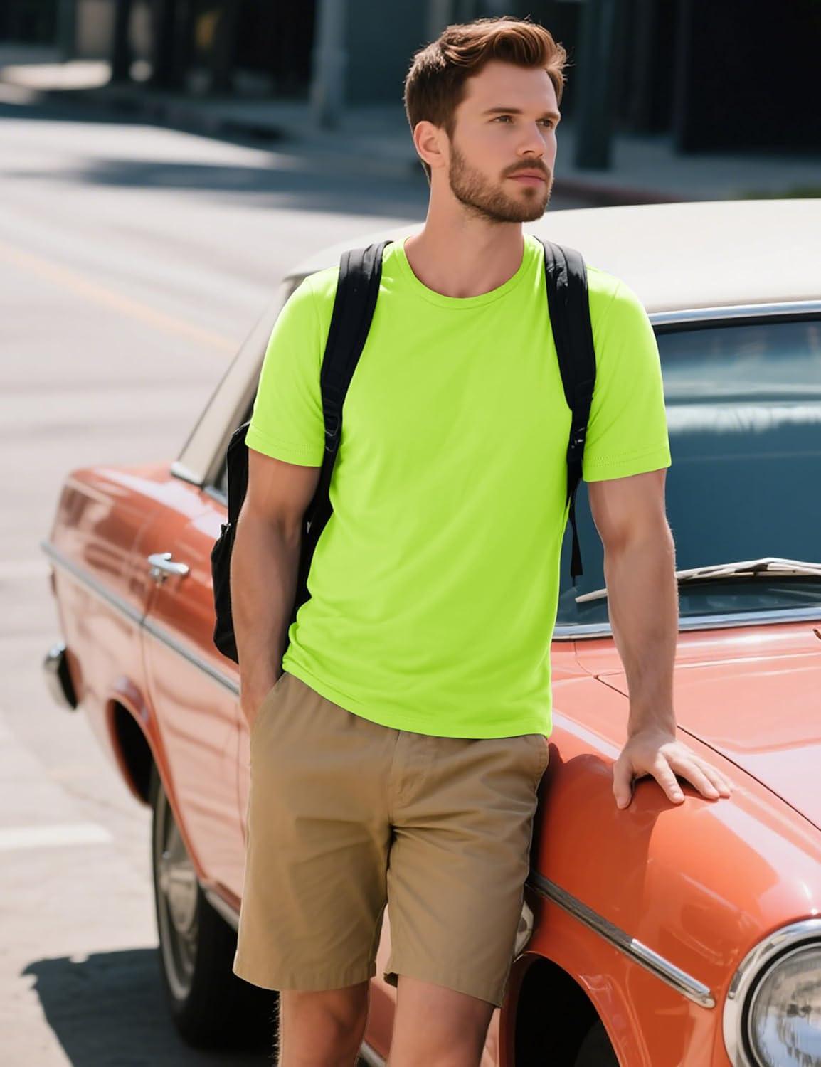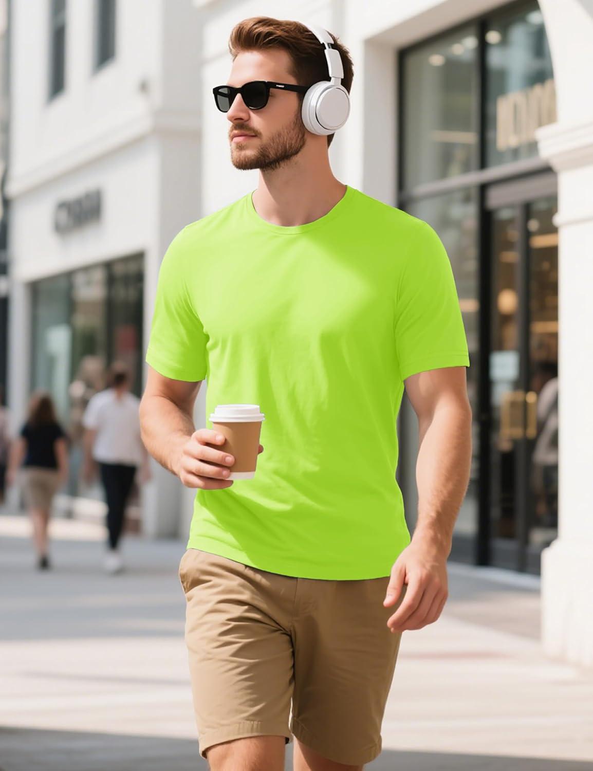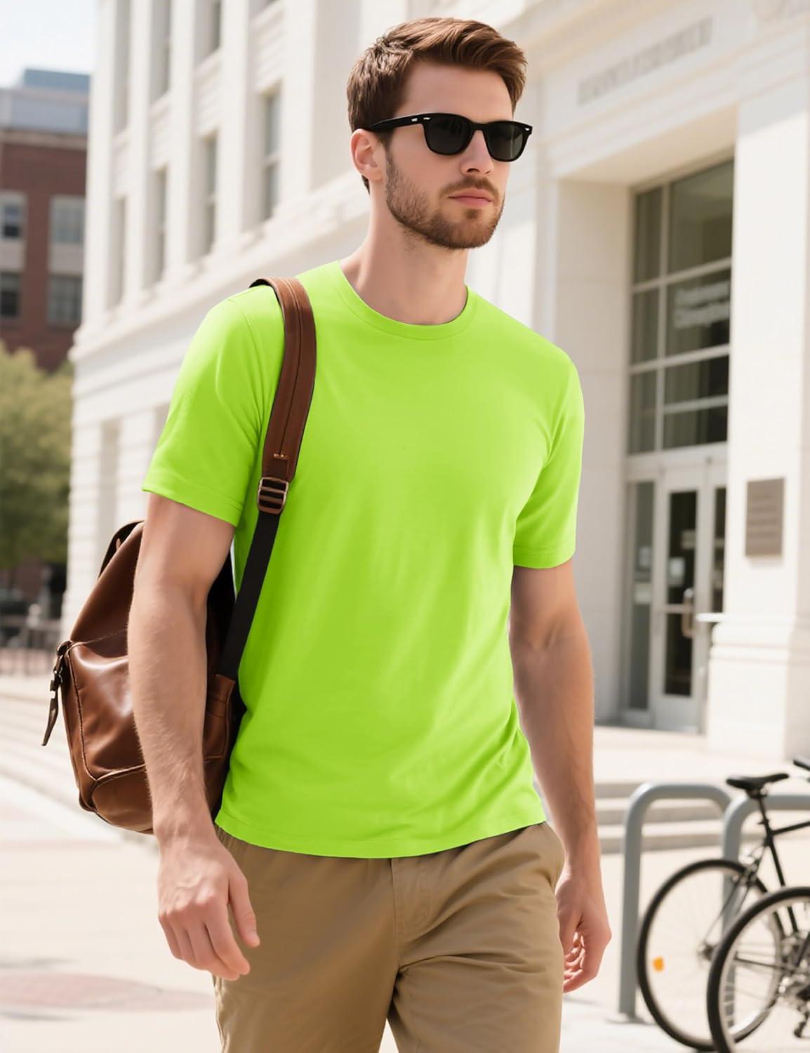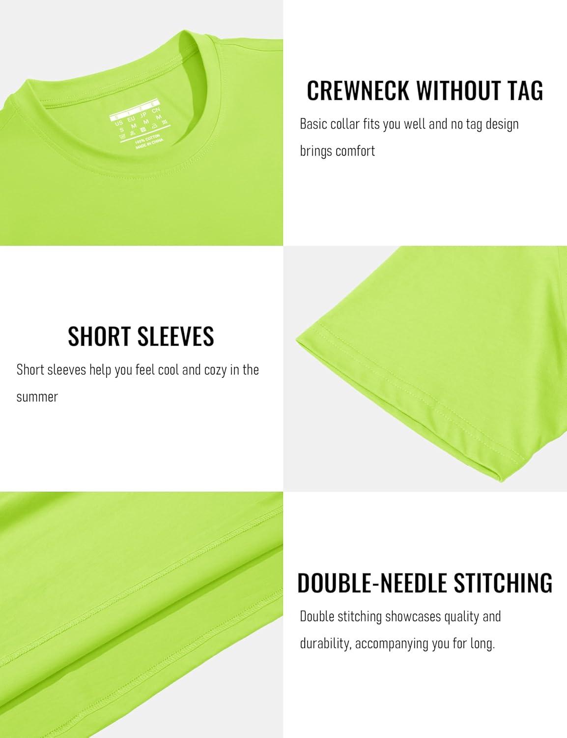 MAGCOMSEN Men’s T-Shirts Short Sleeve Cotton Crew Neck Soft Breathable T Shirts Casual Plain Classic Summer Tees(Fluorescent Green)