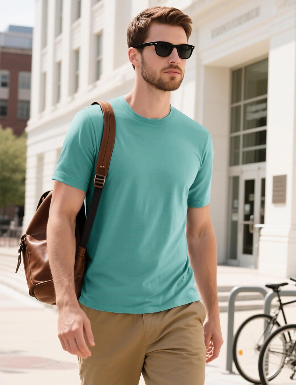 MAGCOMSEN Men’s T-Shirts Short Sleeve Cotton Crew Neck Soft Breathable T Shirts Casual Plain Classic Summer Tees(Grey Green)