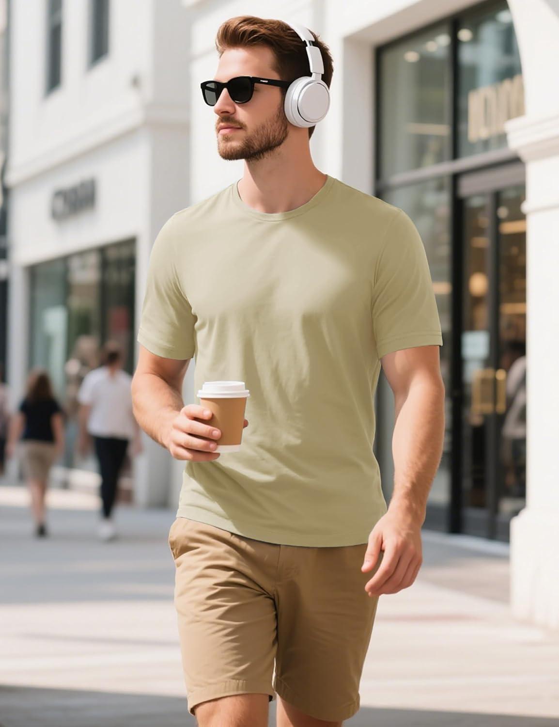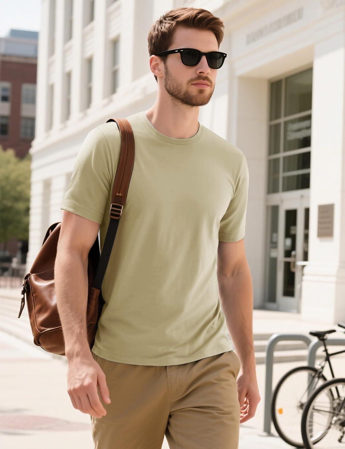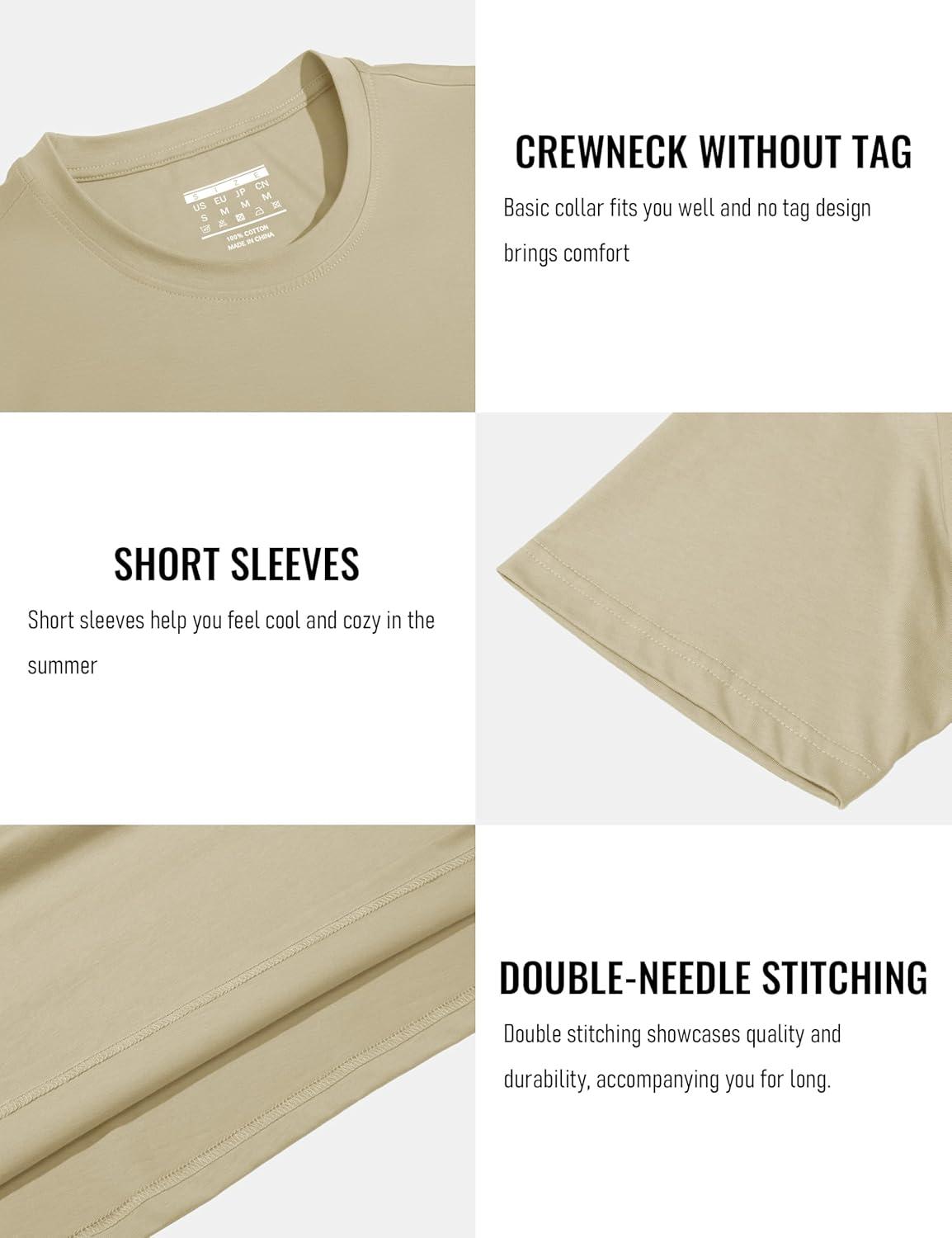 MAGCOMSEN Men’s T-Shirts Short Sleeve Cotton Crew Neck Soft Breathable T Shirts Casual Plain Classic Summer Tees(Khaki)