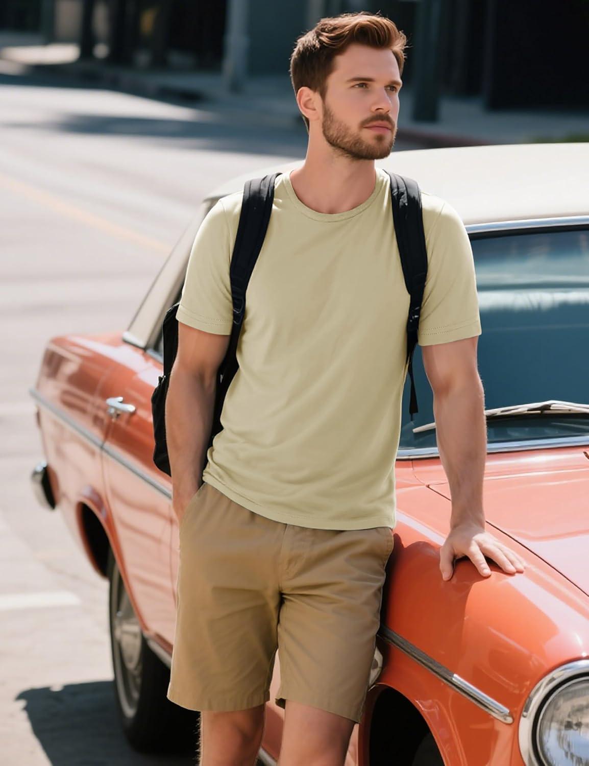 MAGCOMSEN Men’s T-Shirts Short Sleeve Cotton Crew Neck Soft Breathable T Shirts Casual Plain Classic Summer Tees(Light Apricot)