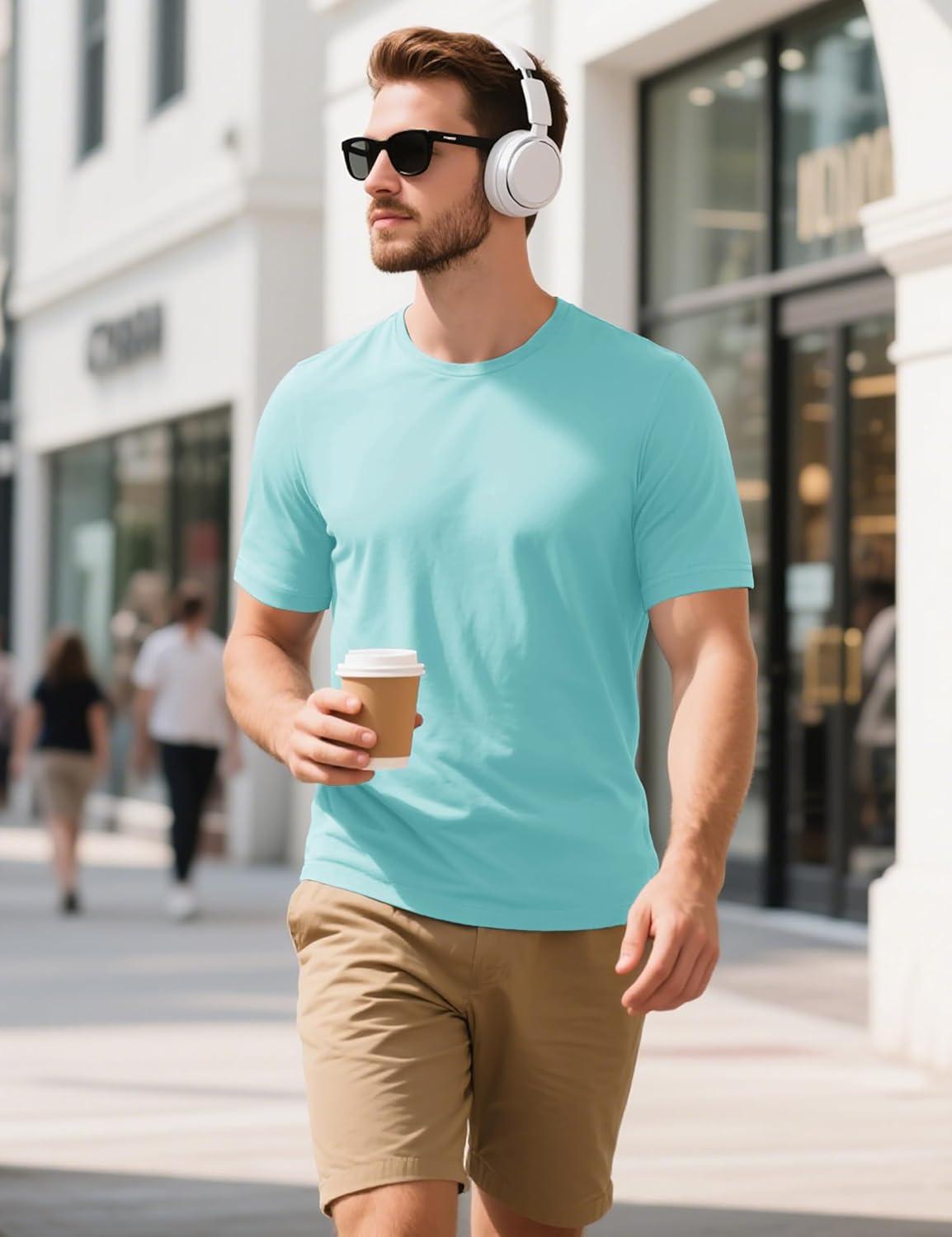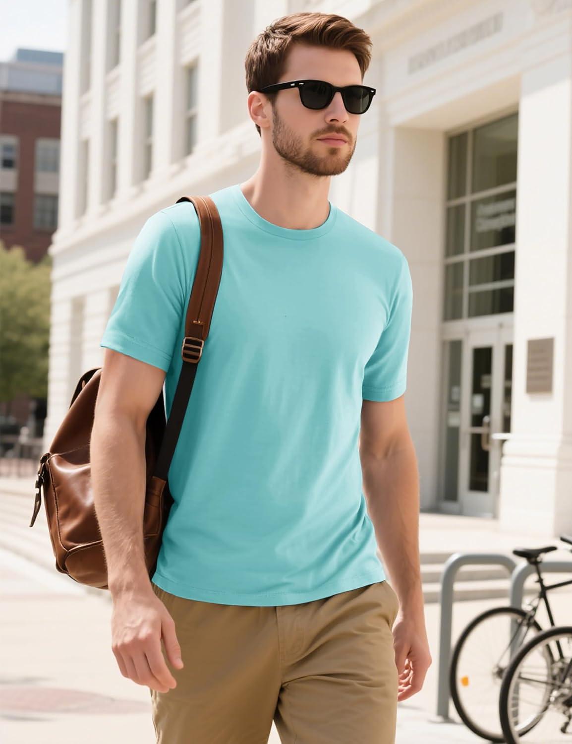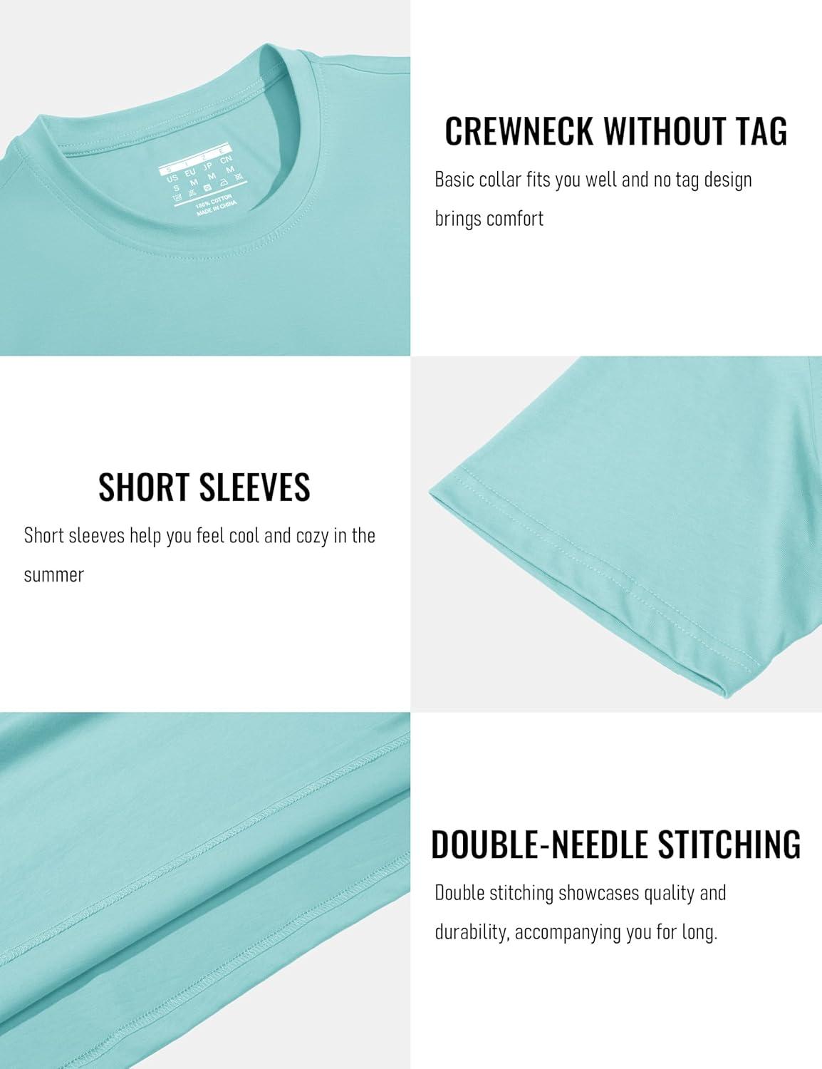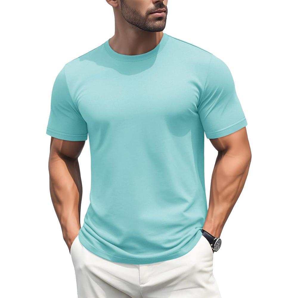 MAGCOMSEN Men’s T-Shirts Short Sleeve Cotton Crew Neck Soft Breathable T Shirts Casual Plain Classic Summer Tees(Light Lake Blue)