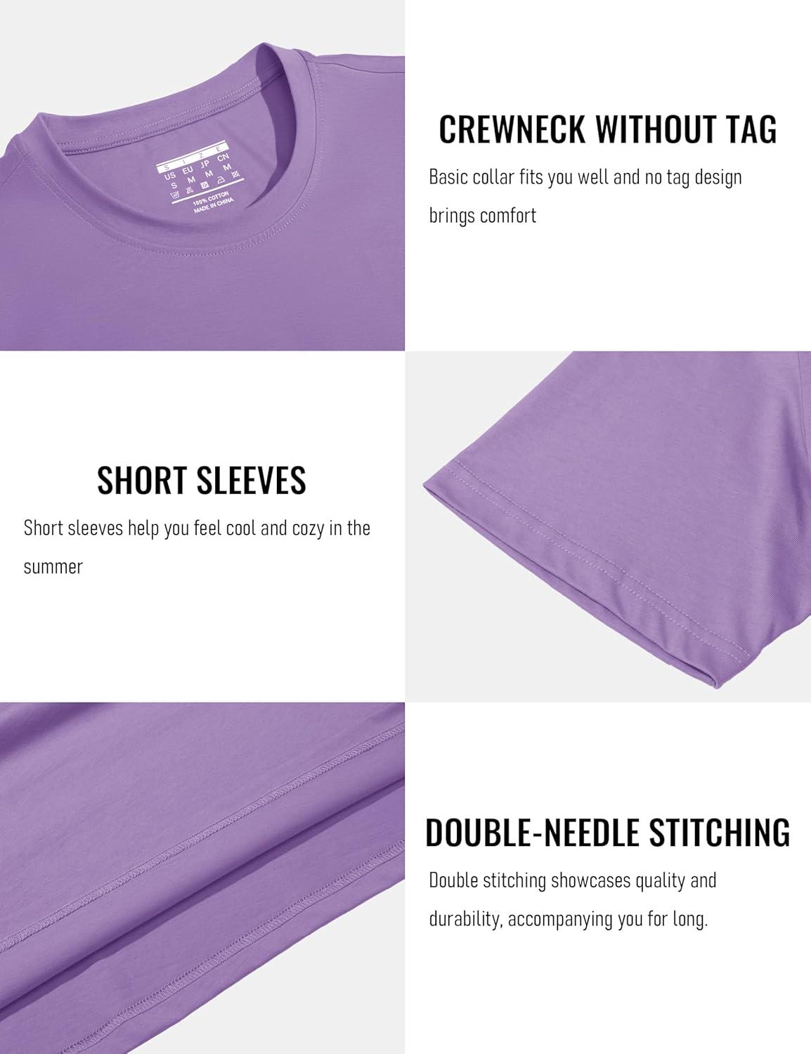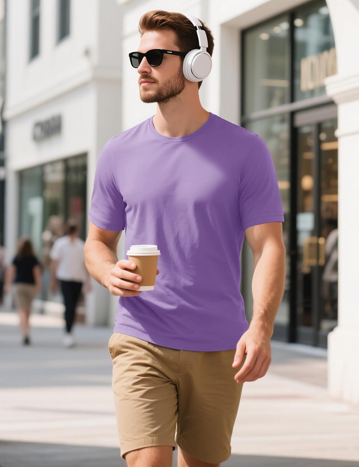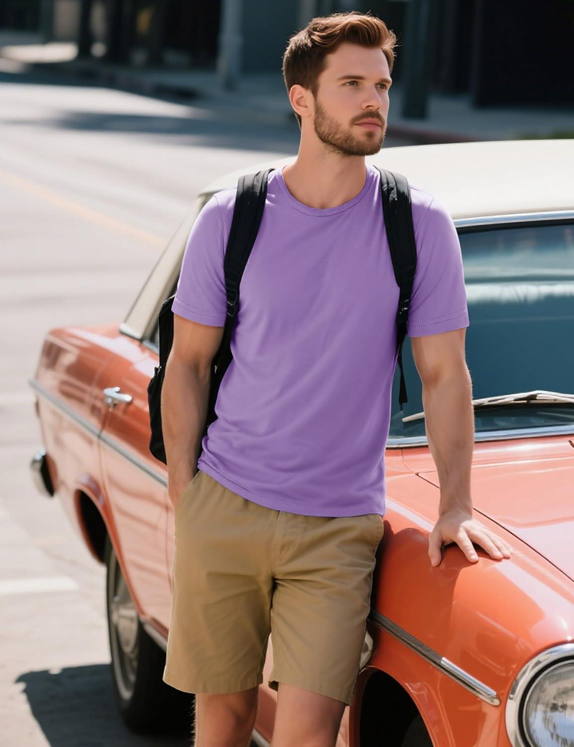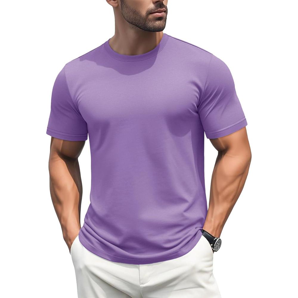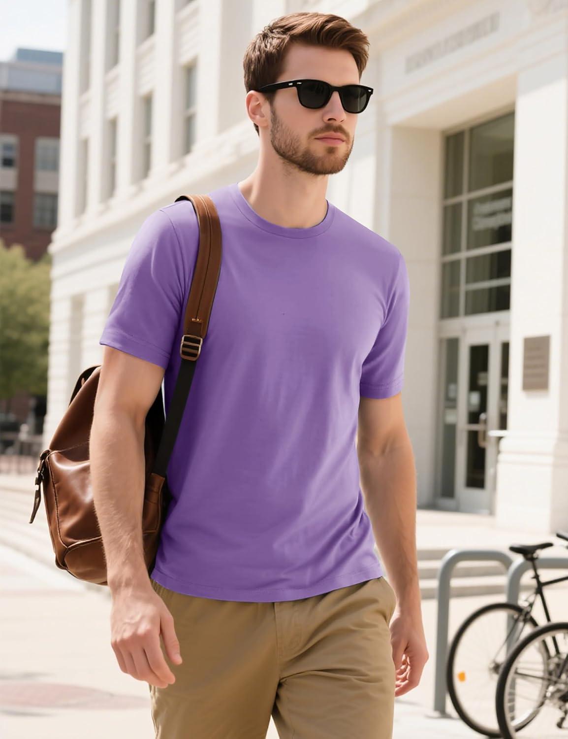 MAGCOMSEN Men’s T-Shirts Short Sleeve Cotton Crew Neck Soft Breathable T Shirts Casual Plain Classic Summer Tees(Light Purple)