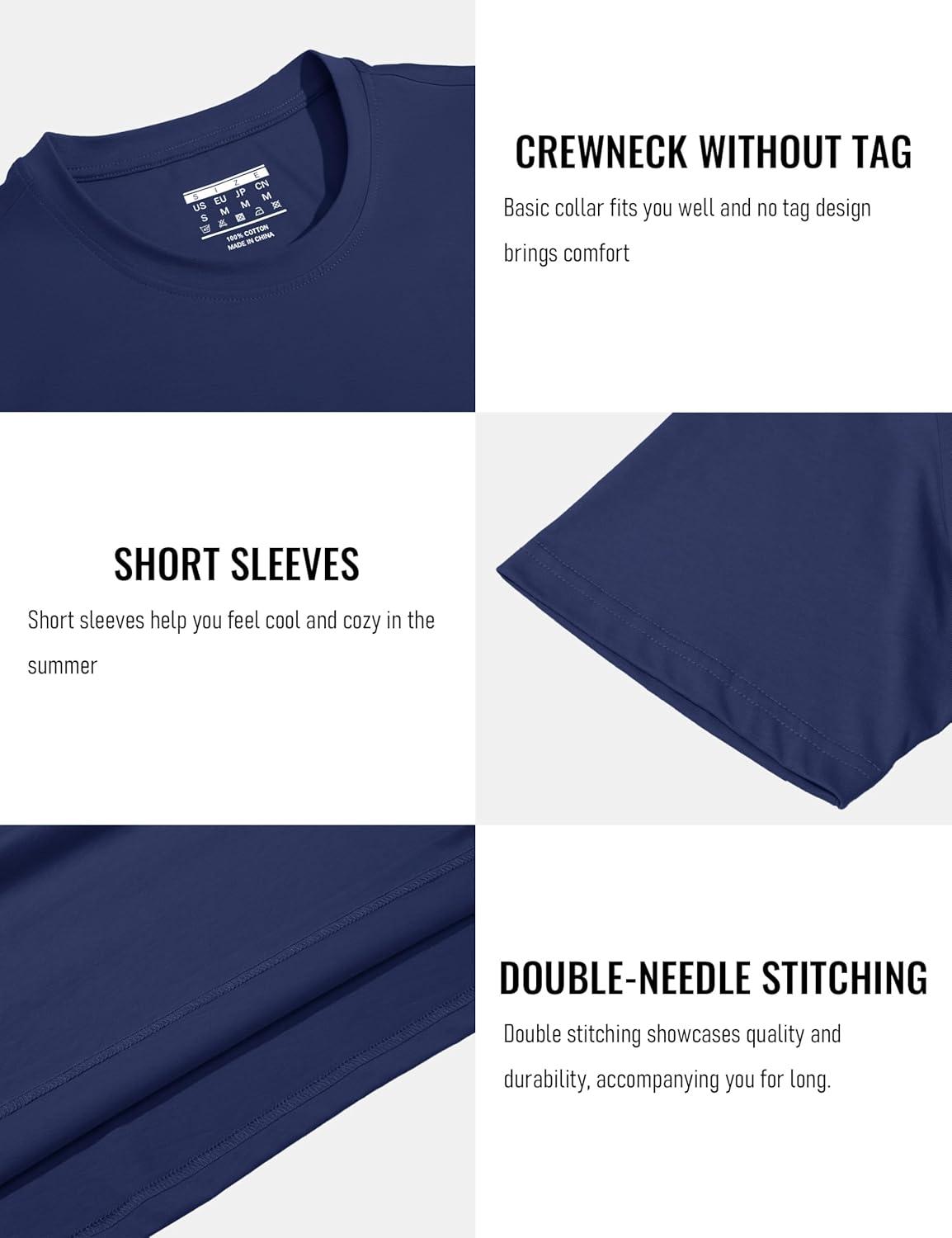 MAGCOMSEN Men’s T-Shirts Short Sleeve Cotton Crew Neck Soft Breathable T Shirts Casual Plain Classic Summer Tees(Navy)