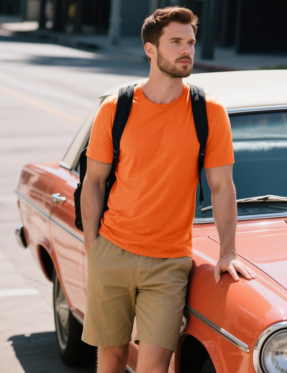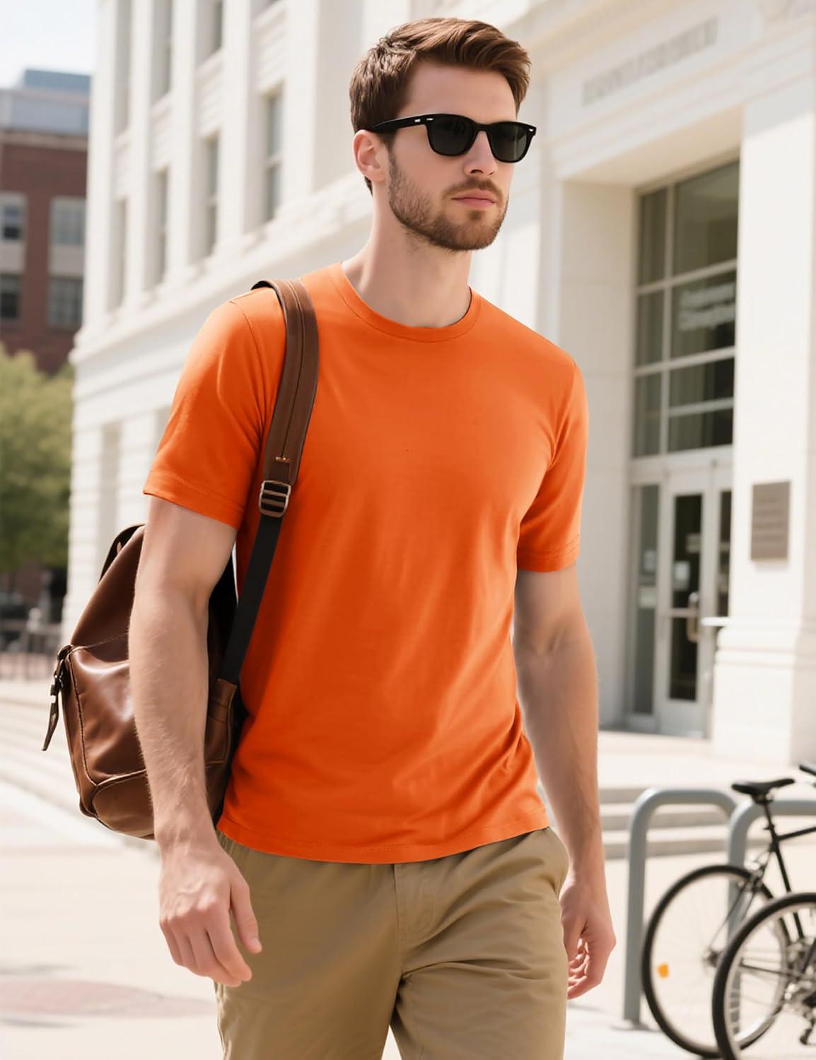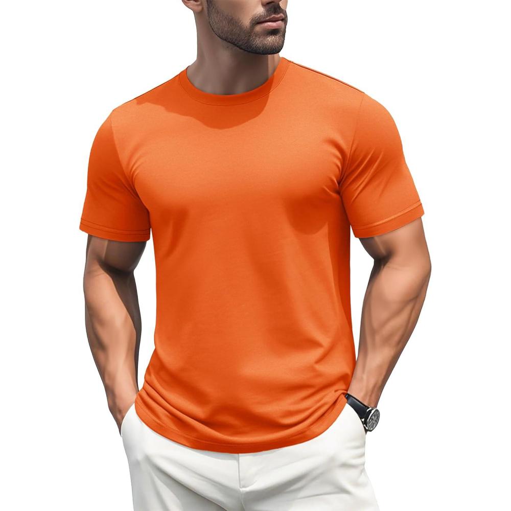 MAGCOMSEN Men’s T-Shirts Short Sleeve Cotton Crew Neck Soft Breathable T Shirts Casual Plain Classic Summer Tees(Orange)