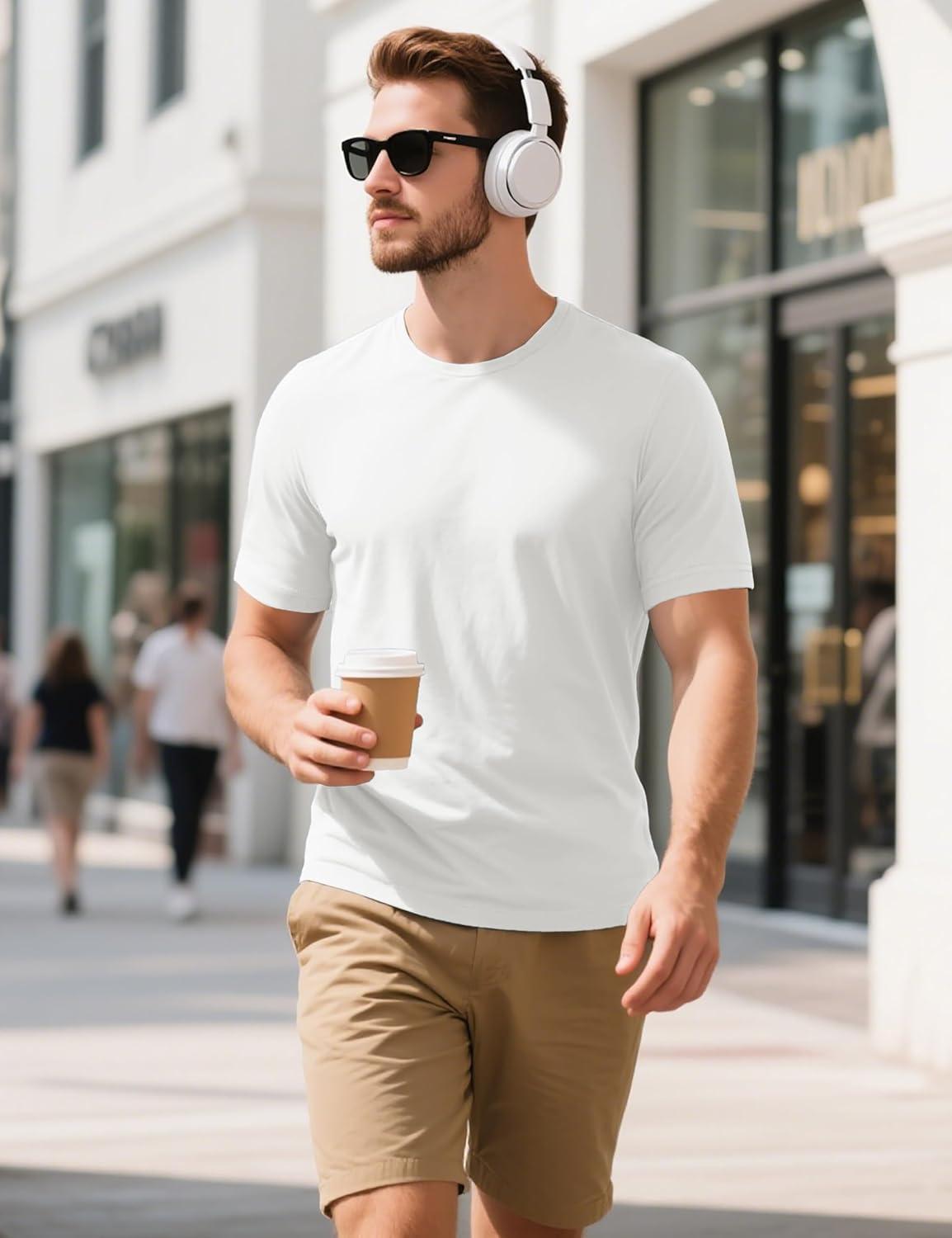 MAGCOMSEN Men’s T-Shirts Short Sleeve Cotton Crew Neck Soft Breathable T Shirts Casual Plain Classic Summer Tees(White)