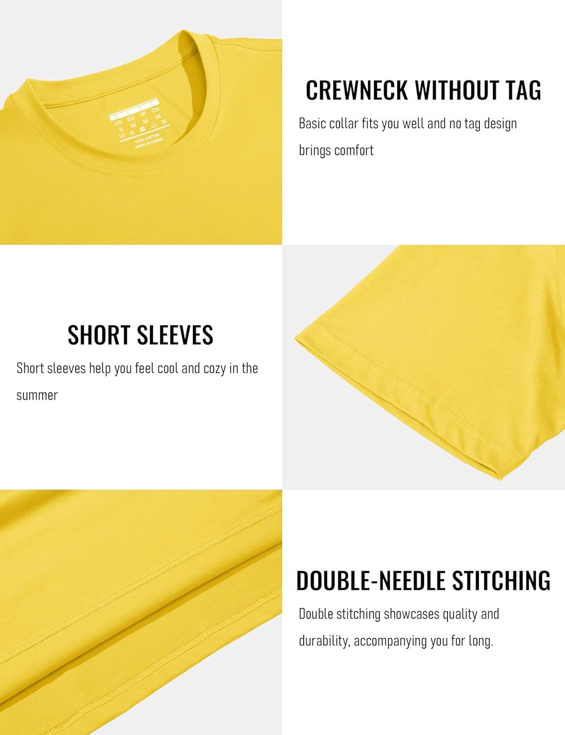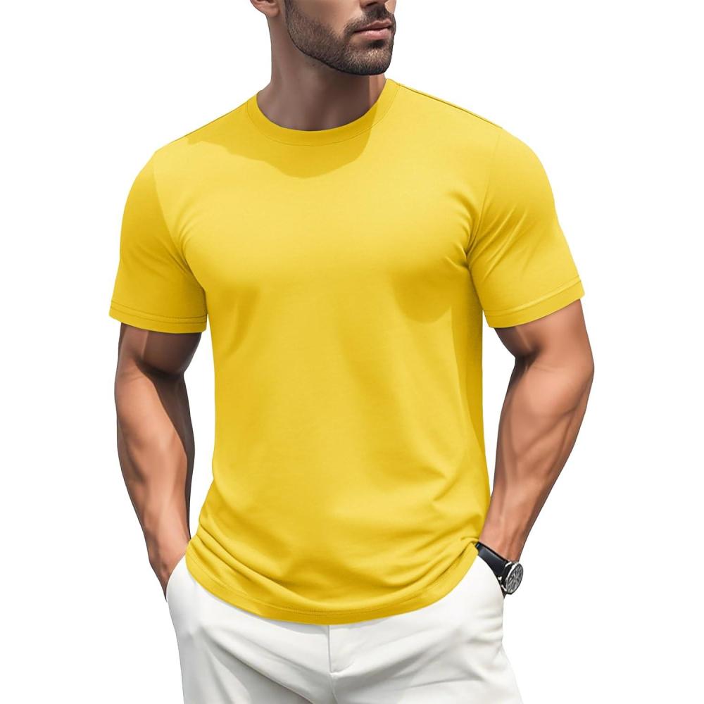 MAGCOMSEN Men’s T-Shirts Short Sleeve Cotton Crew Neck Soft Breathable T Shirts Casual Plain Classic Summer Tees(Yellow)