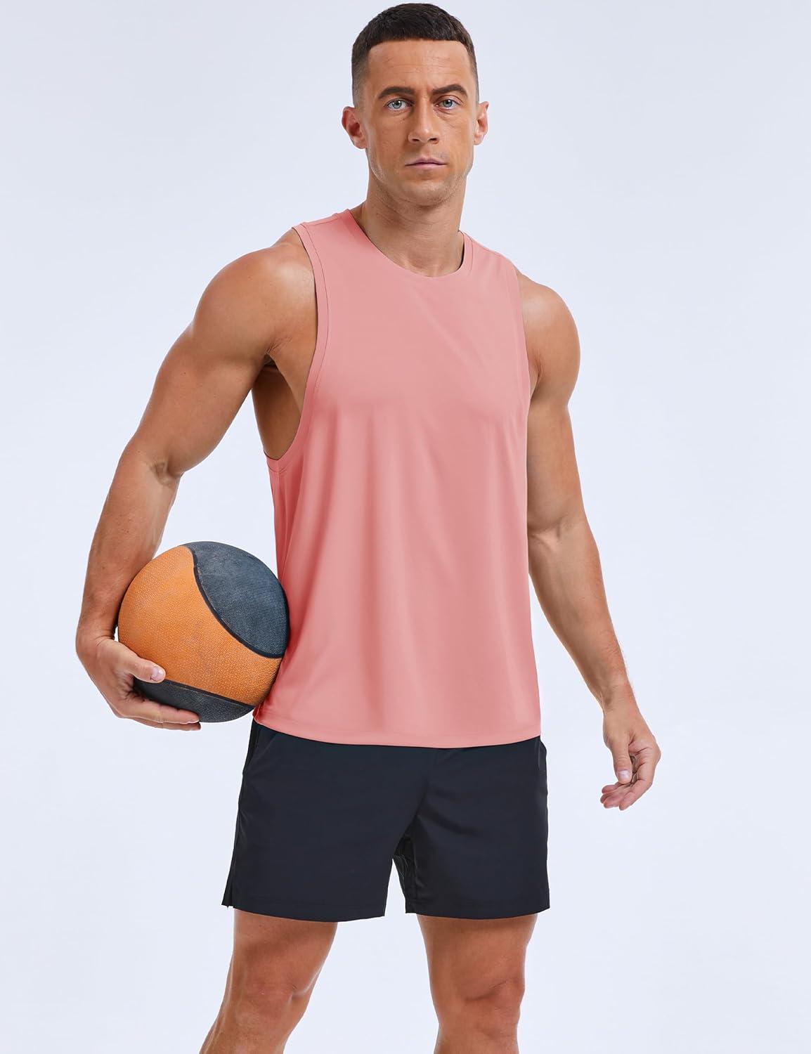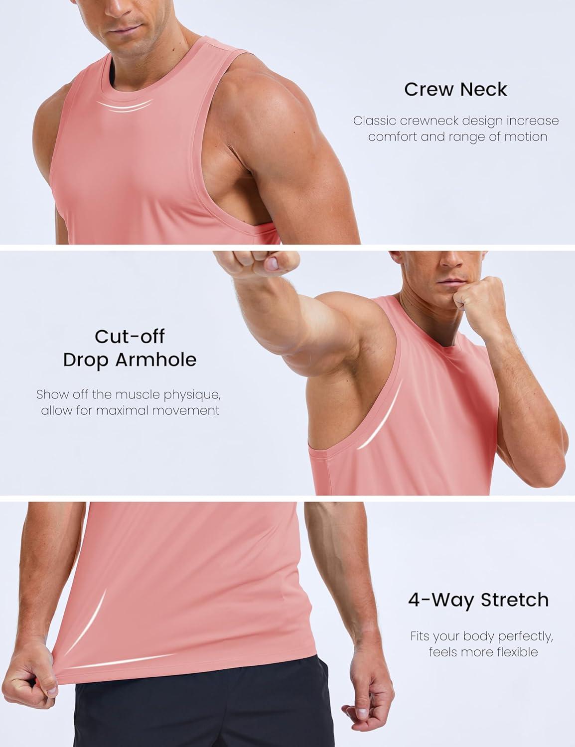 MAGCOMSEN Men’s Tank Top Sleeveless Muscle Shirts Quick Dry Workout Gym Cut Off Shirt Lightweight Summer Bodybuilding Tee(Pink)