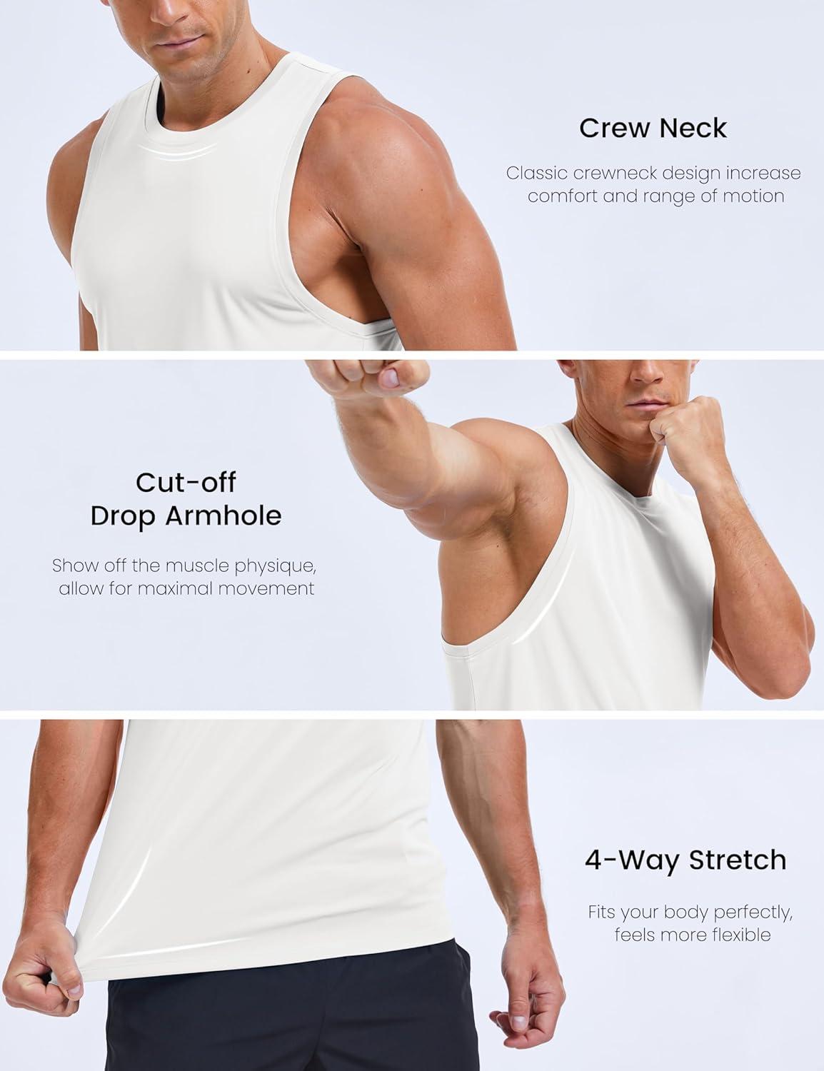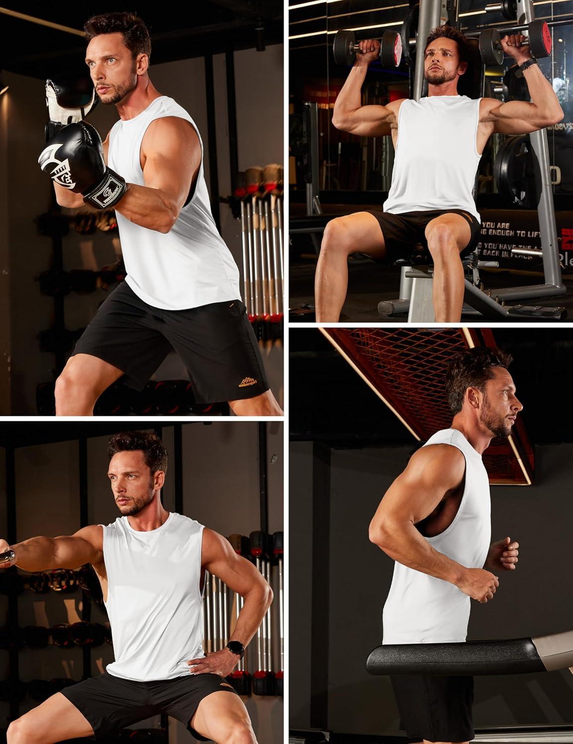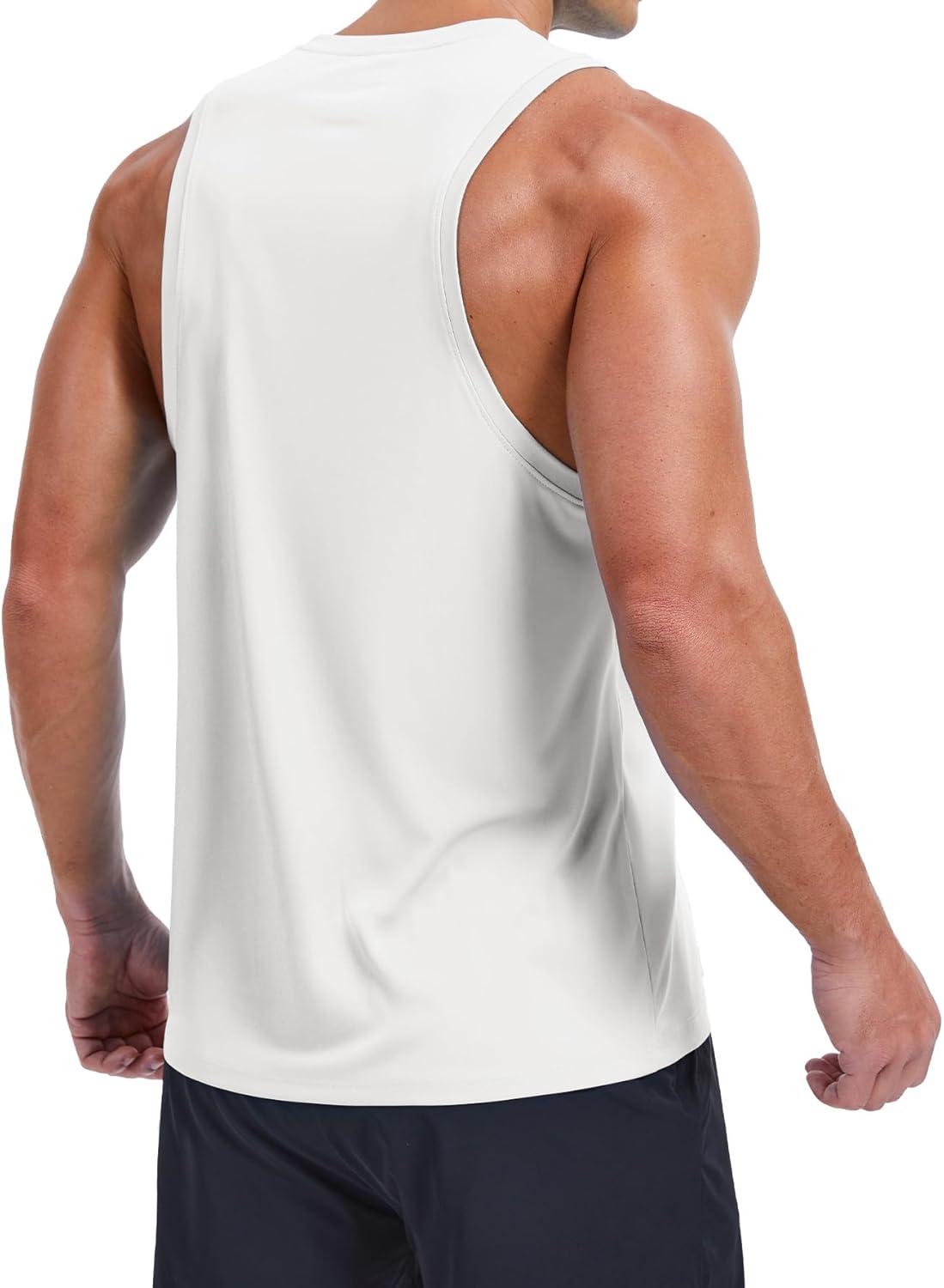 MAGCOMSEN Men’s Tank Top Sleeveless Muscle Shirts Quick Dry Workout Gym Cut Off Shirt Lightweight Summer Bodybuilding Tee(White)