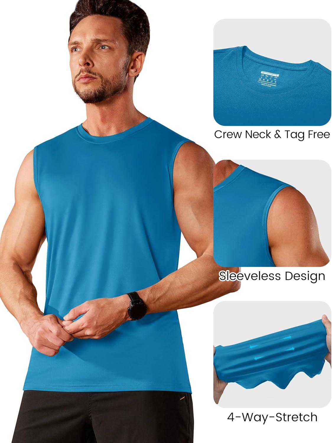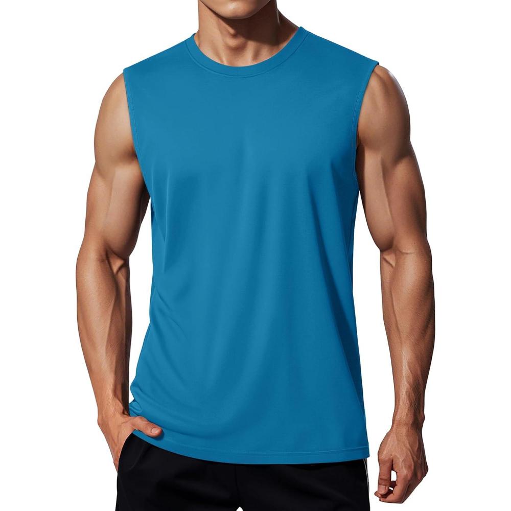MAGCOMSEN Men’s Tank Tops Workout Gym Sleeveless Shirts Moisture Wicking Breathable Muscle Shirt Casual Summer Tanks(Blue)